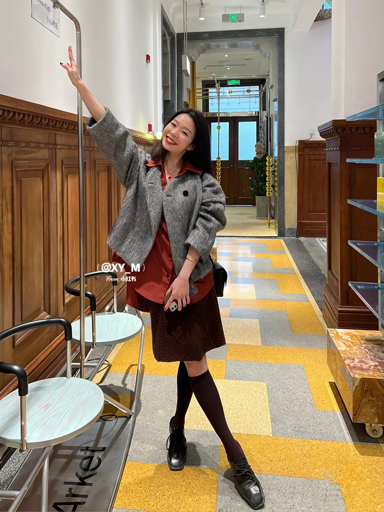 HIDEMI 美利奴羊毛简约设计感茧型套装 半高领毛衣/茧型半身裙