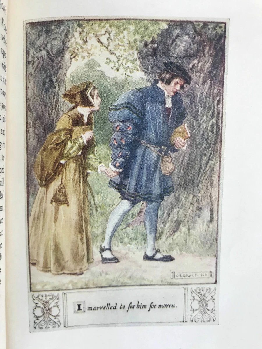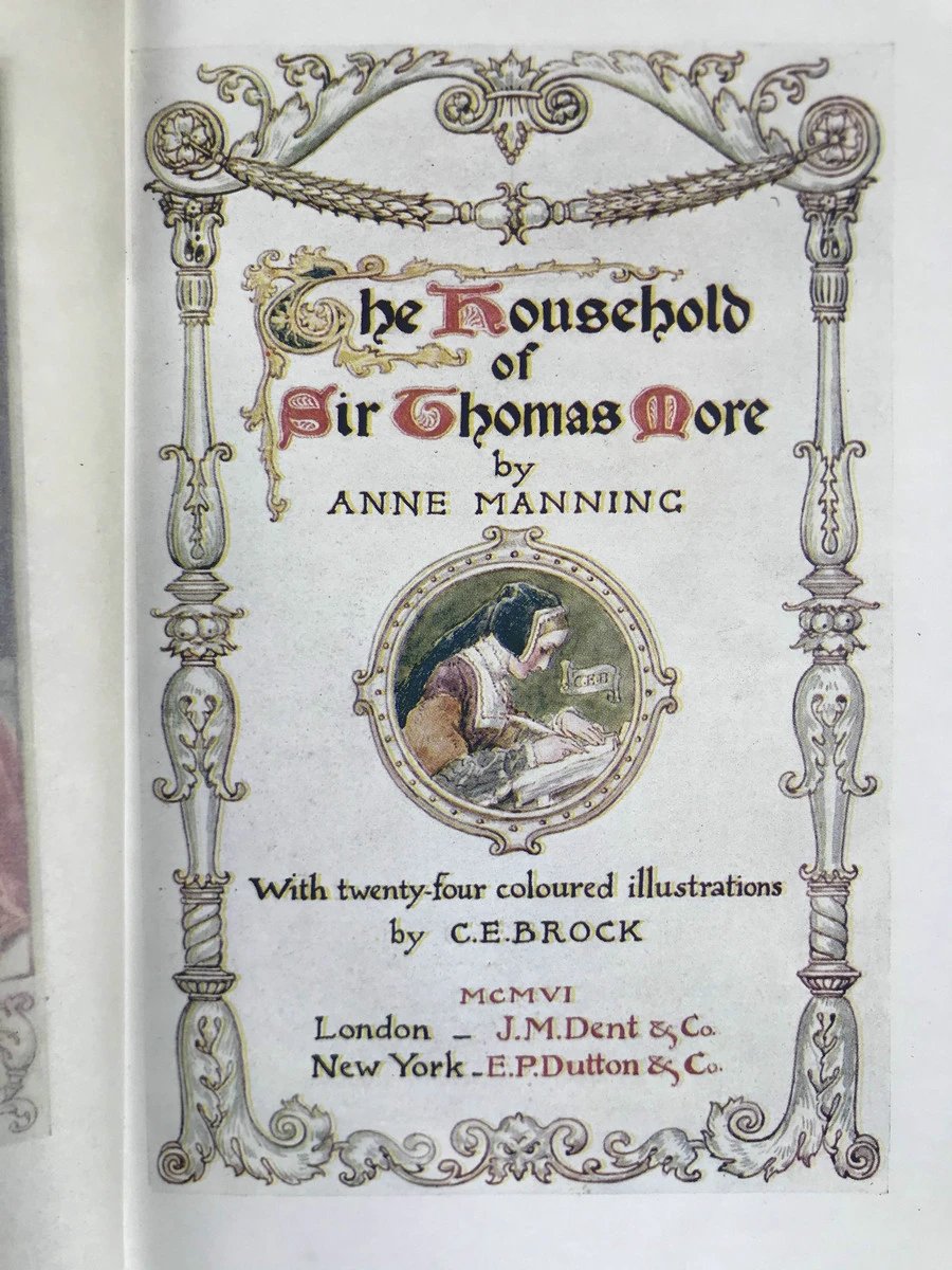 含藏书票!1906年 安妮·曼宁《托马斯·莫尔的管家》 C.E.布洛克23幅彩色插图 漆布精装32开