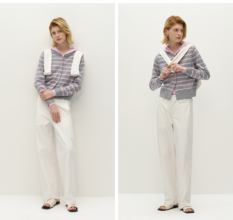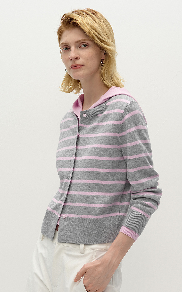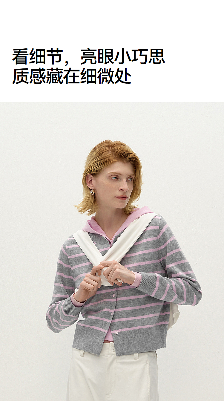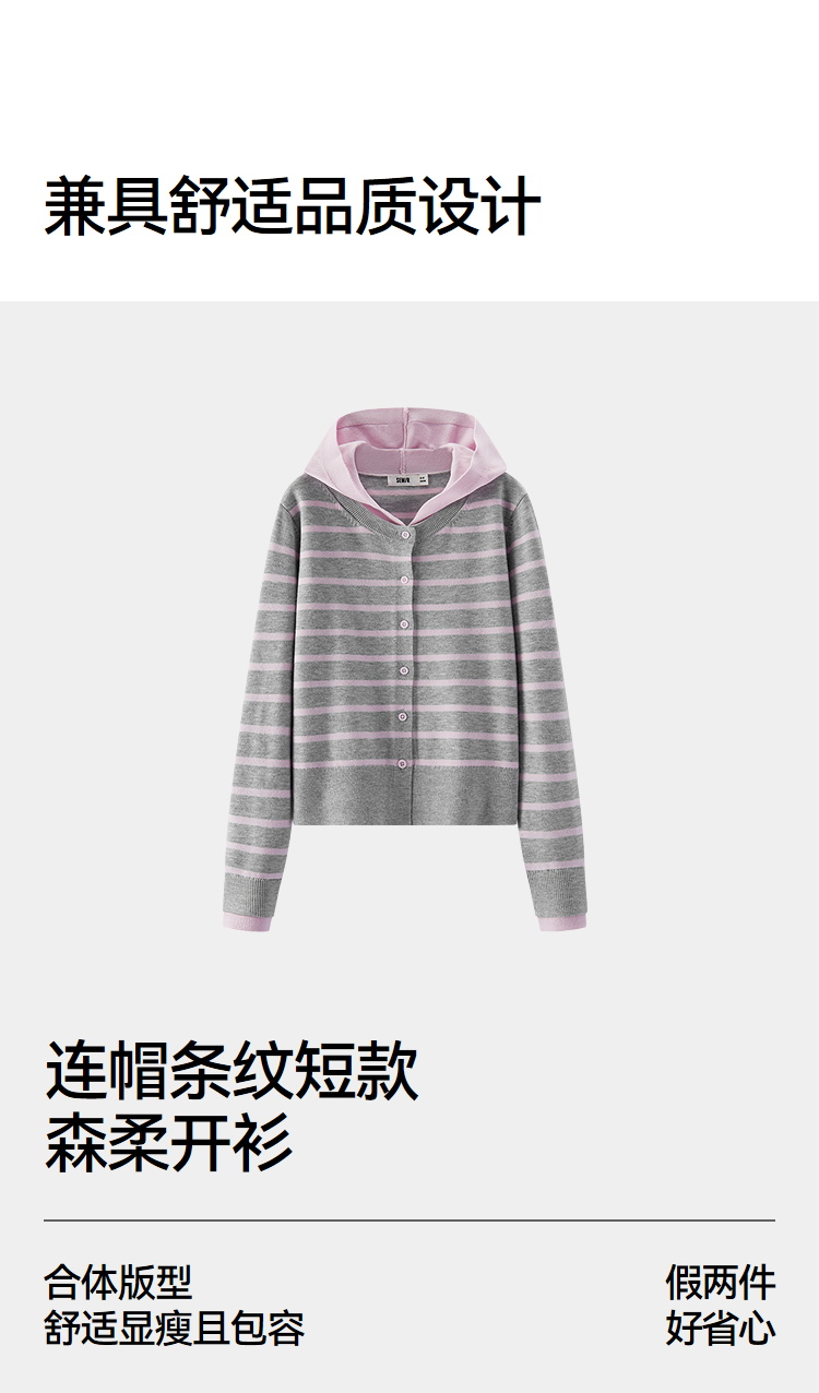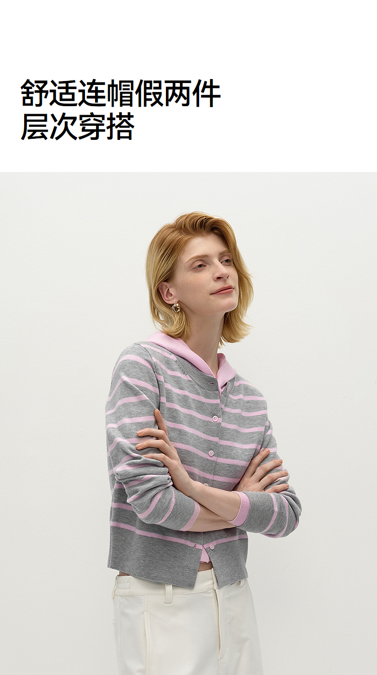 森柔|商场同款森马针织开衫女春短款条纹假两件2026新款复古毛衫