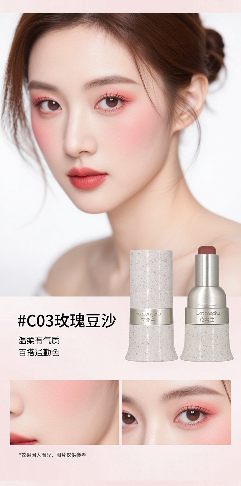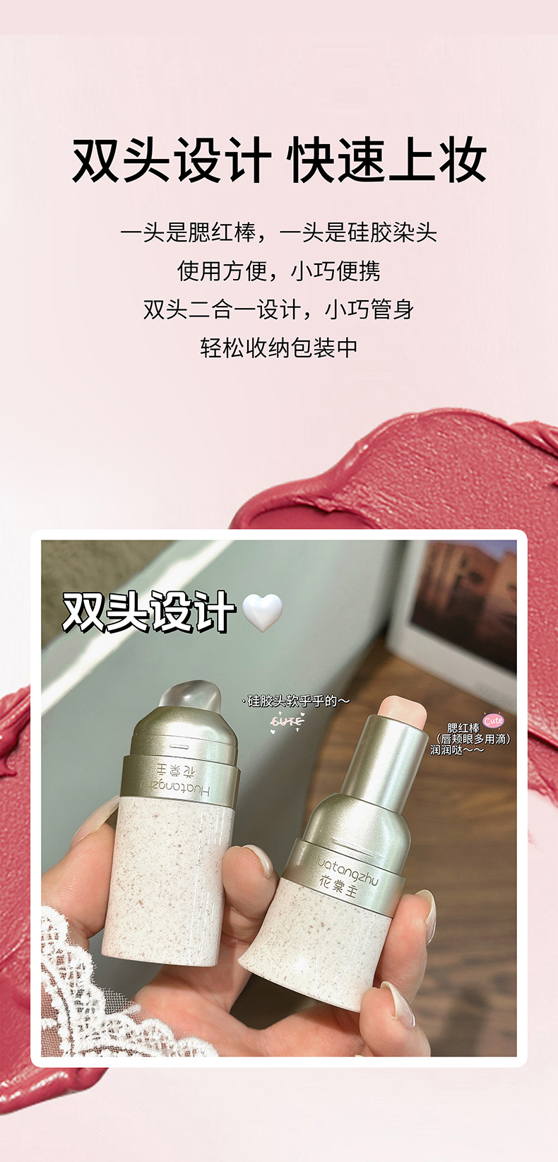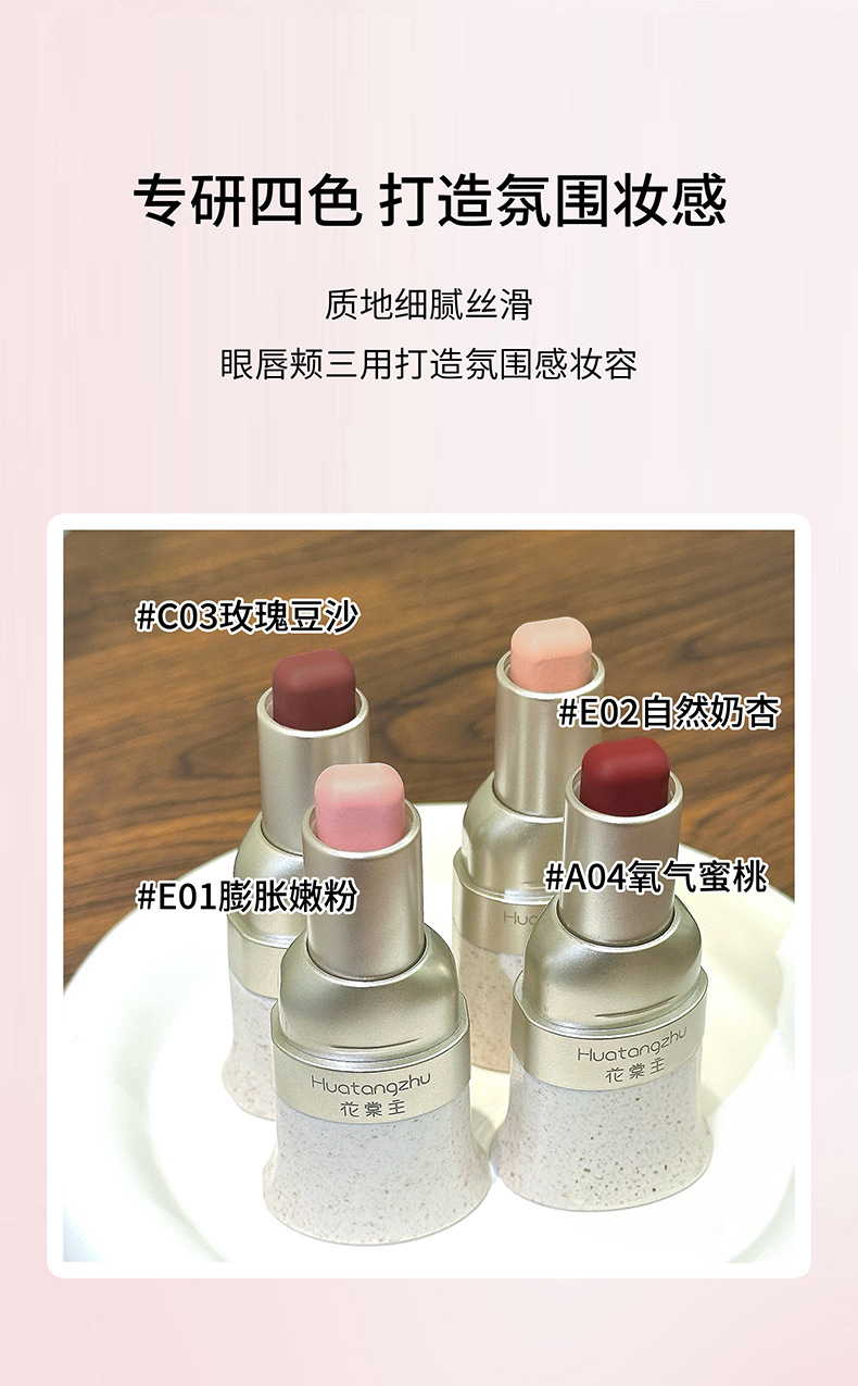【一支搞定!30S 速成妆】花棠主玩色多用棒易上色自然持久显白伪素颜唇颊两用韩系单色腮红。ry