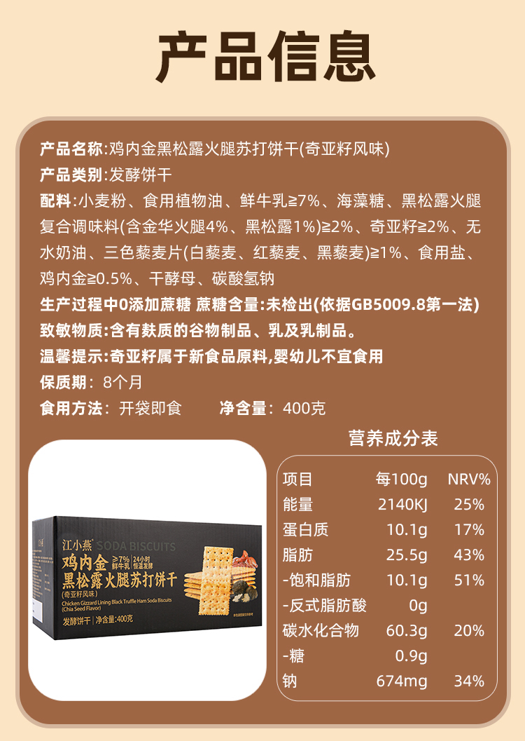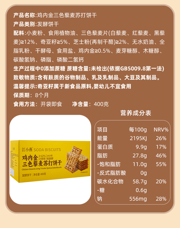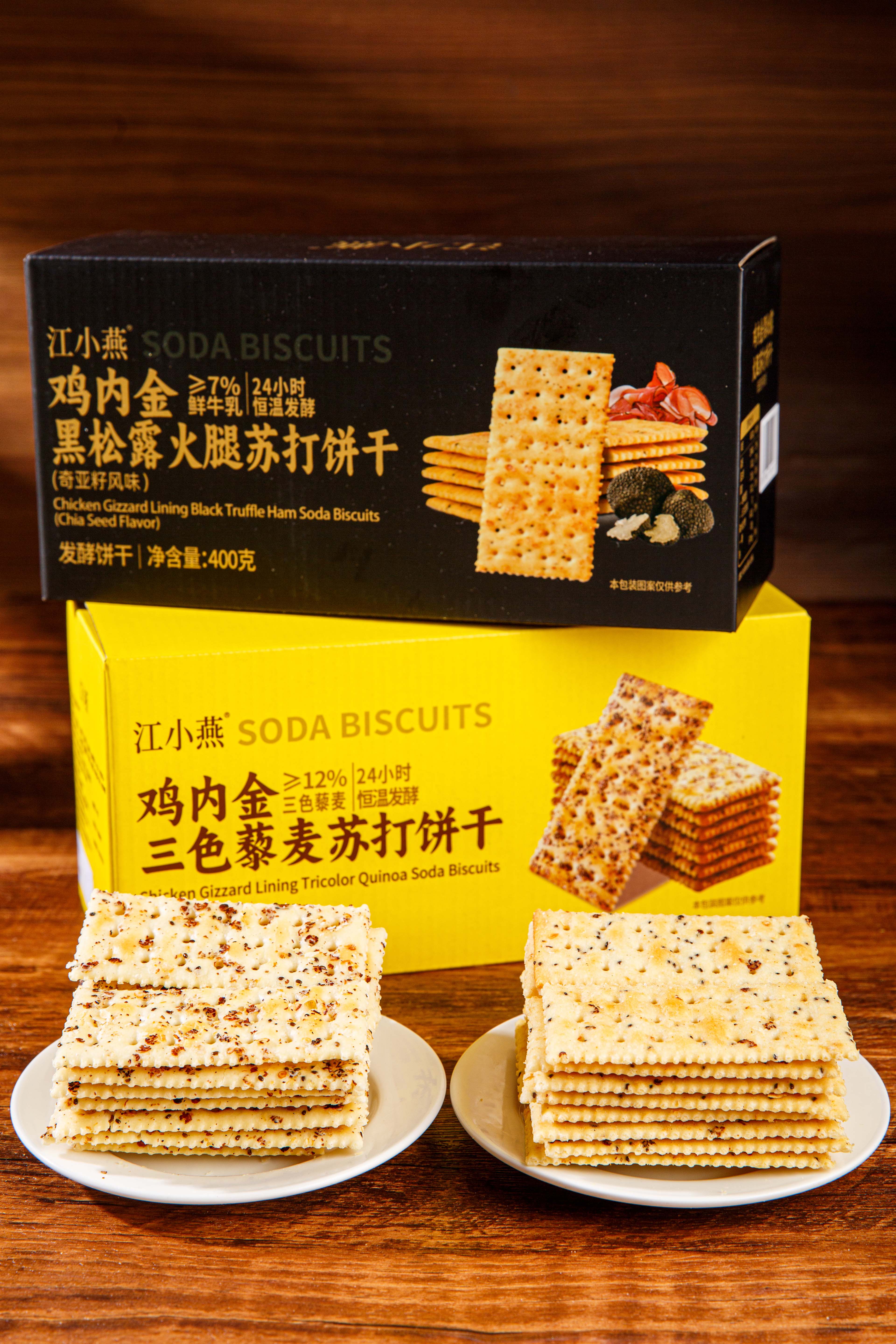产品名称:鸡内金黑松露火腿苏打饼干/鸡内金三色藜麦苏打饼干
