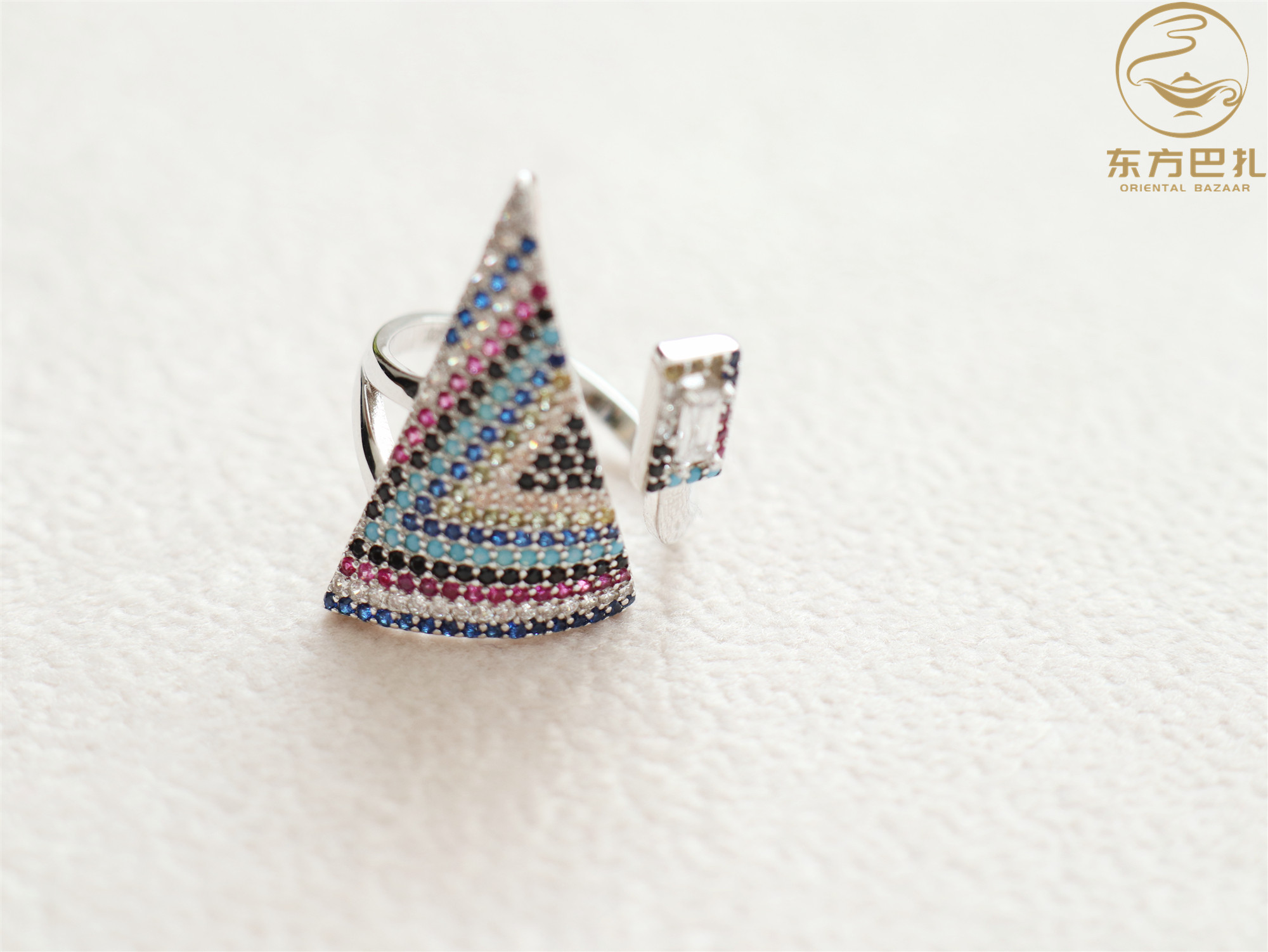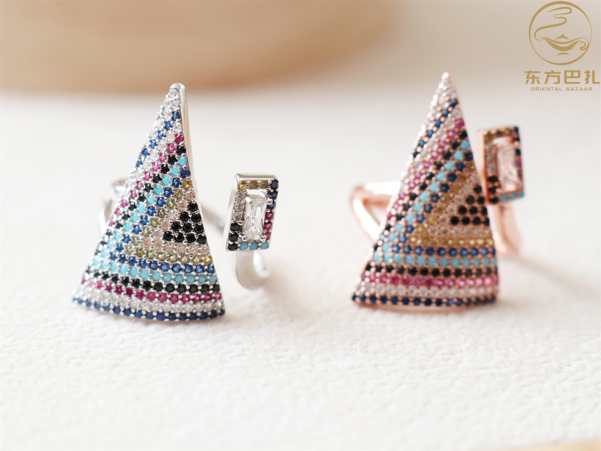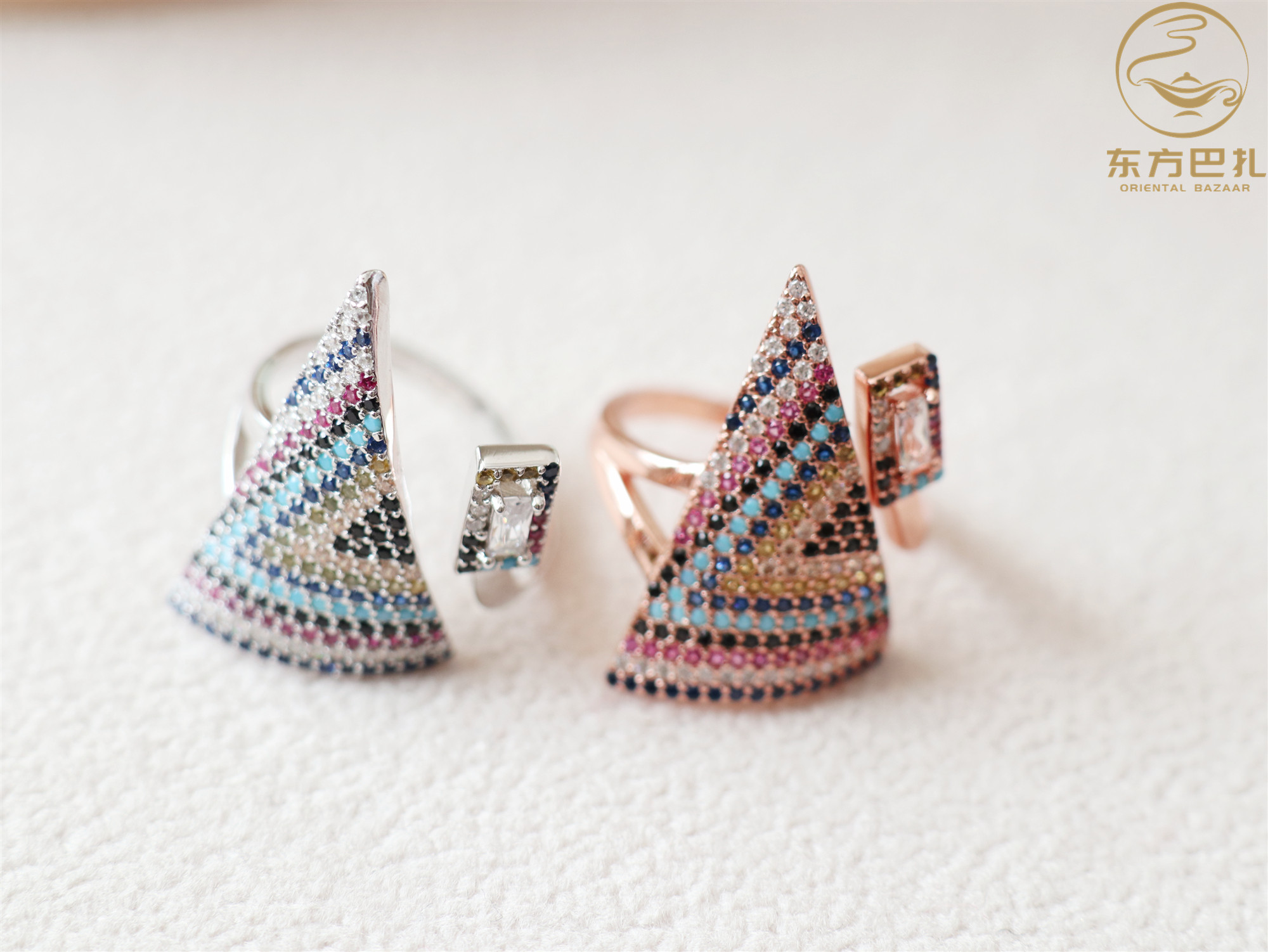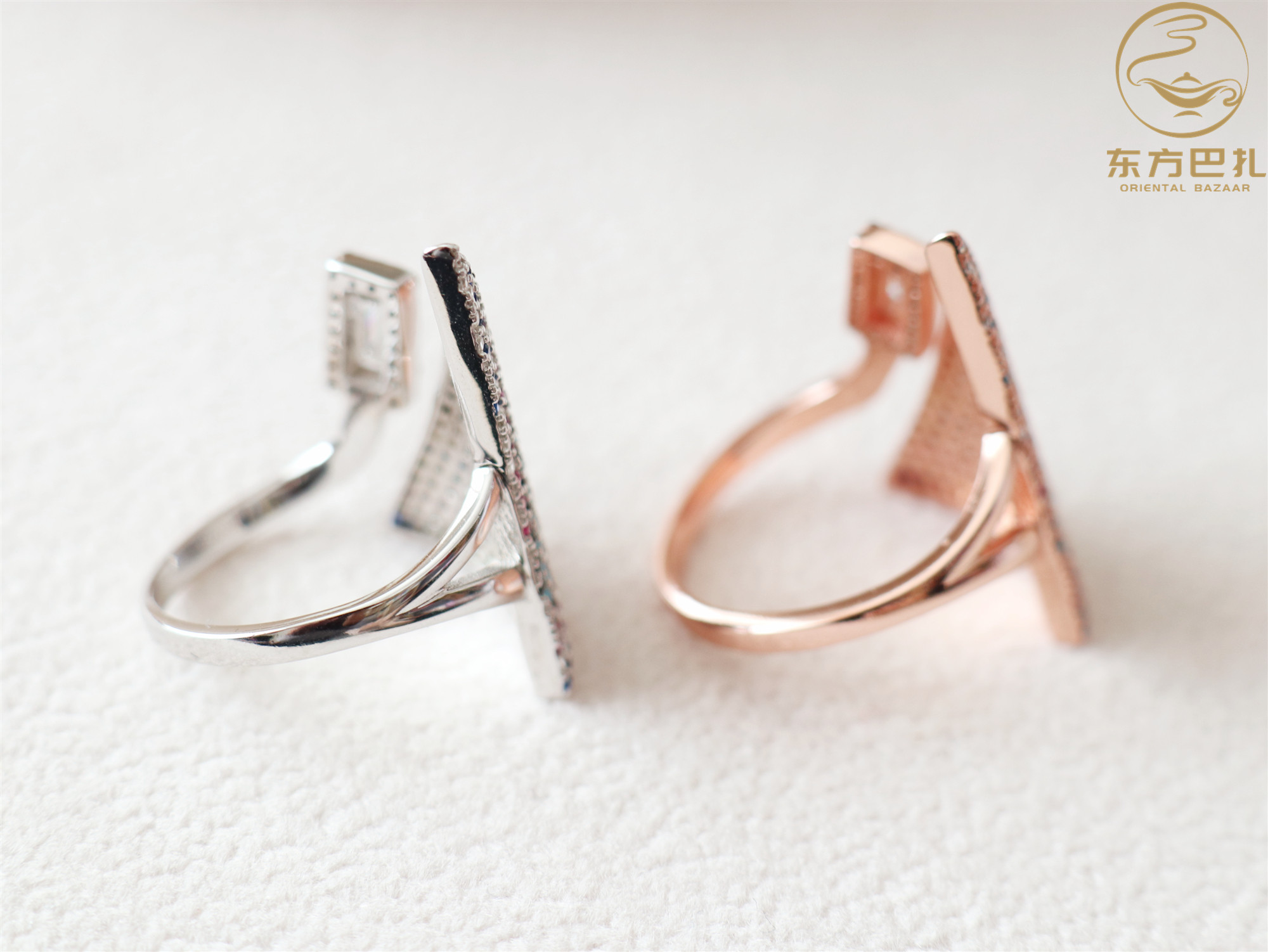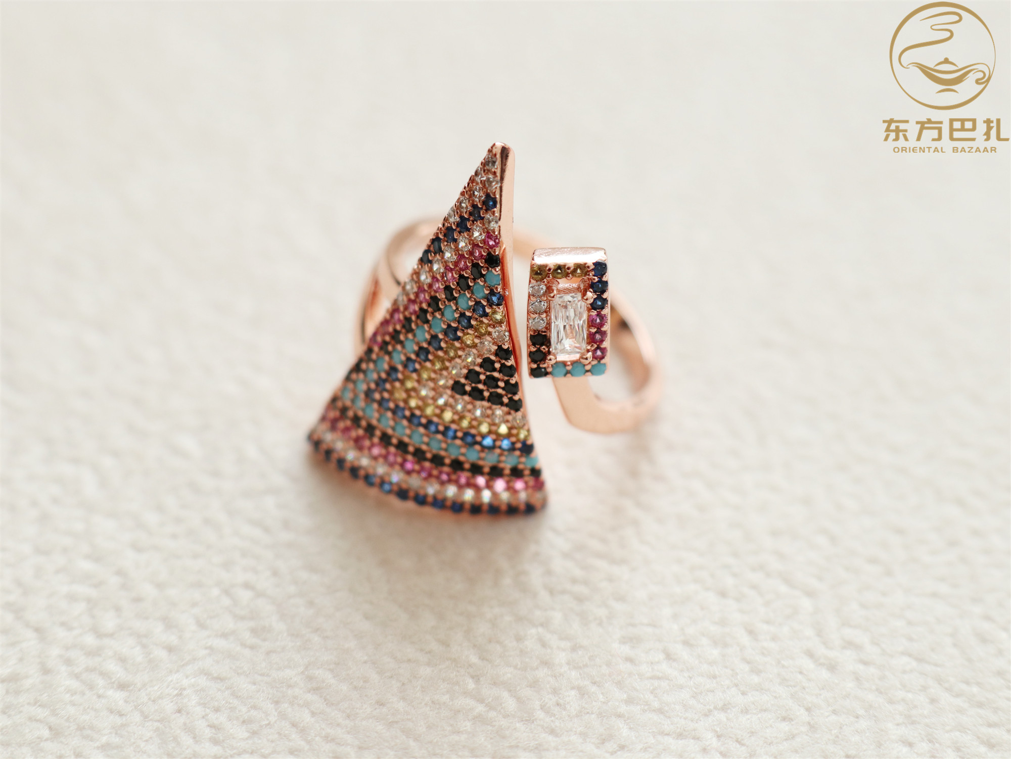 活口不限大小!东方巴扎925银玫瑰金螺旋三角土耳其开口戒指异域风情波西米亚