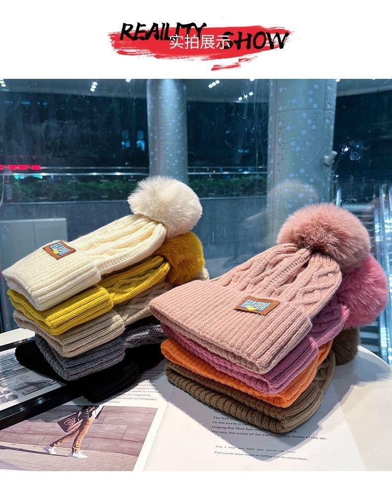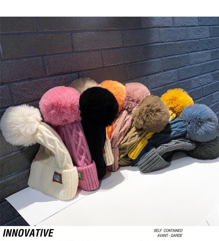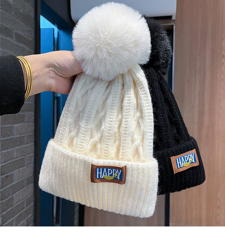 月子帽冬季加绒保暖毛线帽女冬潮毛球针织帽韩版潮百搭白色冷帽女
