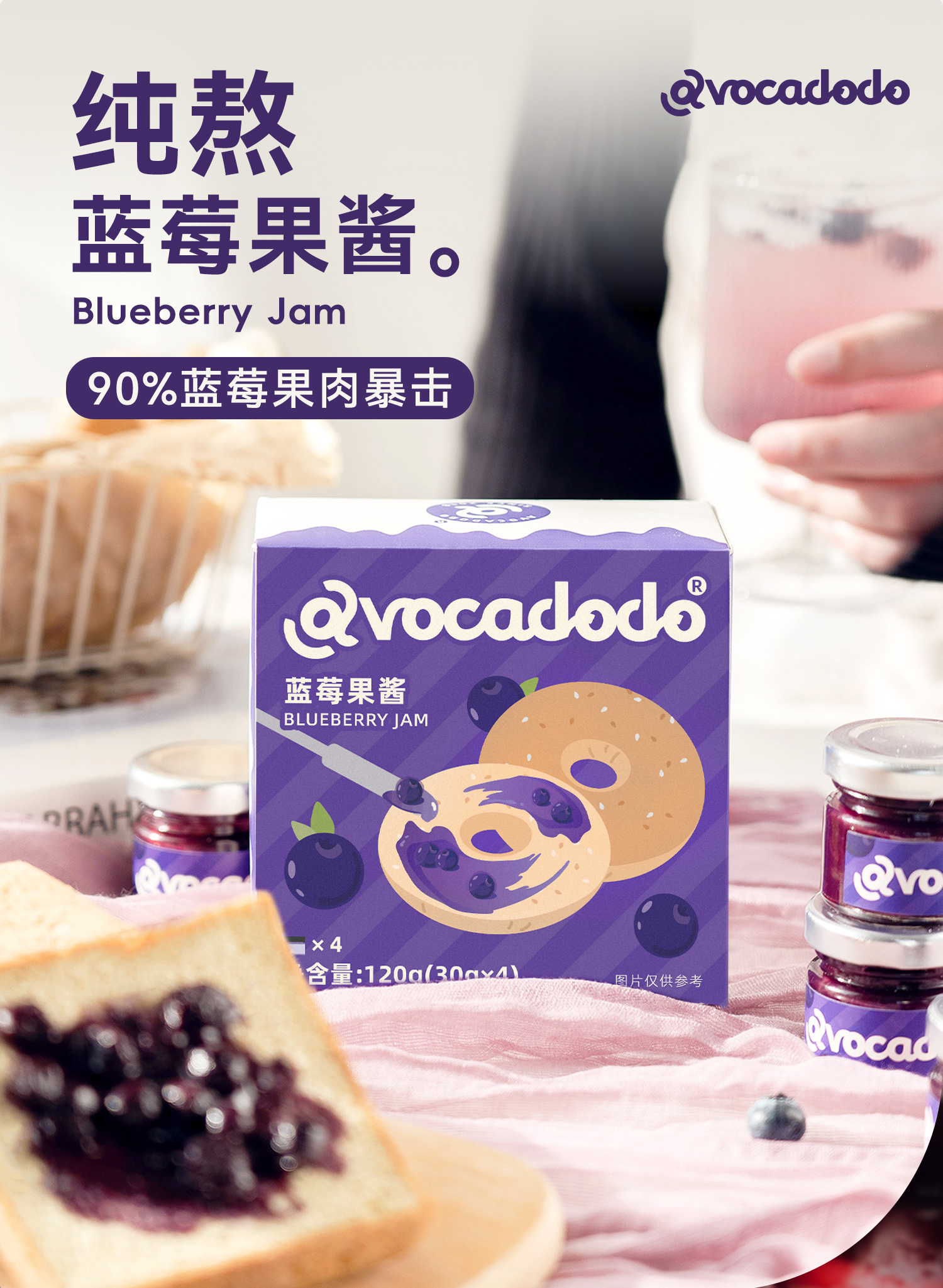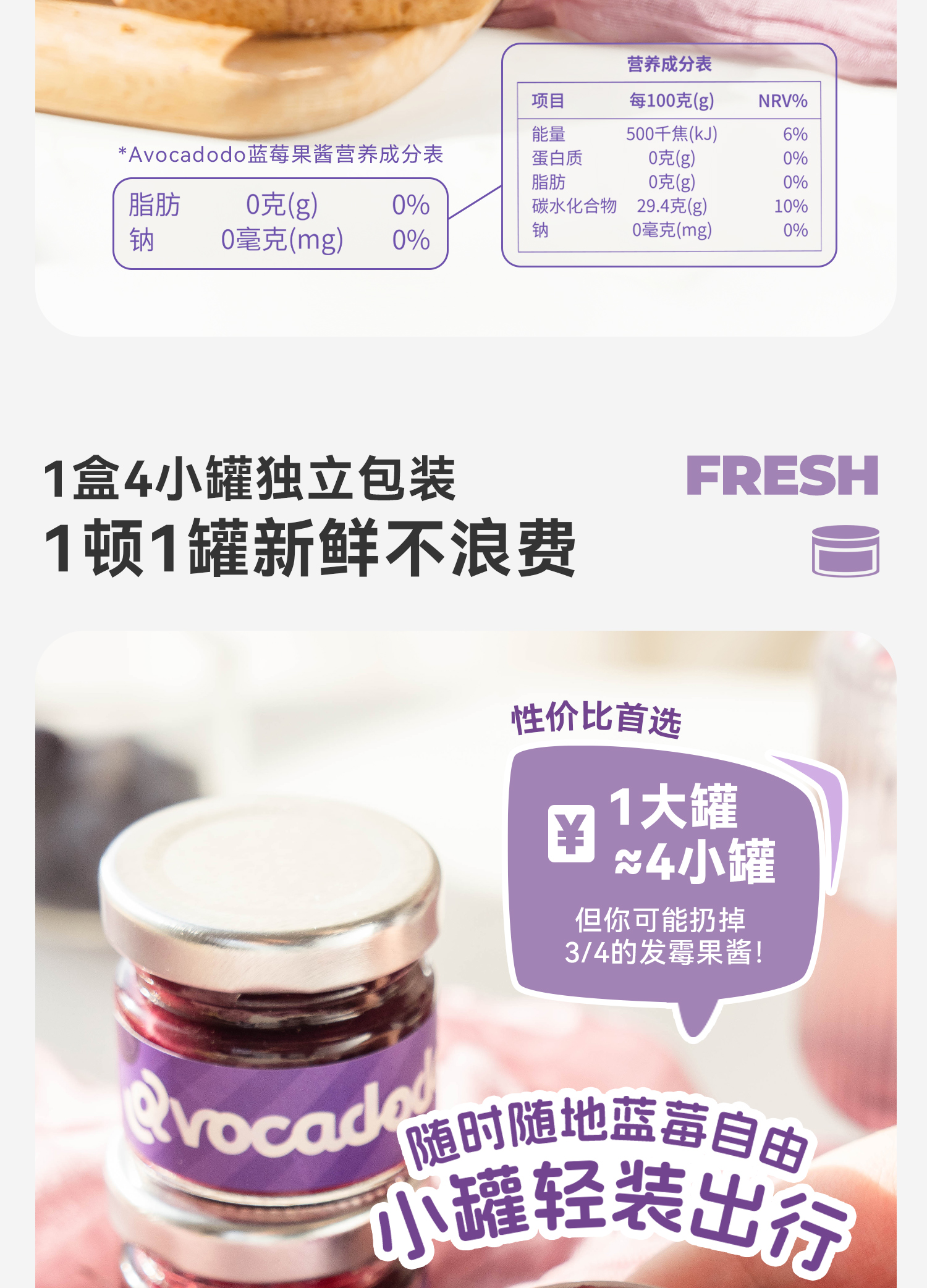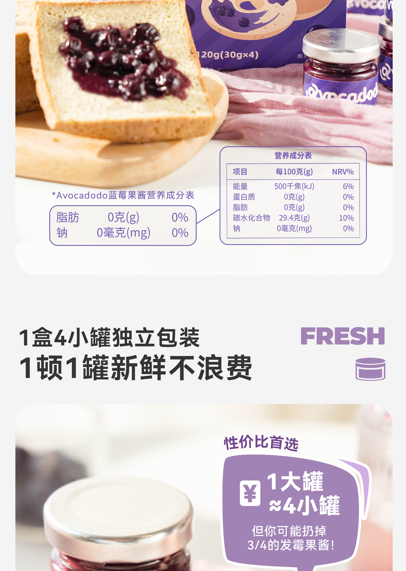 Avocadodo蓝莓酱果酱4小罐独立包装抹酱早餐果肉面包吐司未加蔗糖