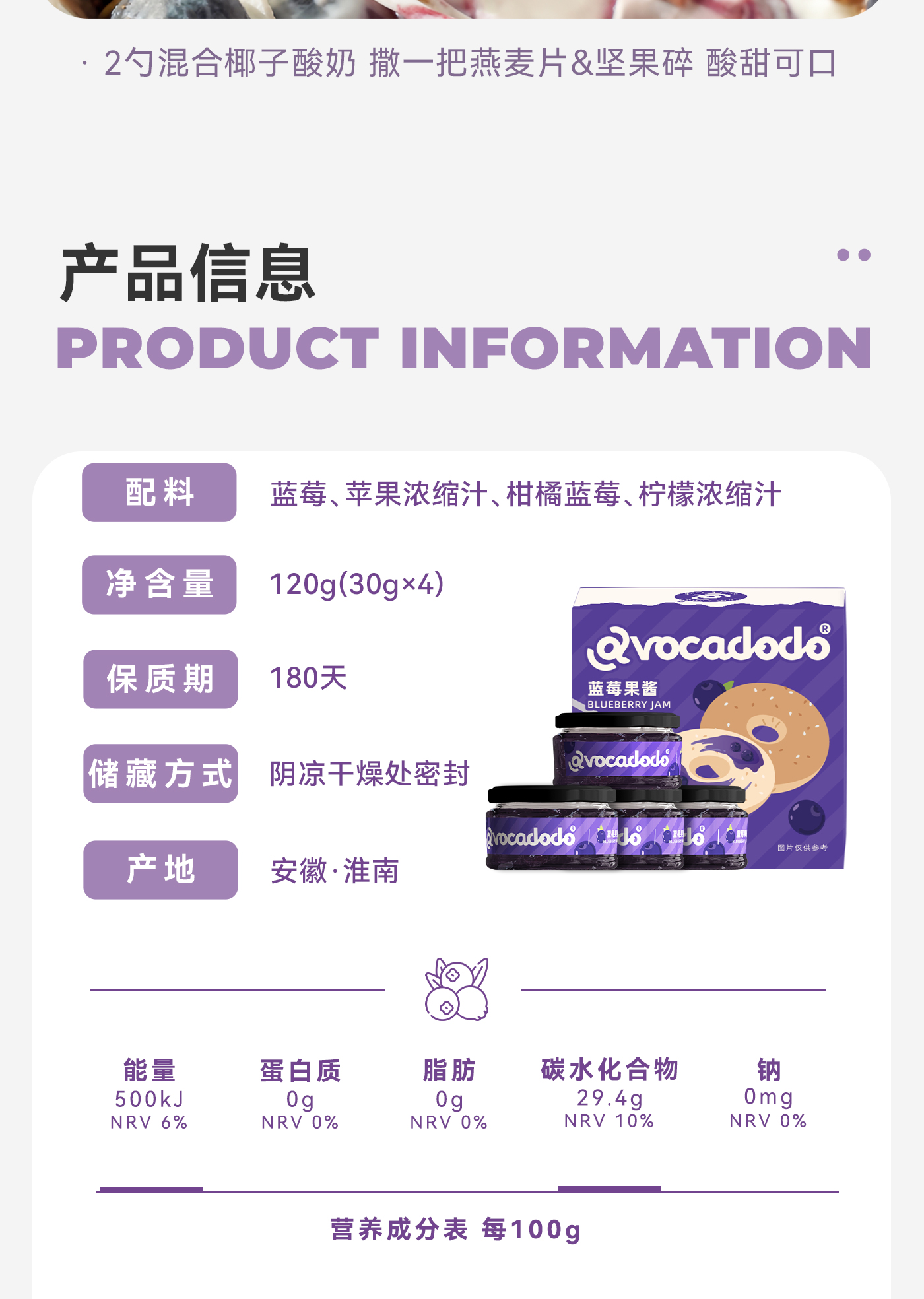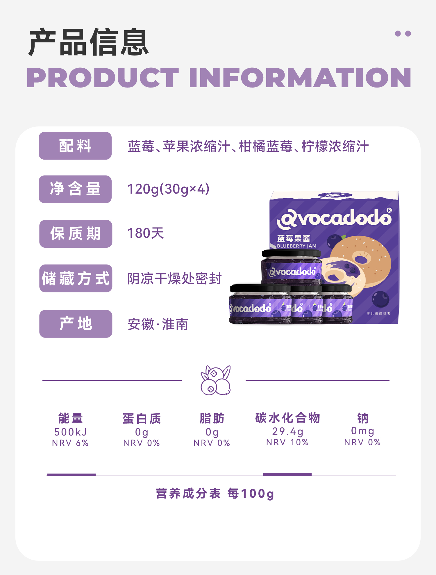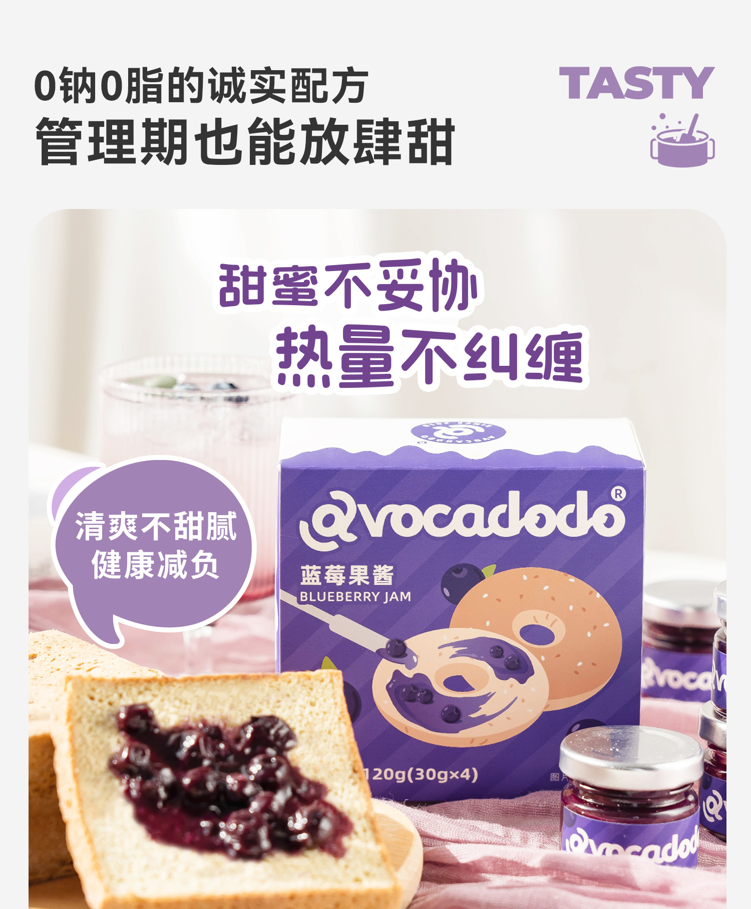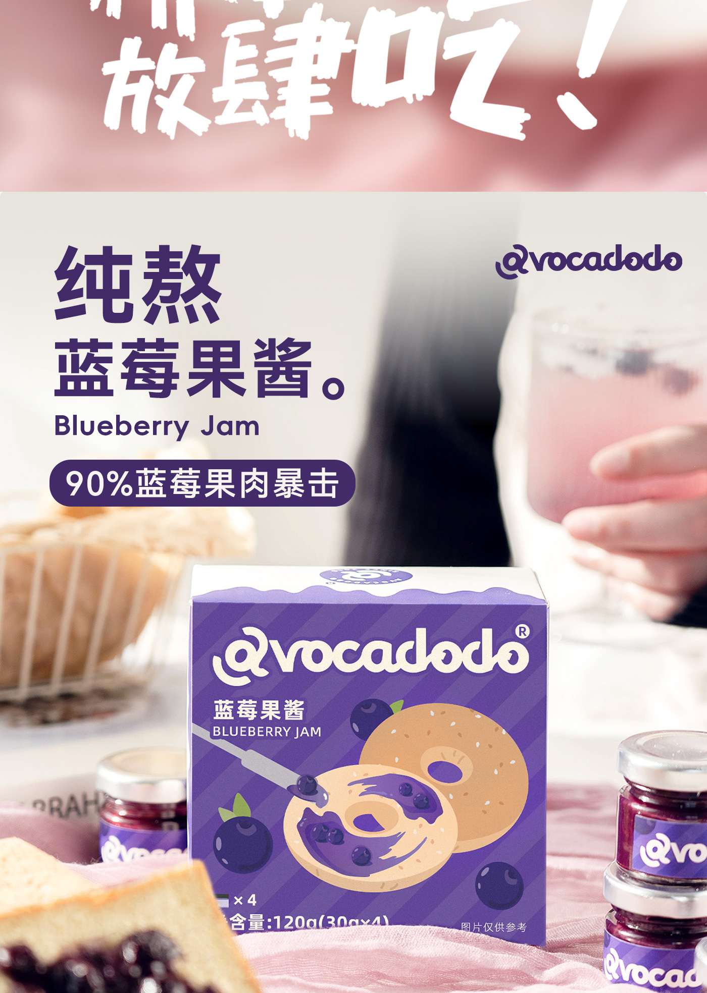 Avocadodo蓝莓酱果酱4小罐独立包装抹酱早餐果肉面包吐司未加蔗糖