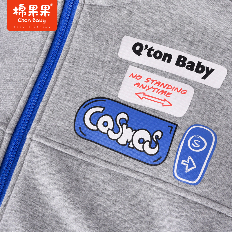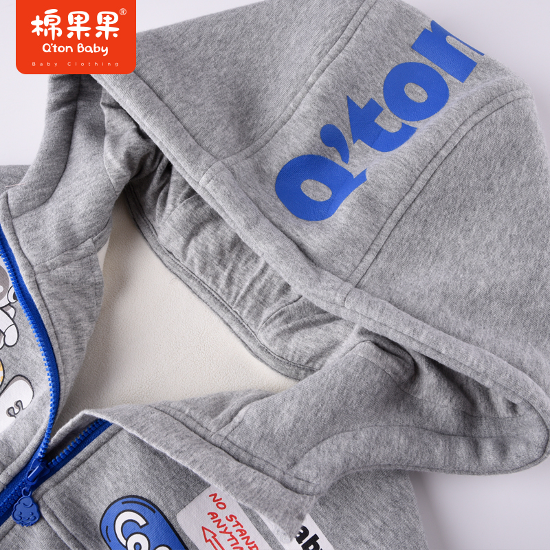 商场同款棉果果秋季新款男童百搭时尚复合绒绒面针织连帽复合绒外套M312100422495