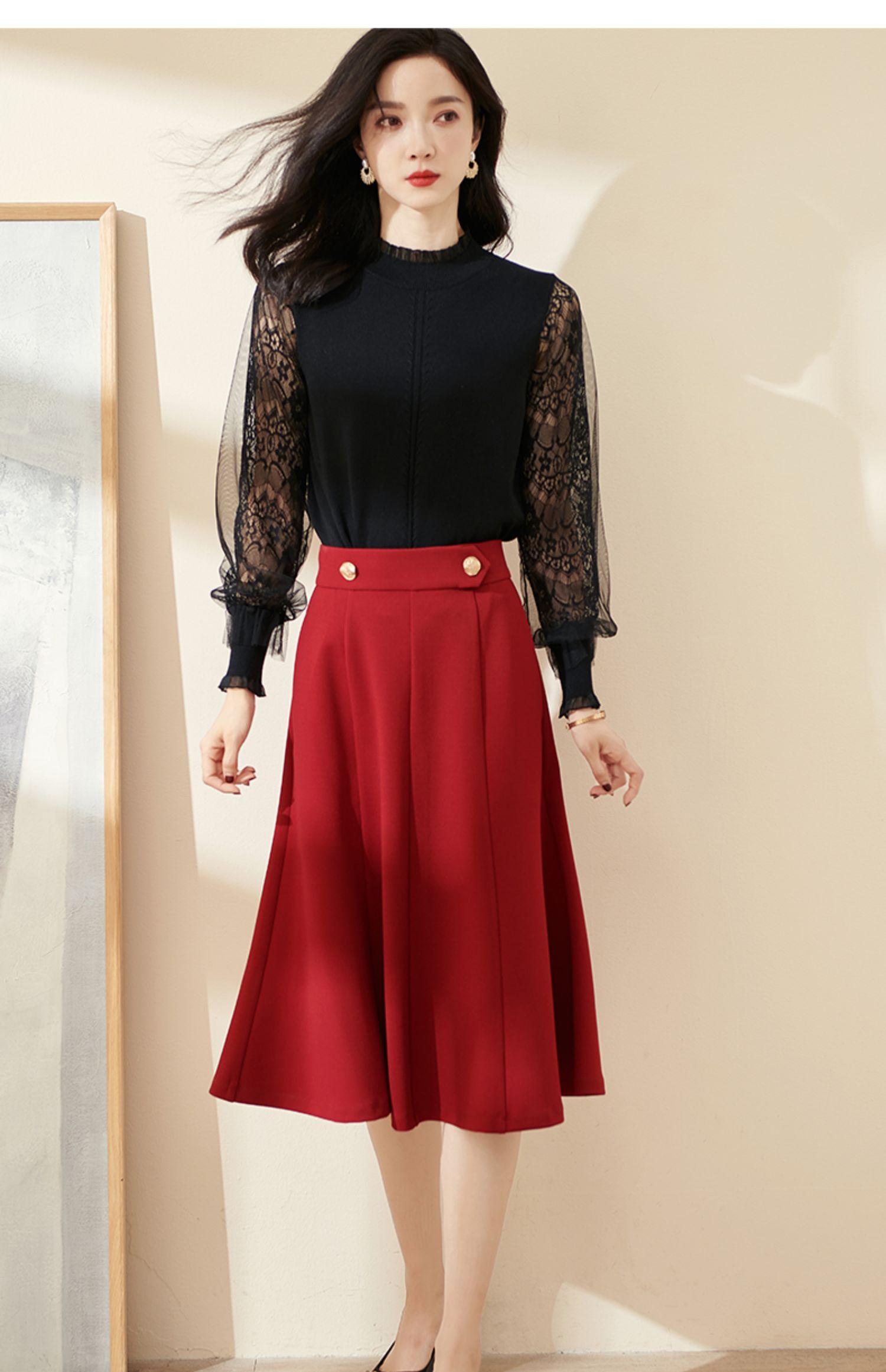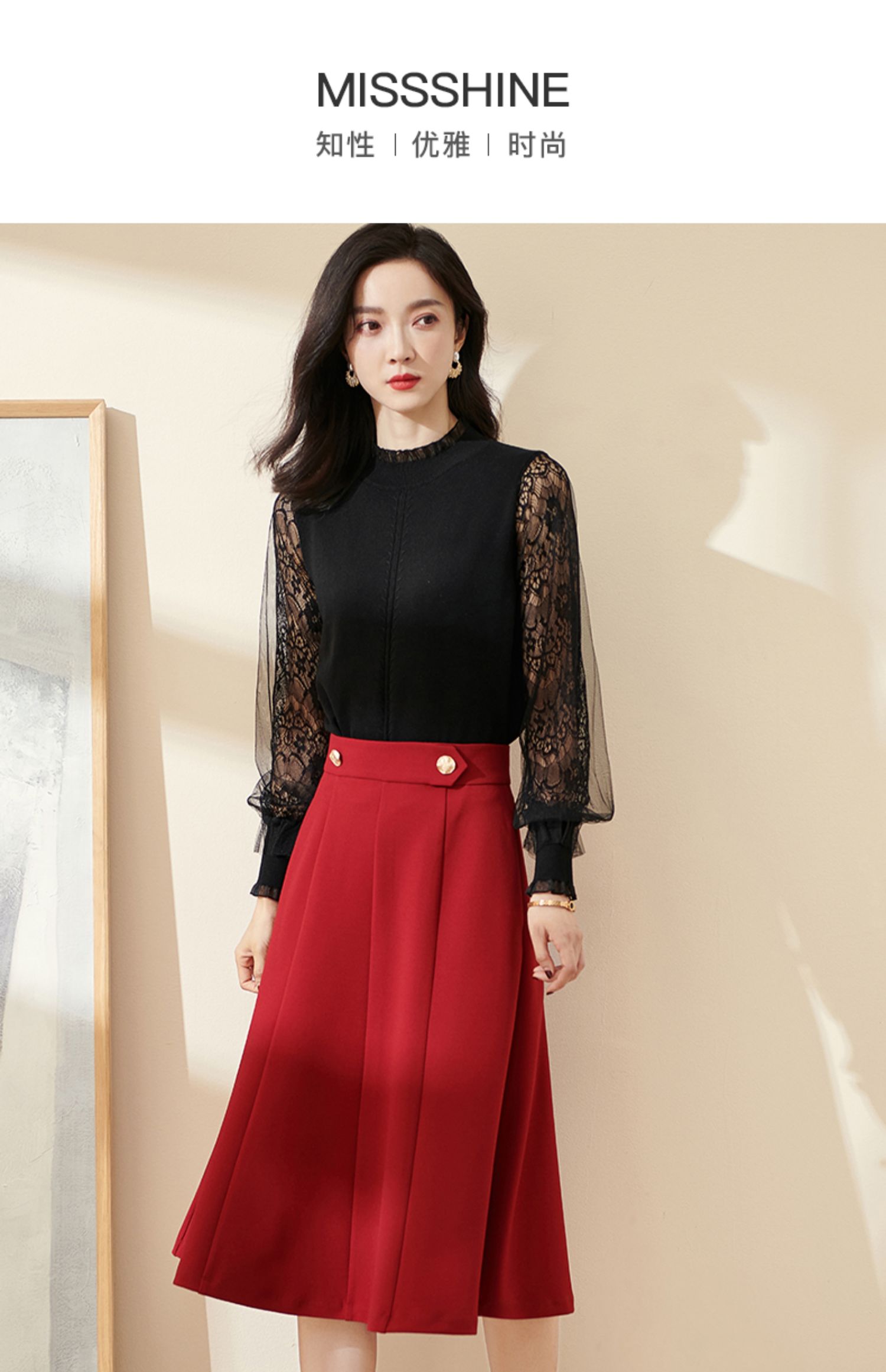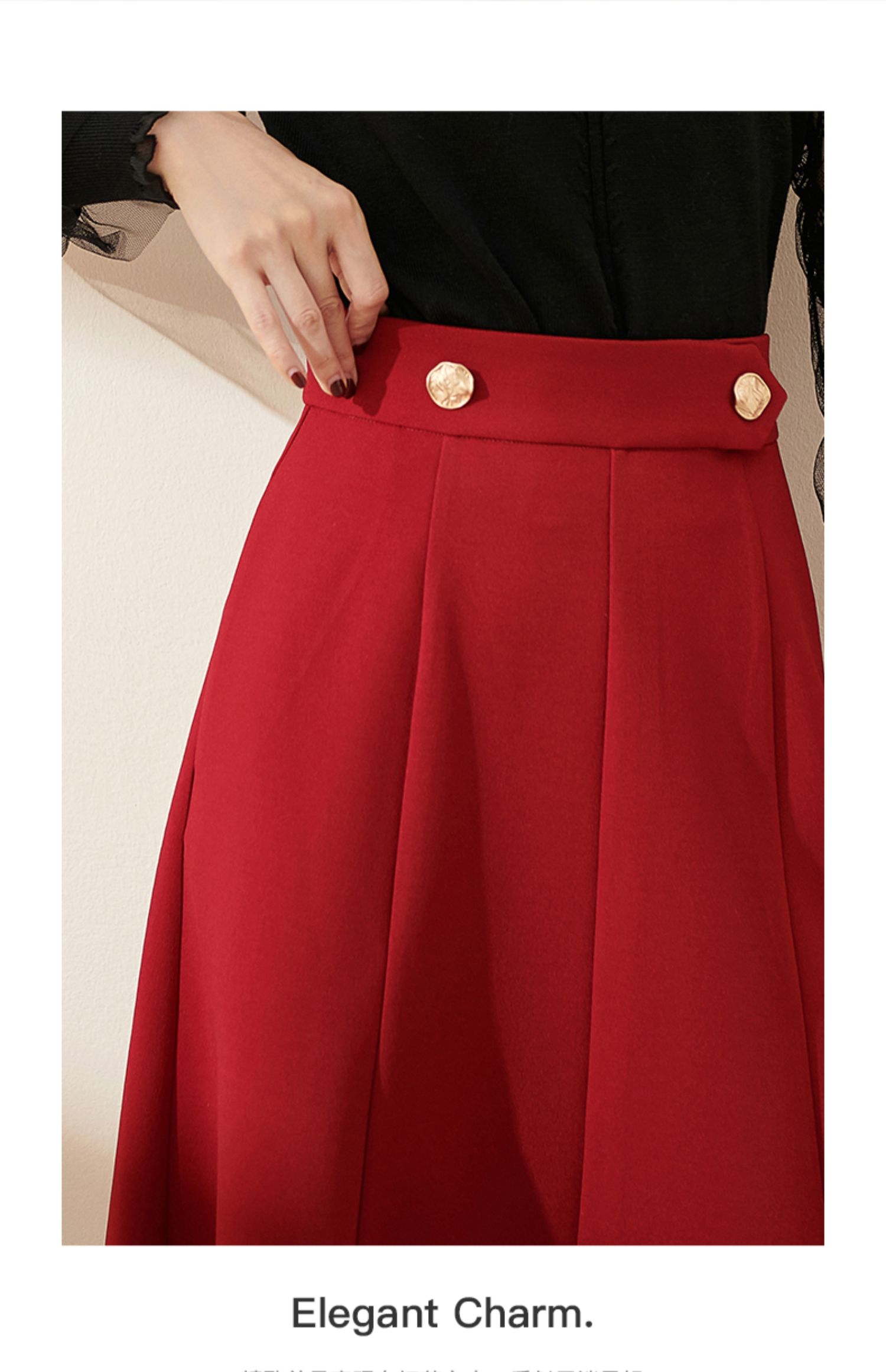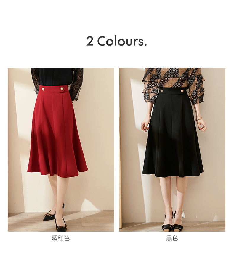 剩M 米思阳2024春季新款知性气质纯色半身裙通勤百搭中长款a字裙0013