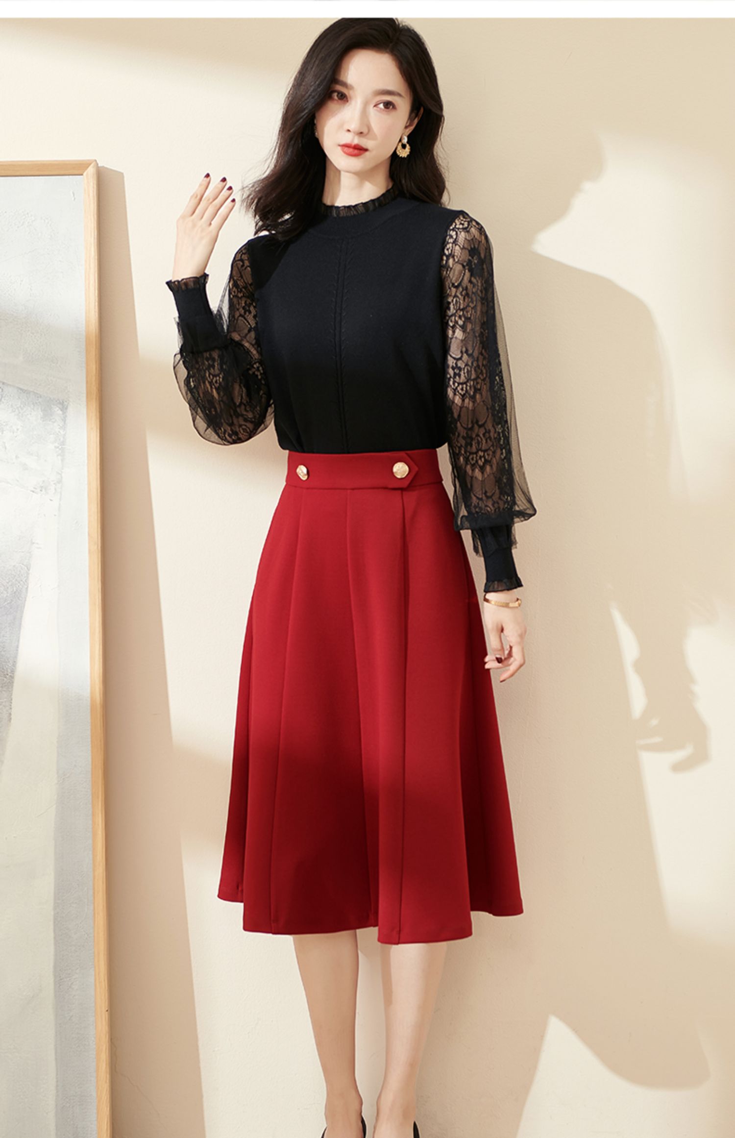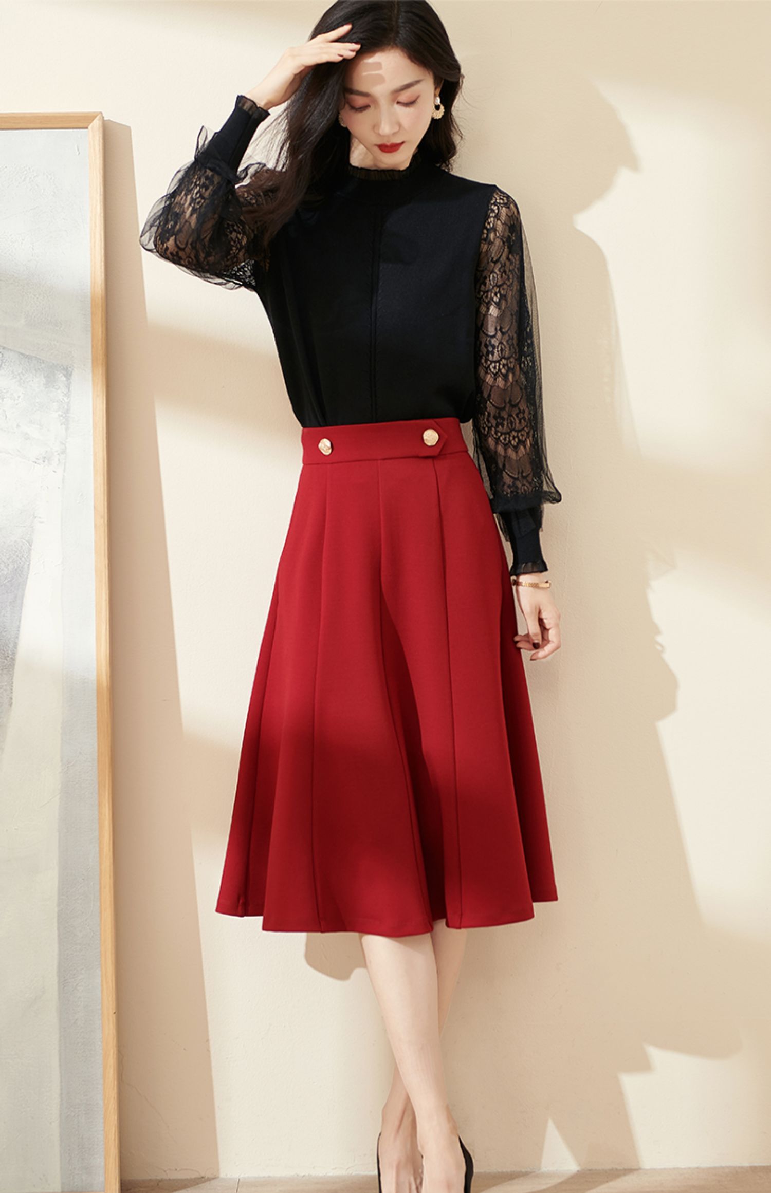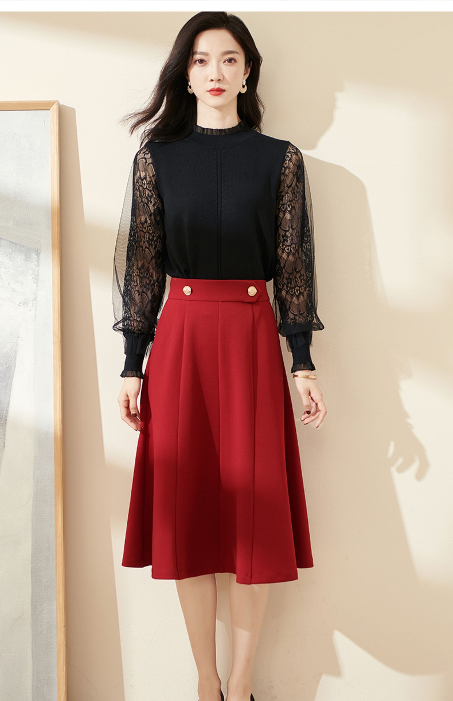 剩M 米思阳2024春季新款知性气质纯色半身裙通勤百搭中长款a字裙0013