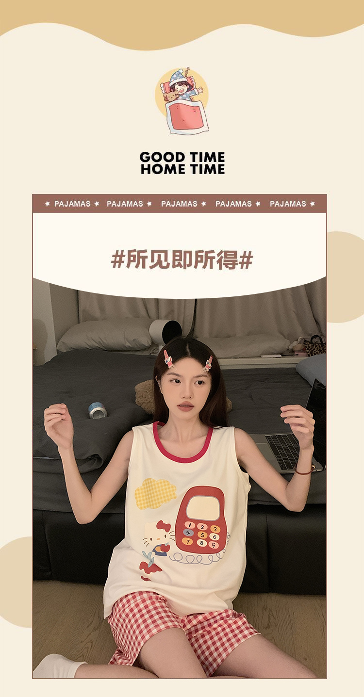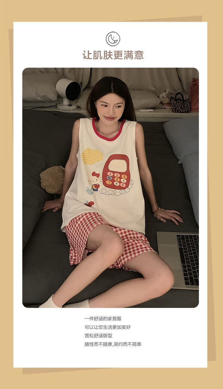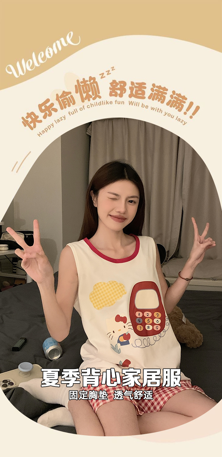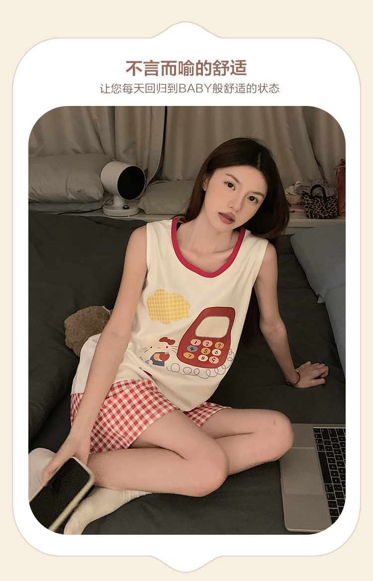【GZ】无忧购仿棉卡通印花背心短裤套装家居服(截单后3-5天发货)