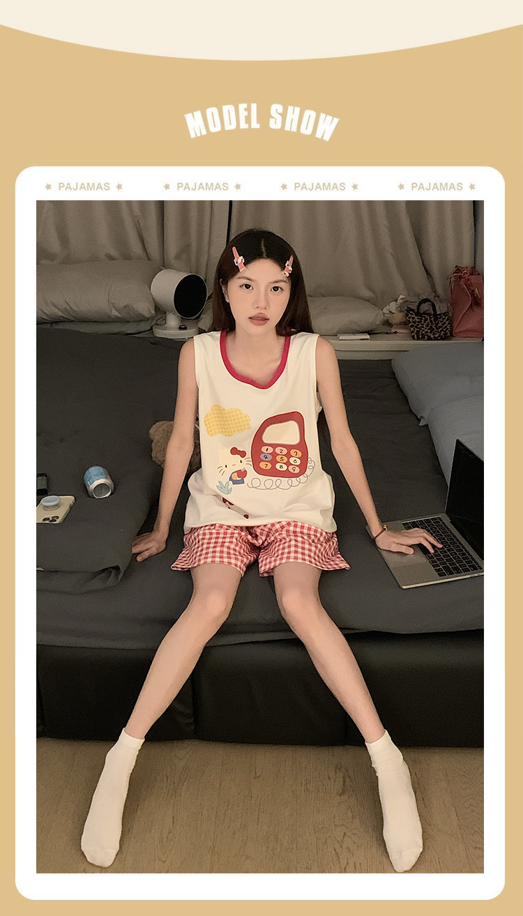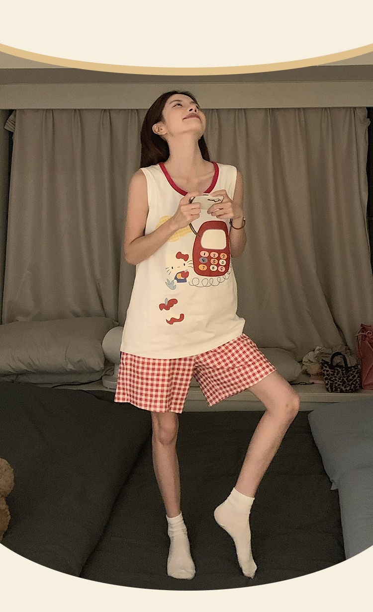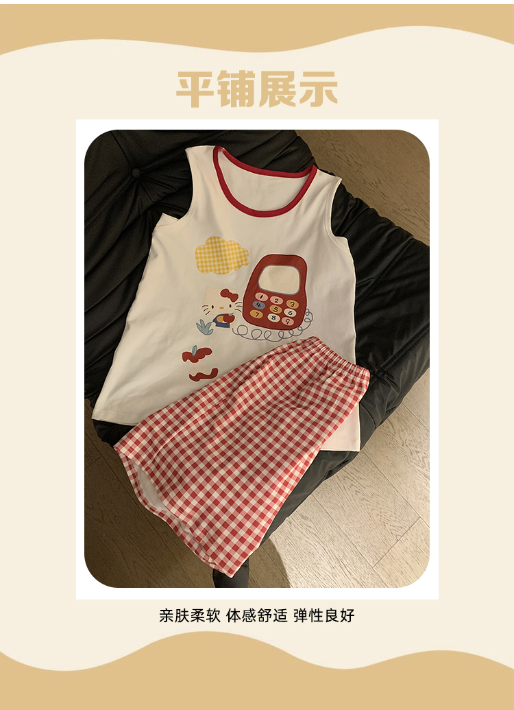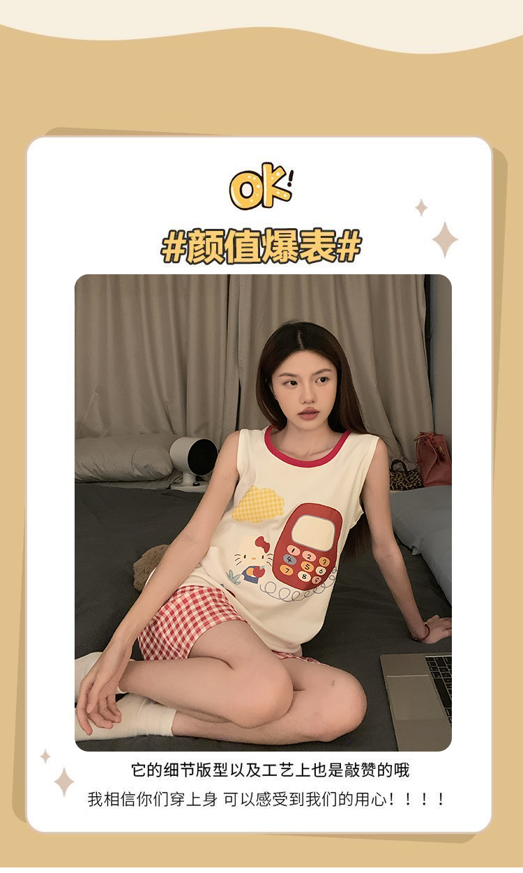 【GZ】无忧购仿棉卡通印花背心短裤套装家居服(截单后3-5天发货)