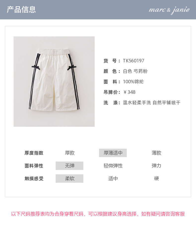 马克珍妮甜酷运动女童七分阔腿裤2026年春装新款560197