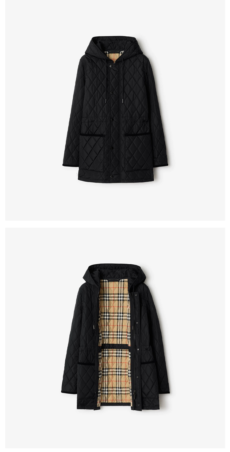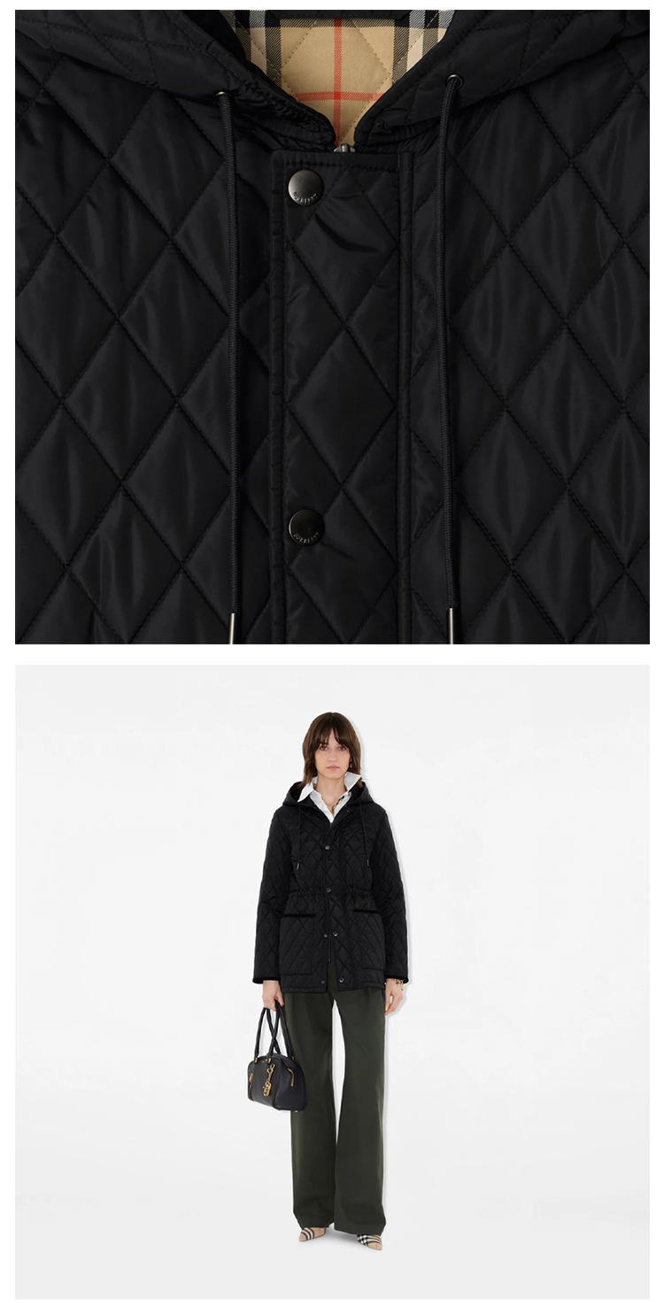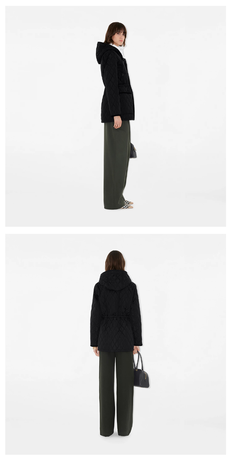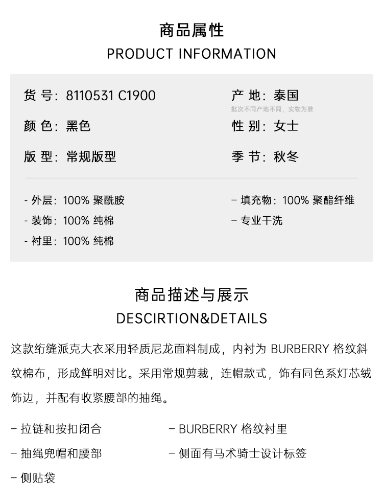 BURBERRY 巴宝莉 女士马术骑士徽标标签绗缝尼龙派克棉服 黑色 8110531 C1900