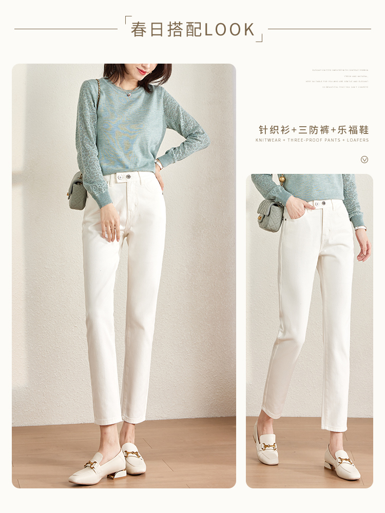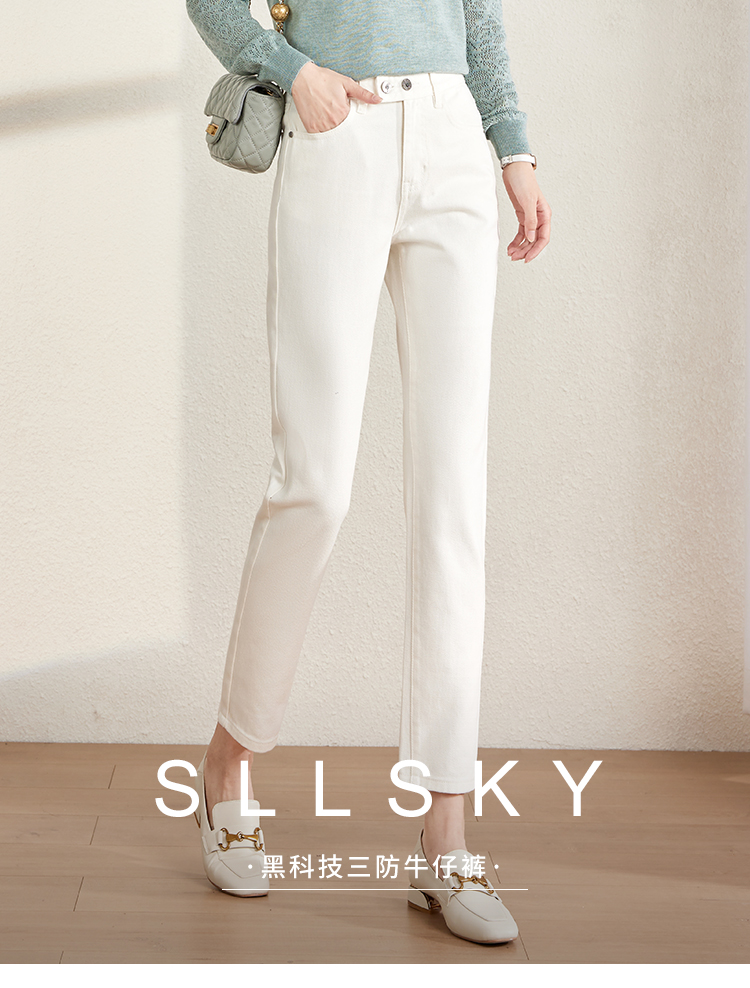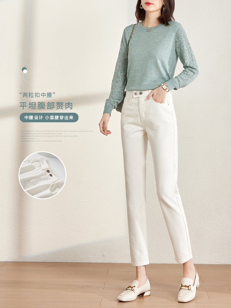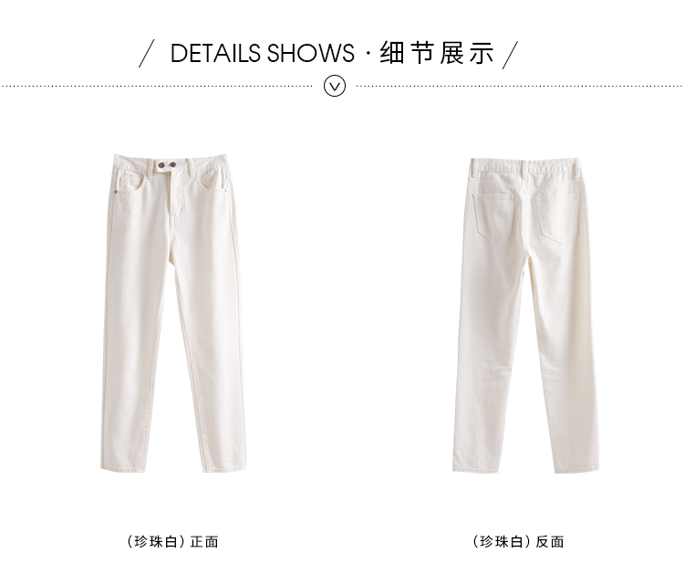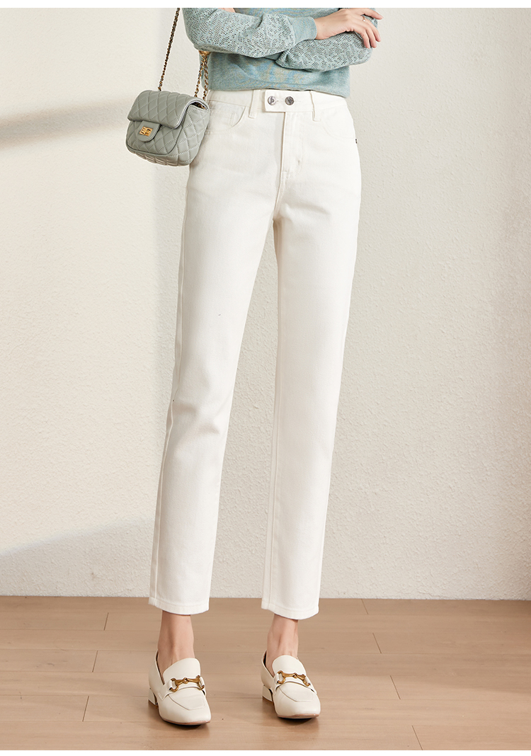 【129选3件,不退换】熙世界白色牛仔裤女直筒2025春秋款高腰显瘦小个子九分烟管裤子