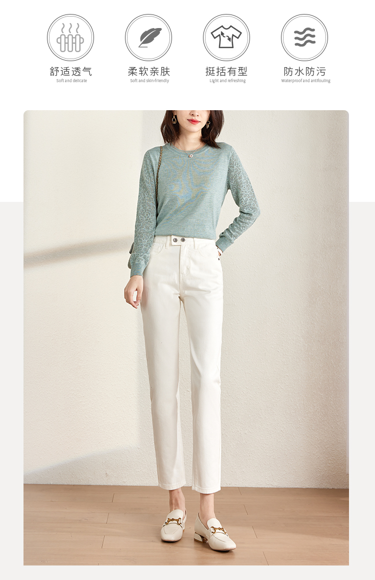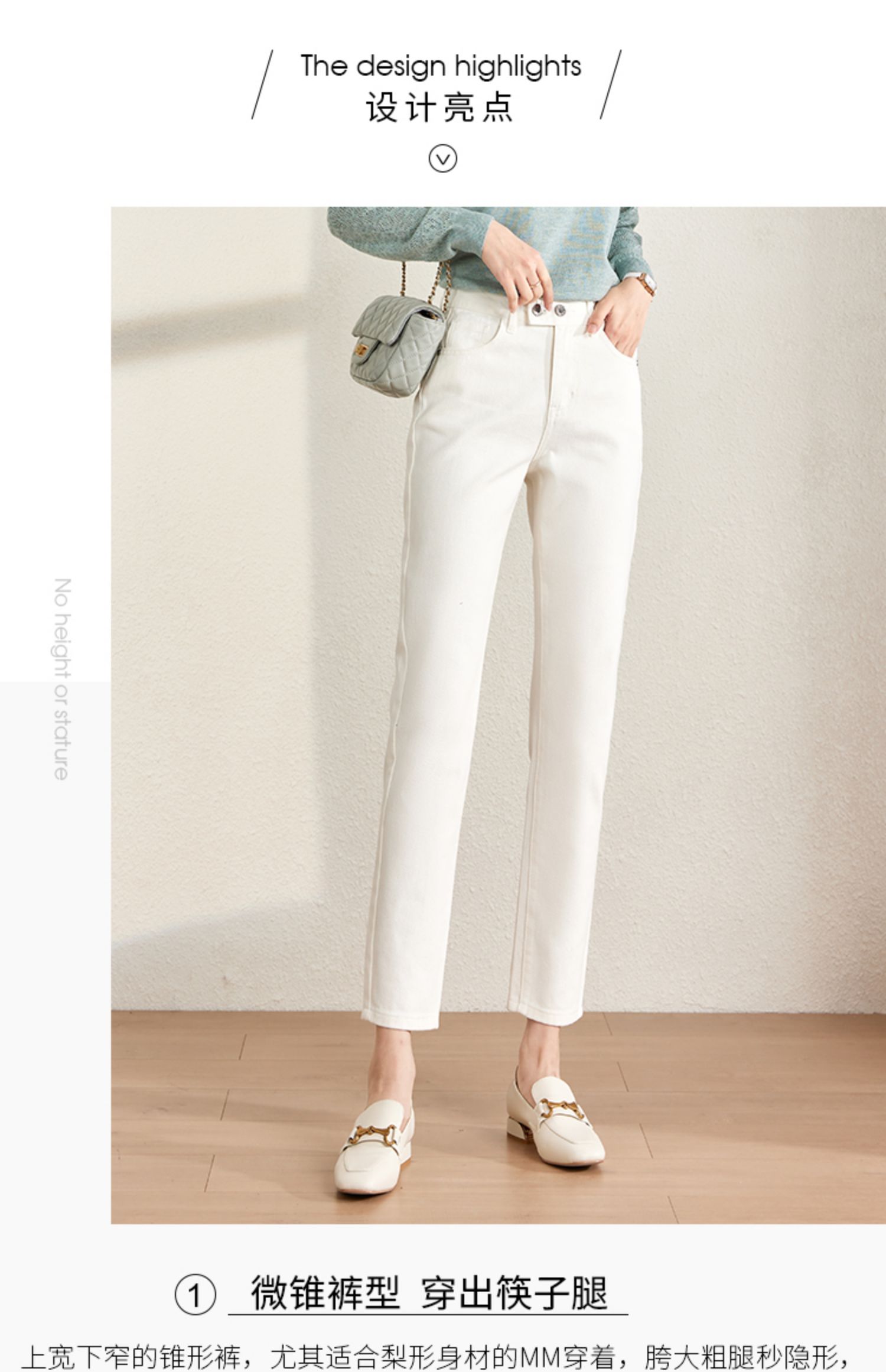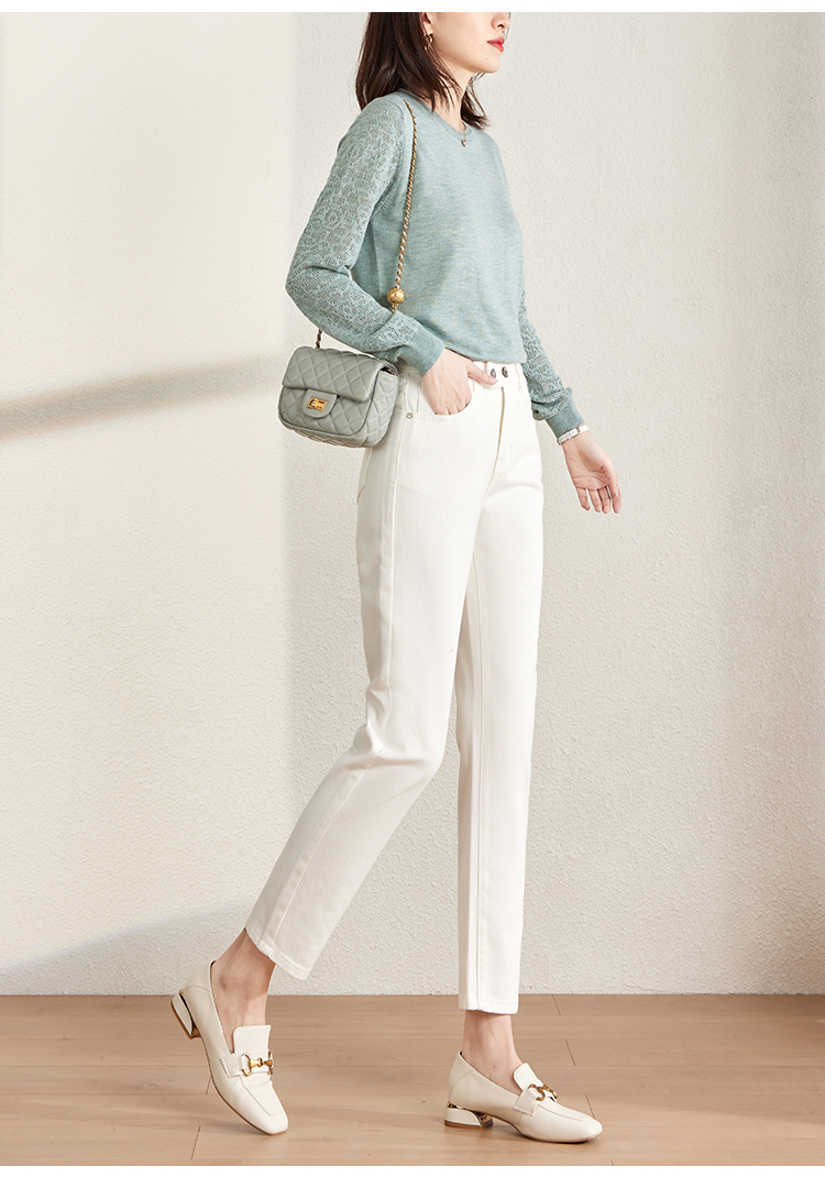 【129选3件,不退换】熙世界白色牛仔裤女直筒2025春秋款高腰显瘦小个子九分烟管裤子