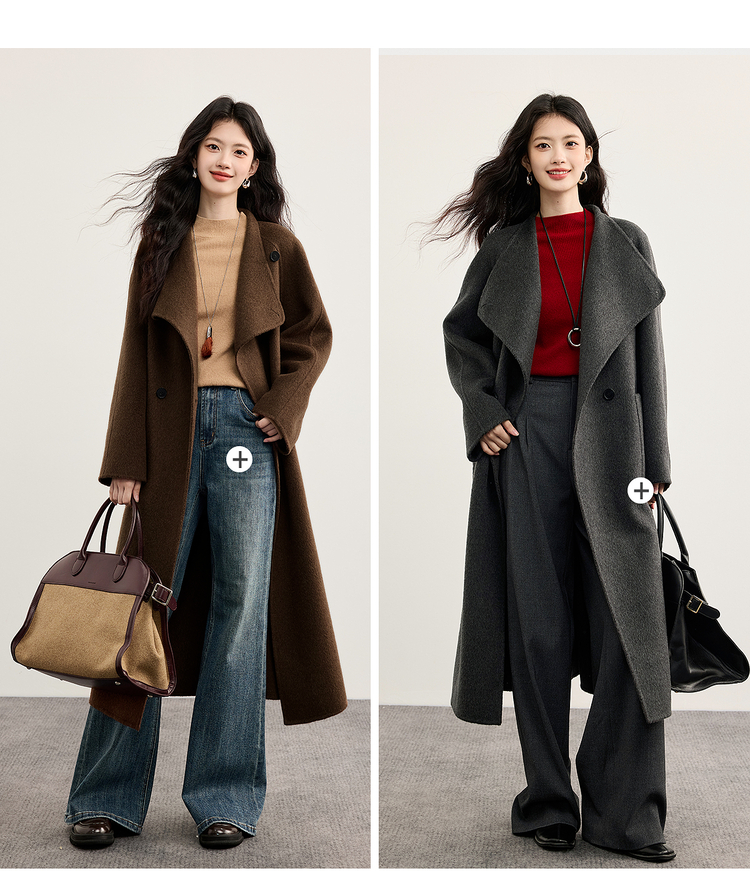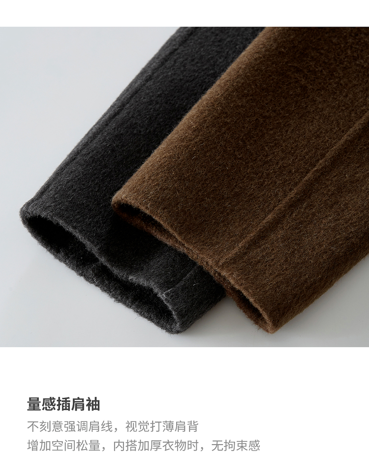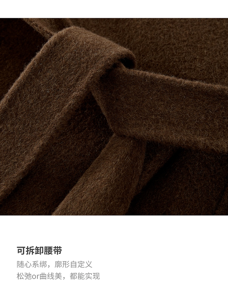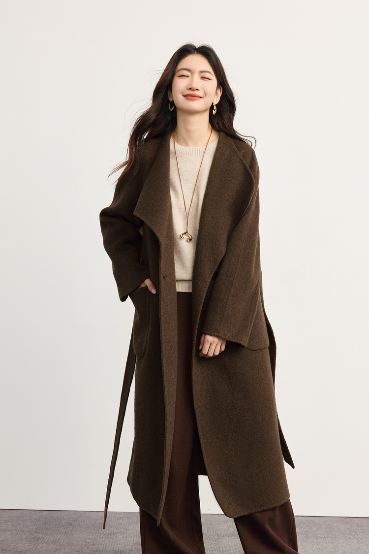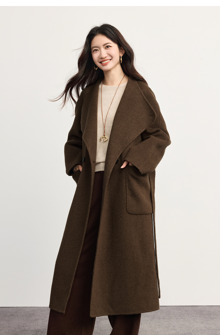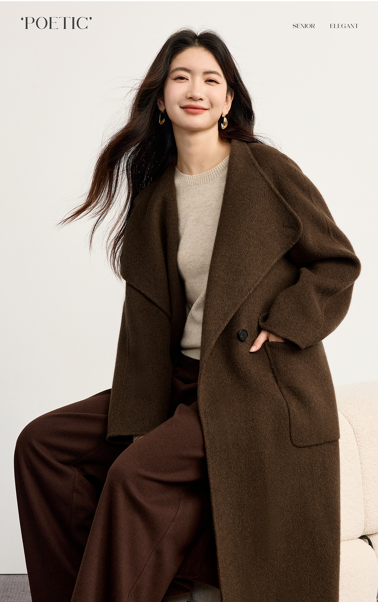 【10/29新品】熙世界廓形宽松长款毛呢大衣女冬季气质优雅棕色纯羊毛双面呢外套