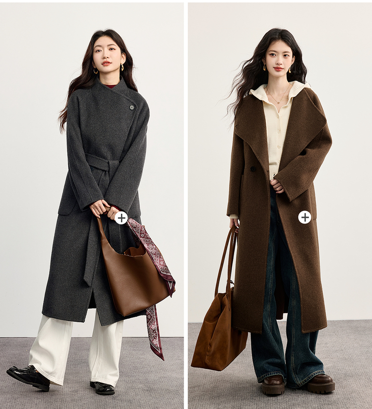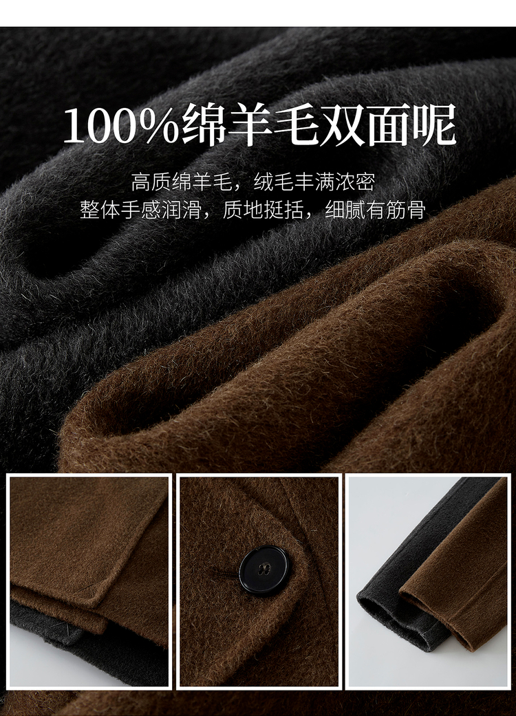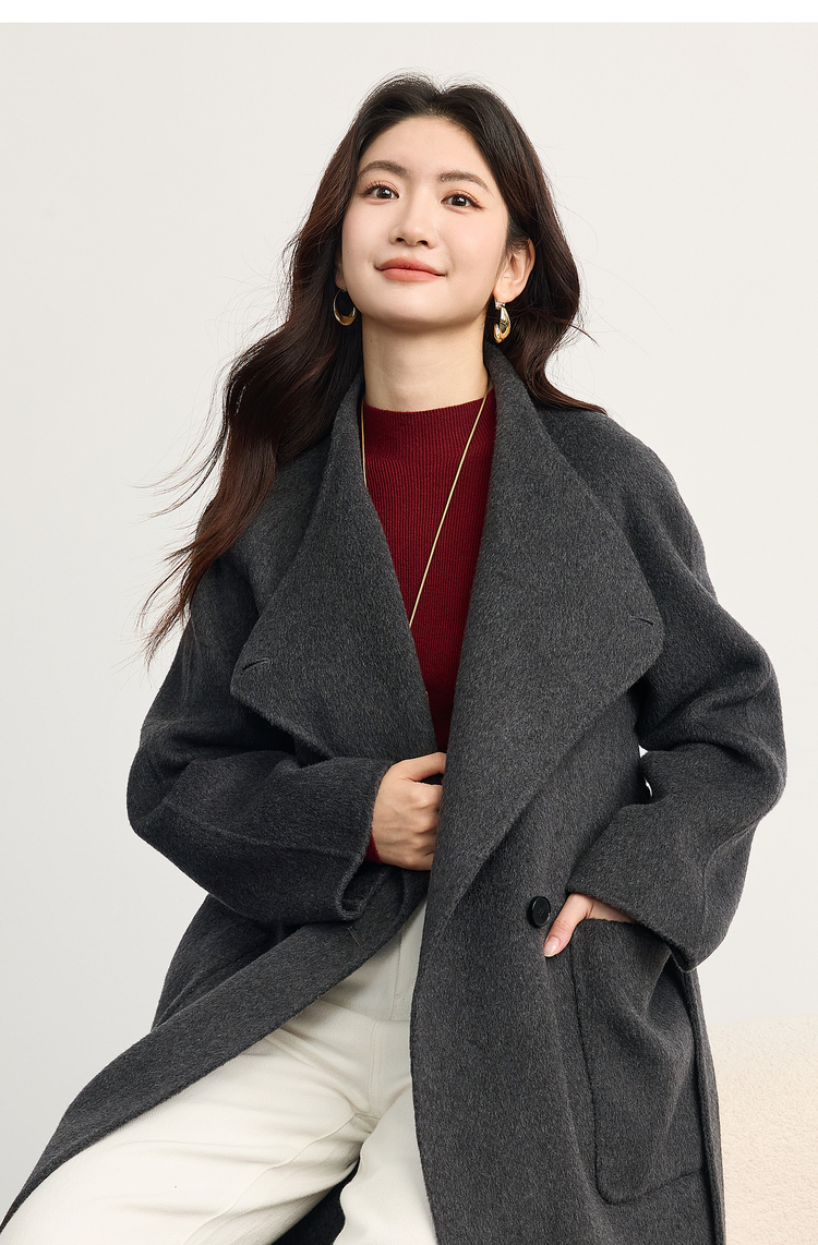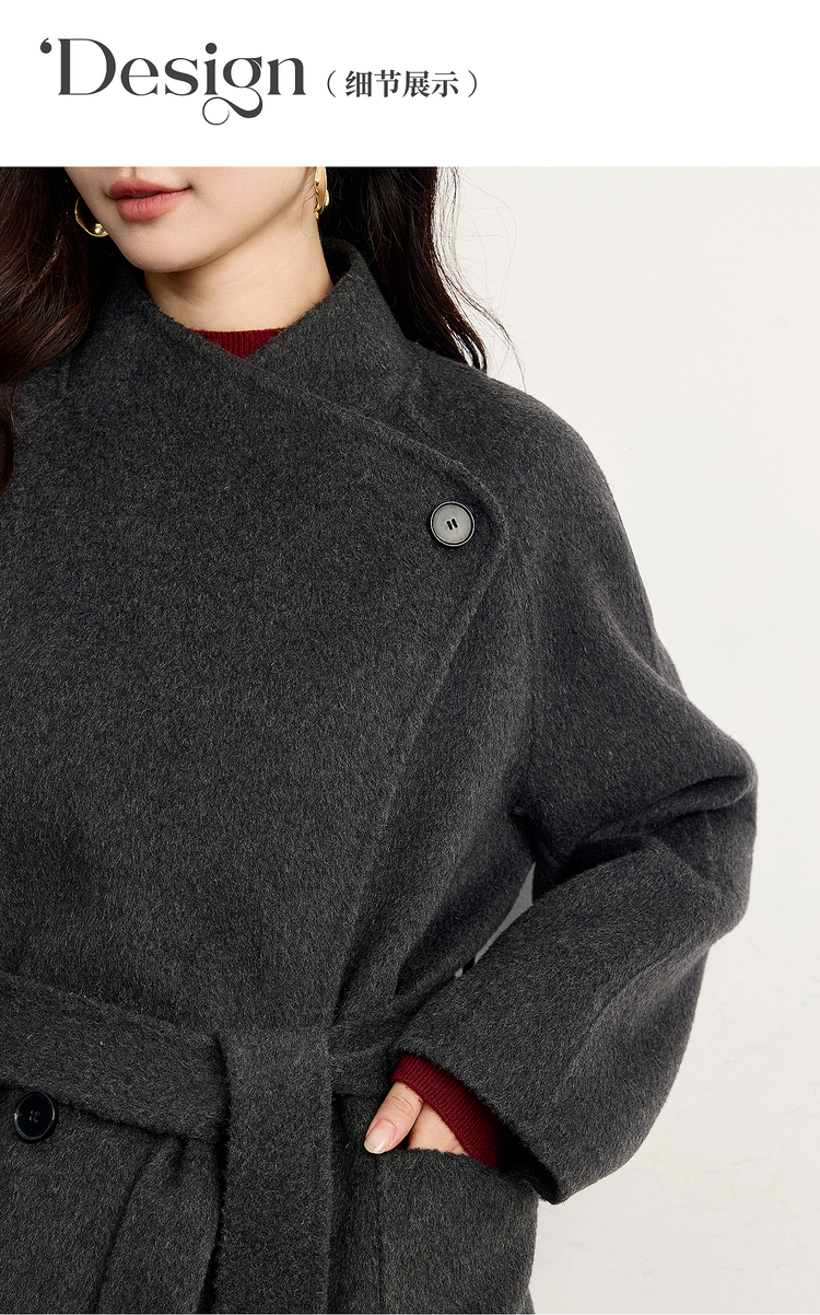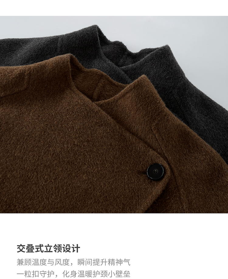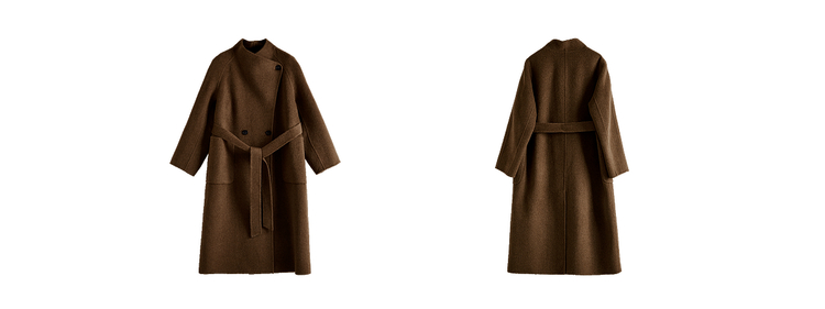 【10/29新品】熙世界廓形宽松长款毛呢大衣女冬季气质优雅棕色纯羊毛双面呢外套