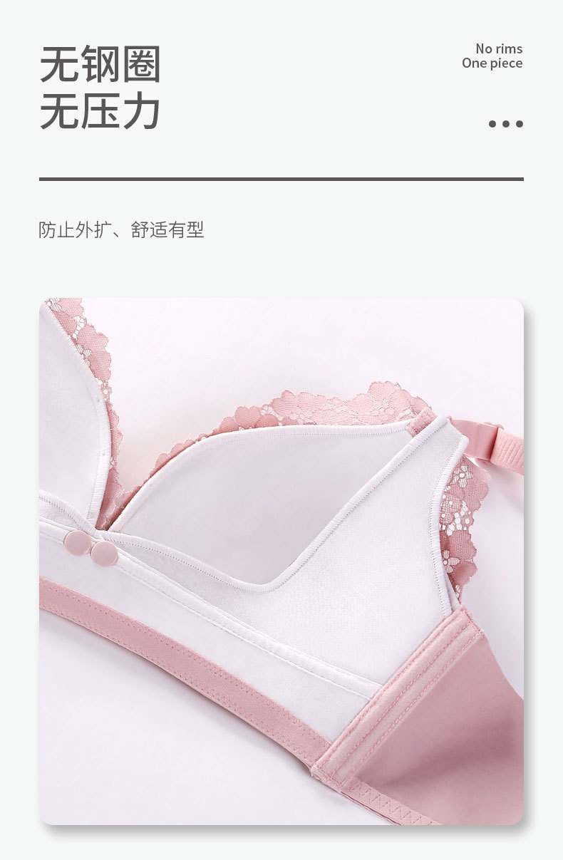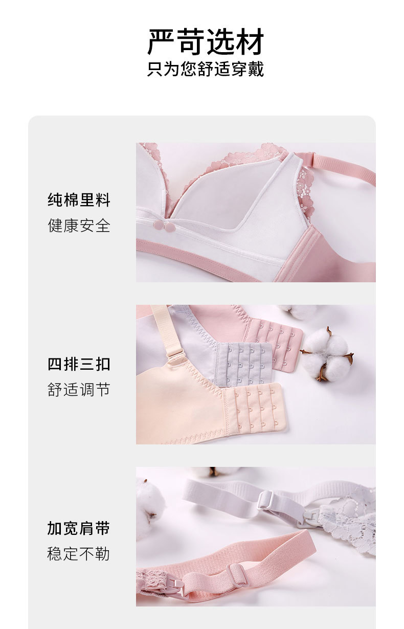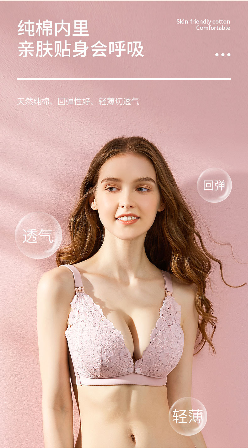 内康妈咪蕾丝哺乳文胸无痕纯棉薄无钢圈喂奶孕妇内衣肤色/紫色