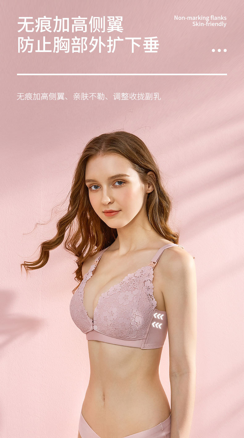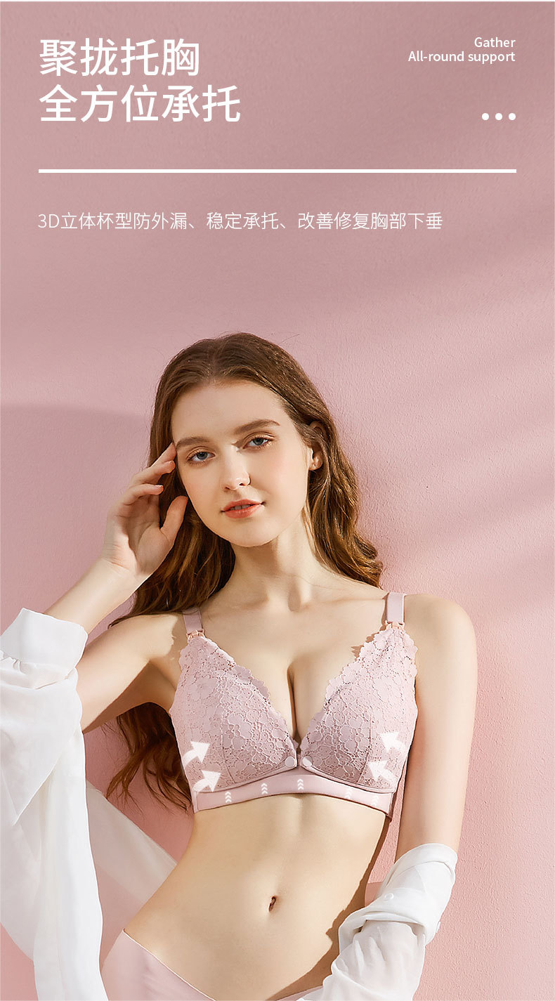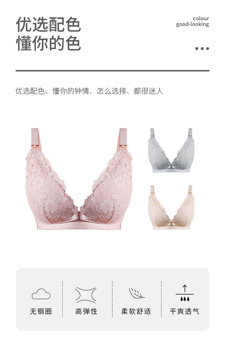 内康妈咪蕾丝哺乳文胸无痕纯棉薄无钢圈喂奶孕妇内衣肤色/紫色