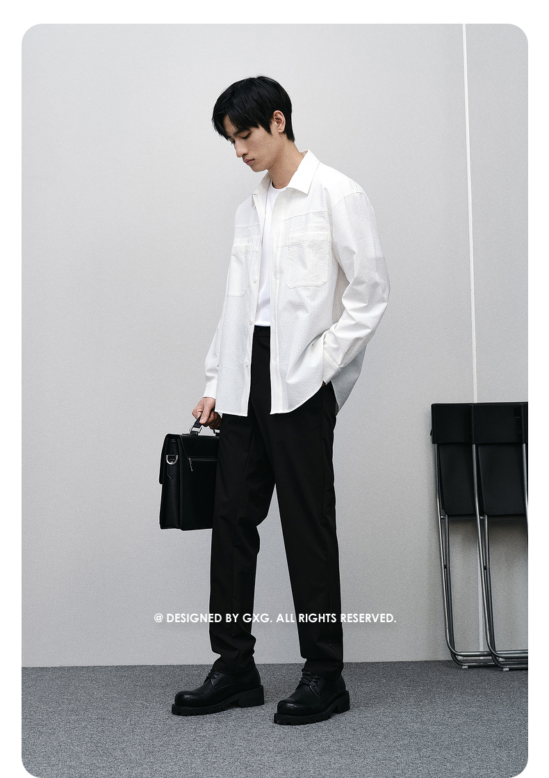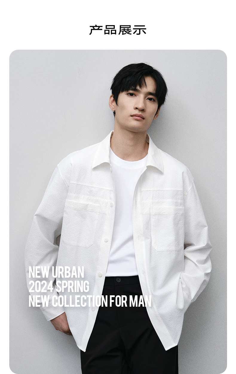 GXG男装 肌理感翻领衬衫多色可选休闲长袖外套春季热卖衬衫外套 G24X033012