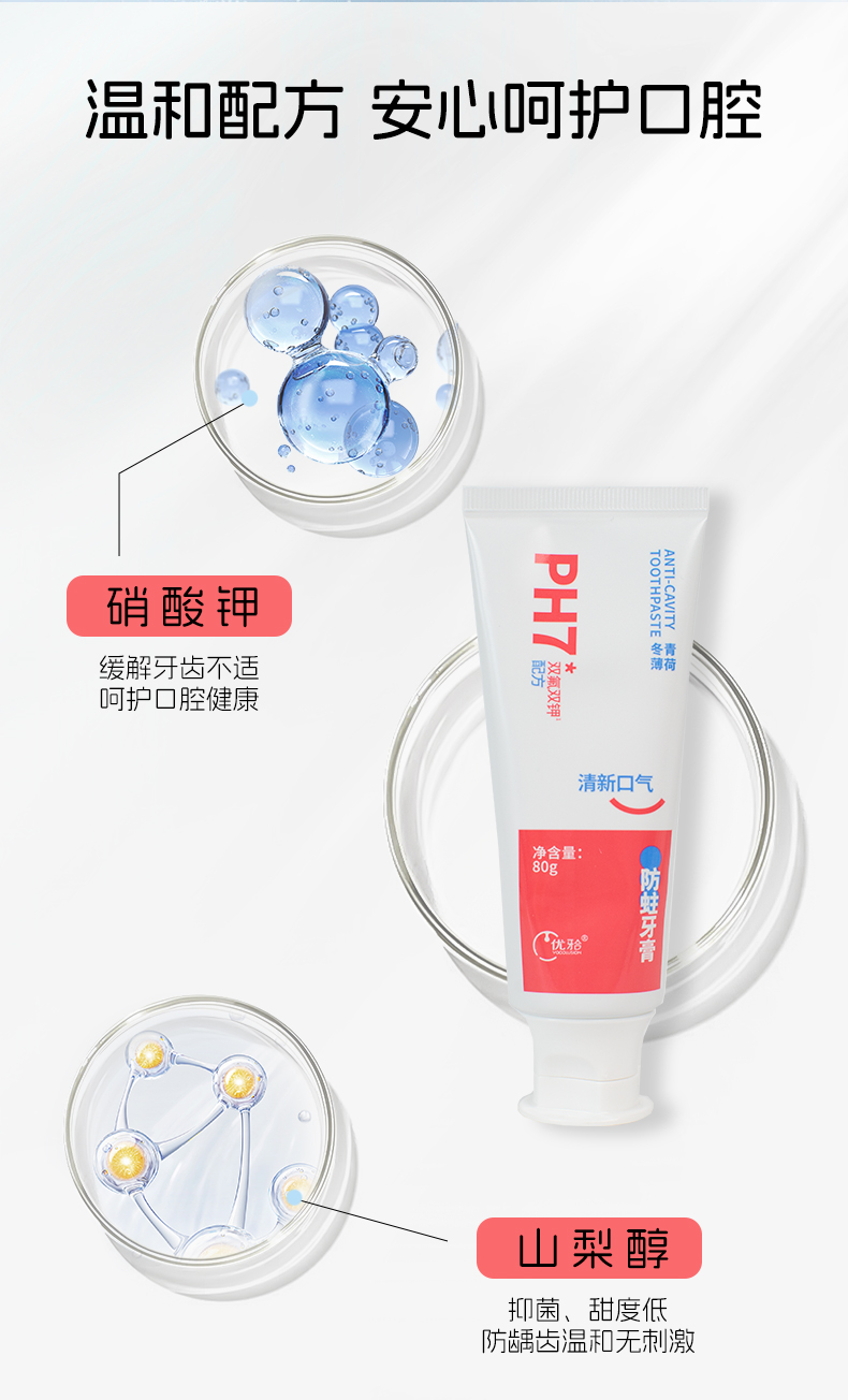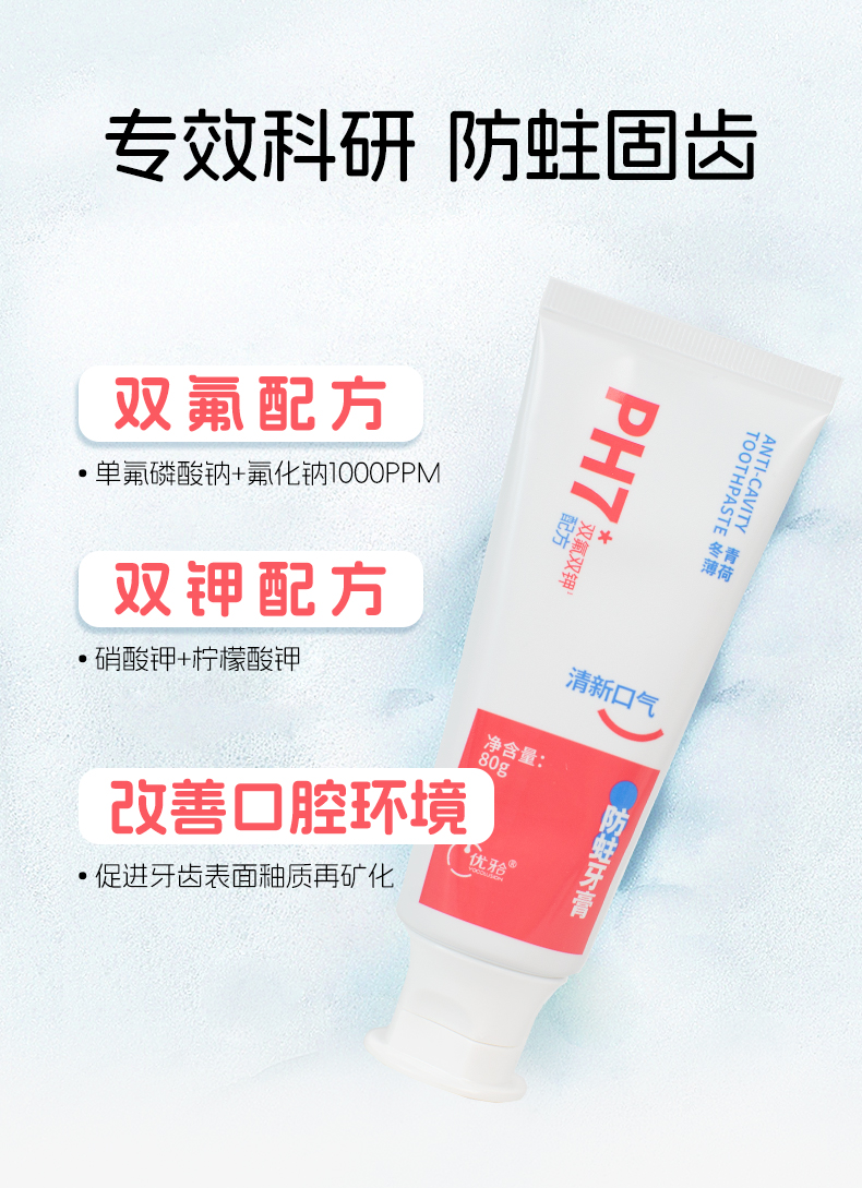 【优牙合】ph7成人牙膏牙齿清洁牙釉质牙膏含氟防蛀牙齿敏感人群适用