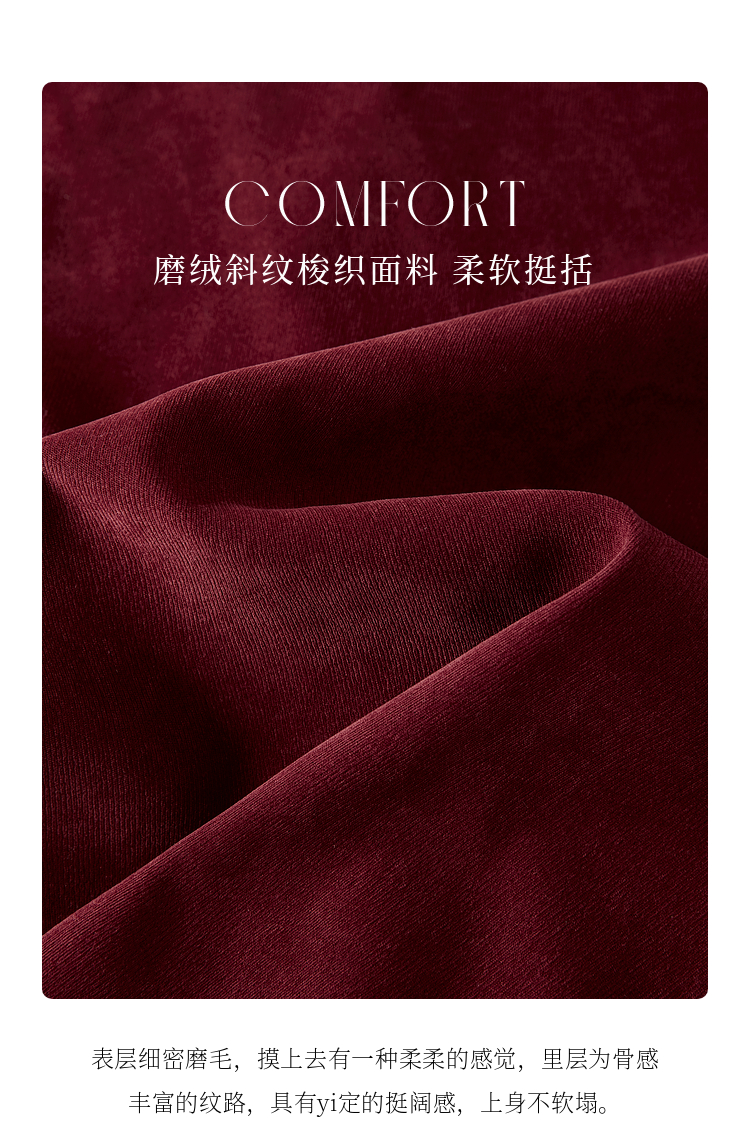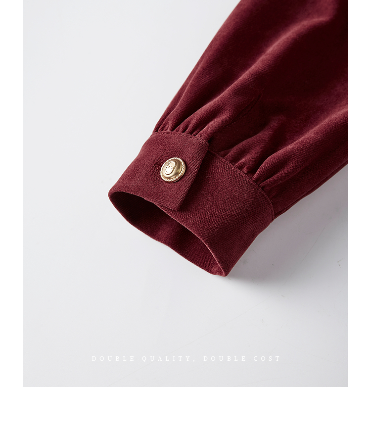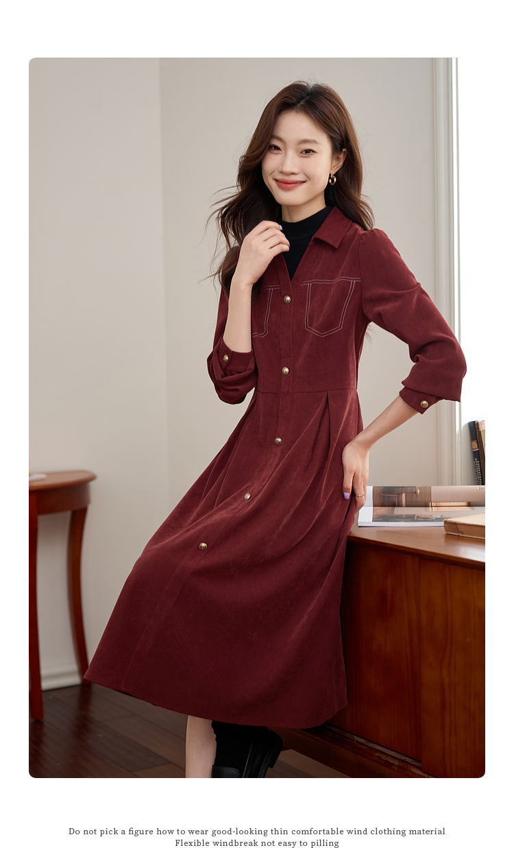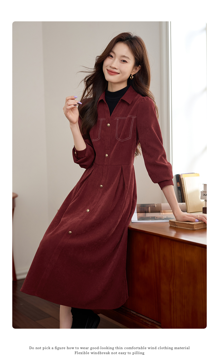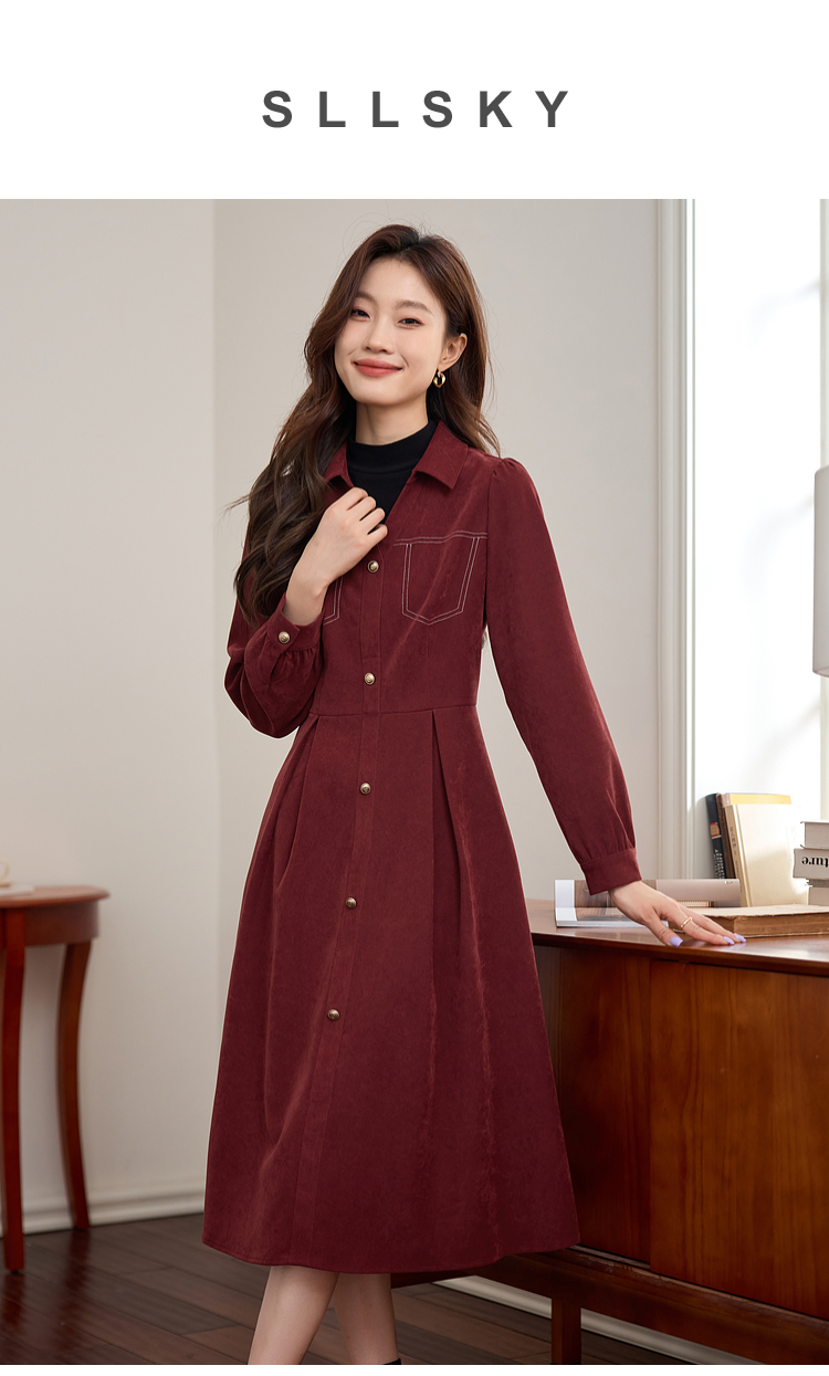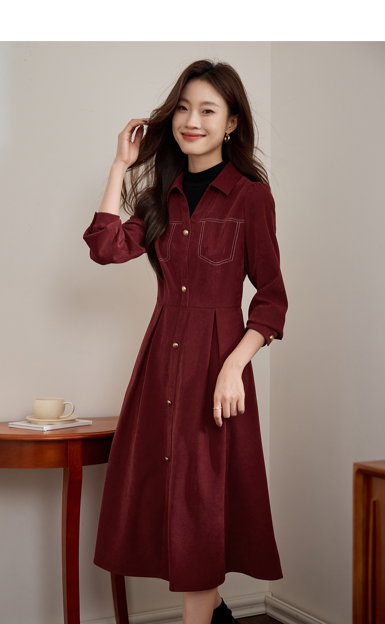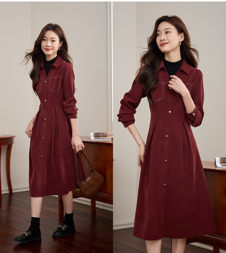 【1件76折】熙世界假两件磨绒红色连衣裙秋冬2025新款日常通勤磨毛衬衫裙子