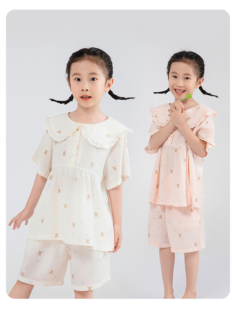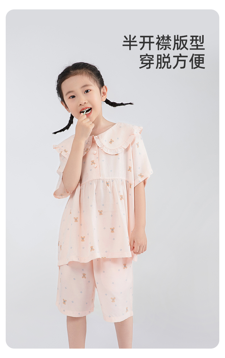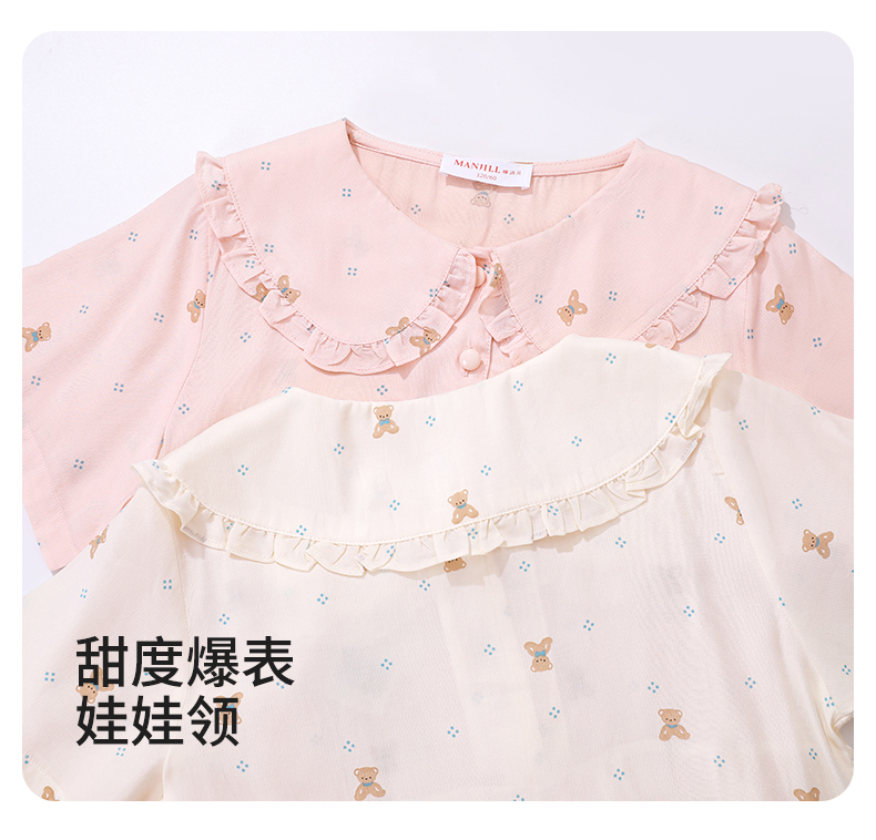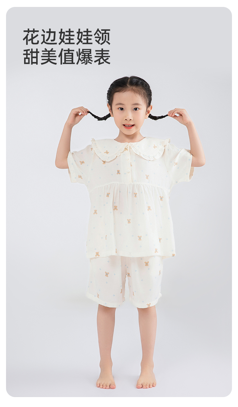 【商场同款】熳洁儿 儿童家居服梭织女童可爱小熊印花娃娃领家居服短袖短裤套装24203609