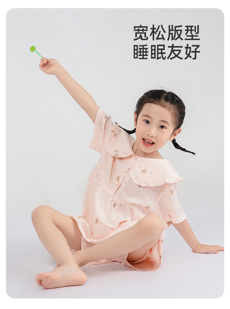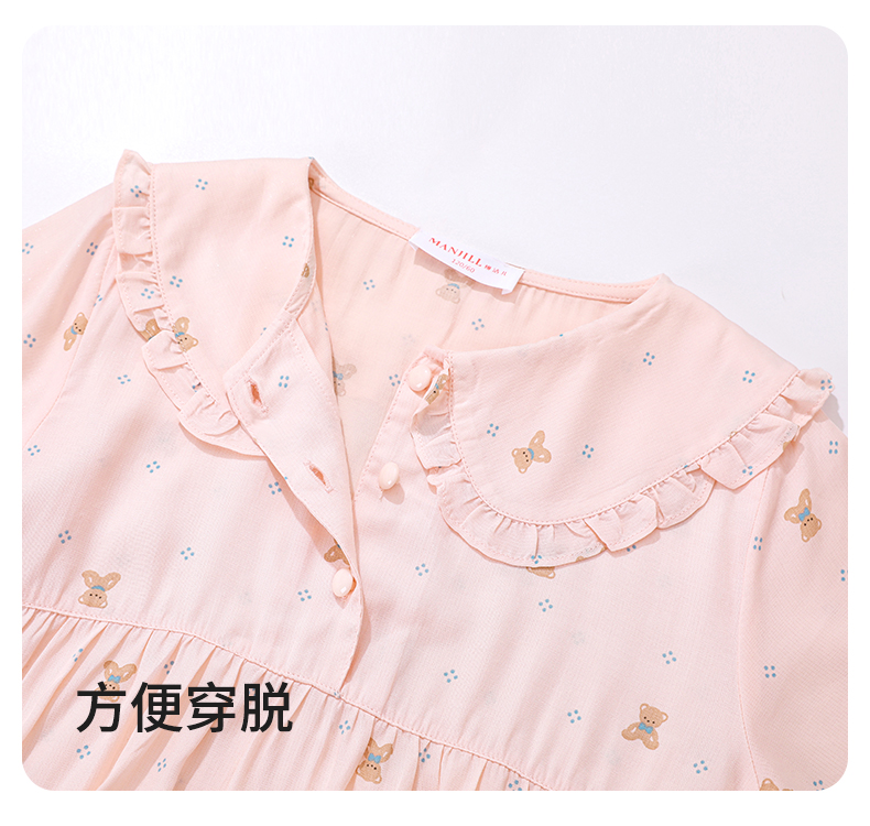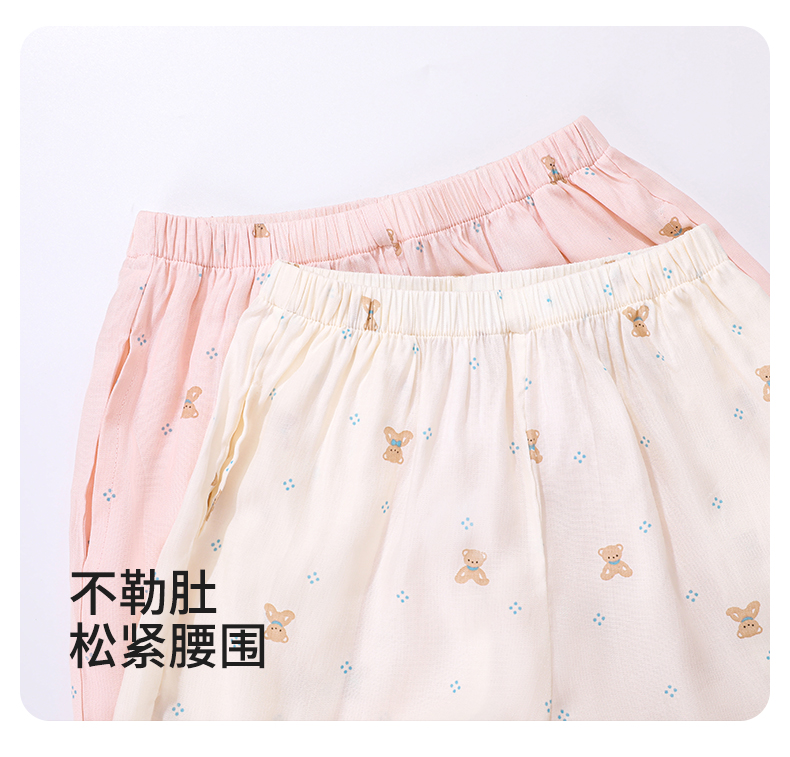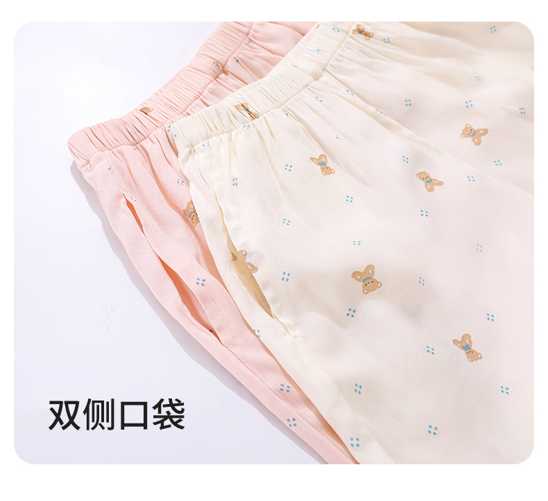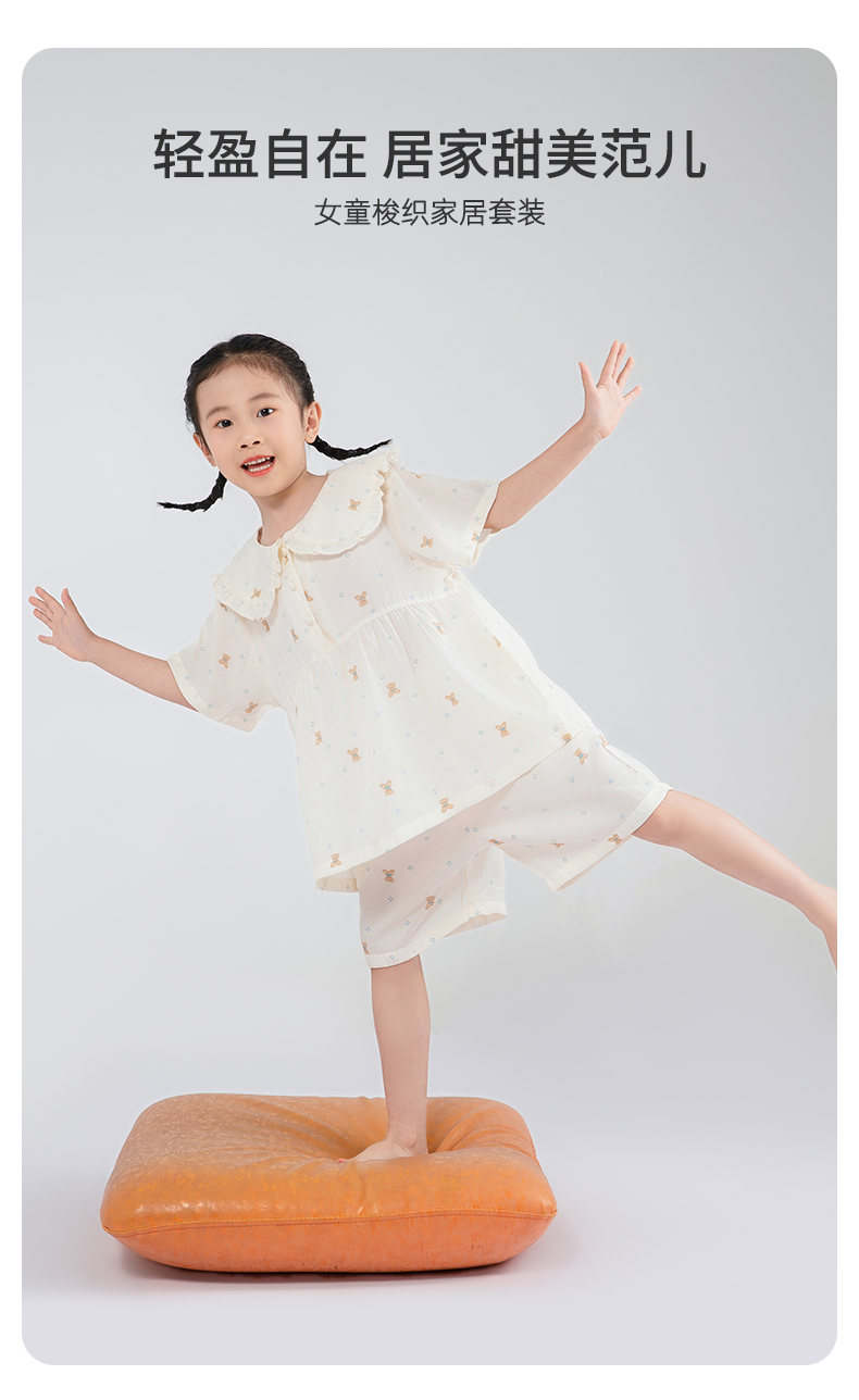 【商场同款】熳洁儿 儿童家居服梭织女童可爱小熊印花娃娃领家居服短袖短裤套装24203609