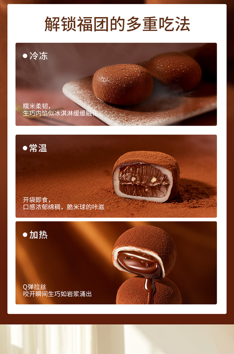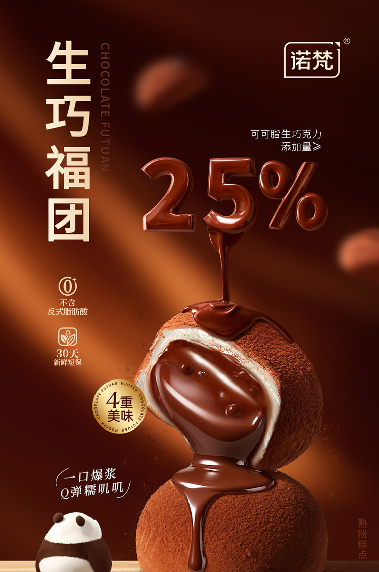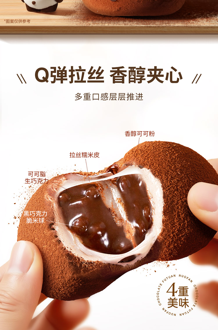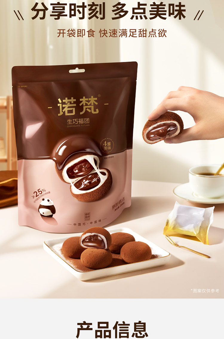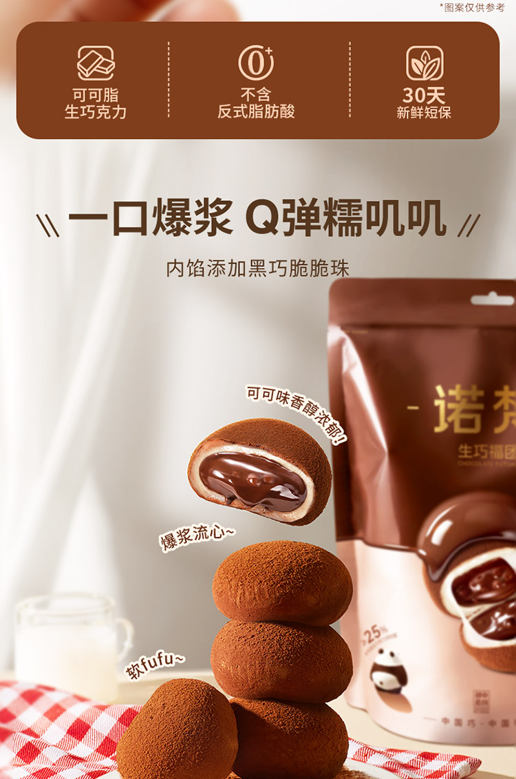 诺梵 生巧福团 生巧克力味 夹心麻薯大福团 香醇浓郁 休闲解馋零食 48小时发货