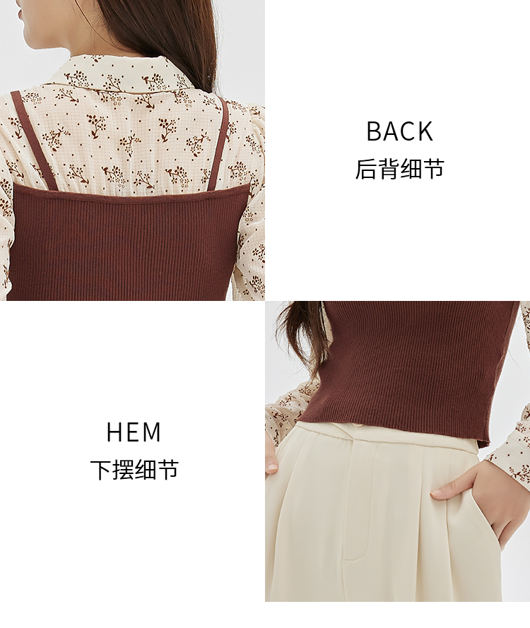 NUTS商场同款春秋季设计感小众碎花针织拼接长袖套头衫女331012188
