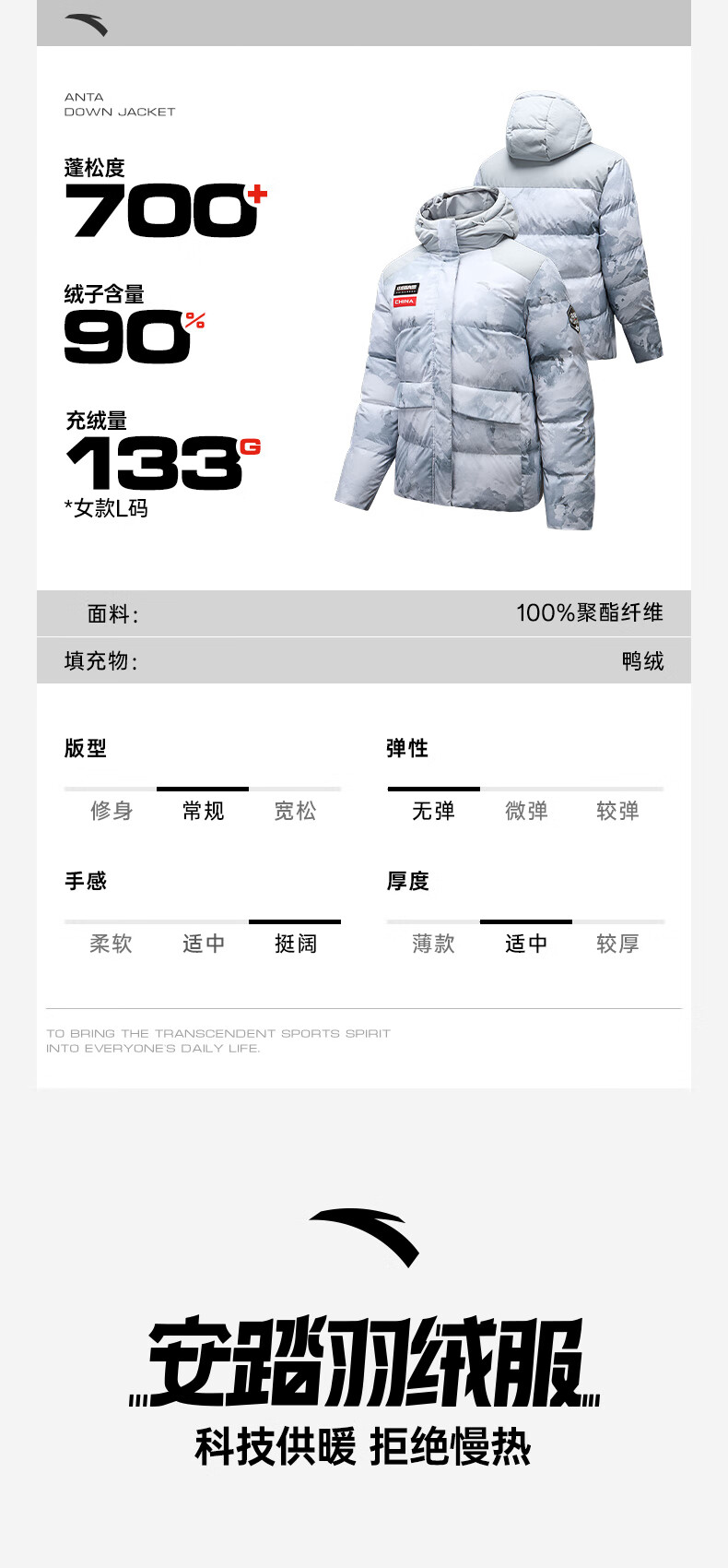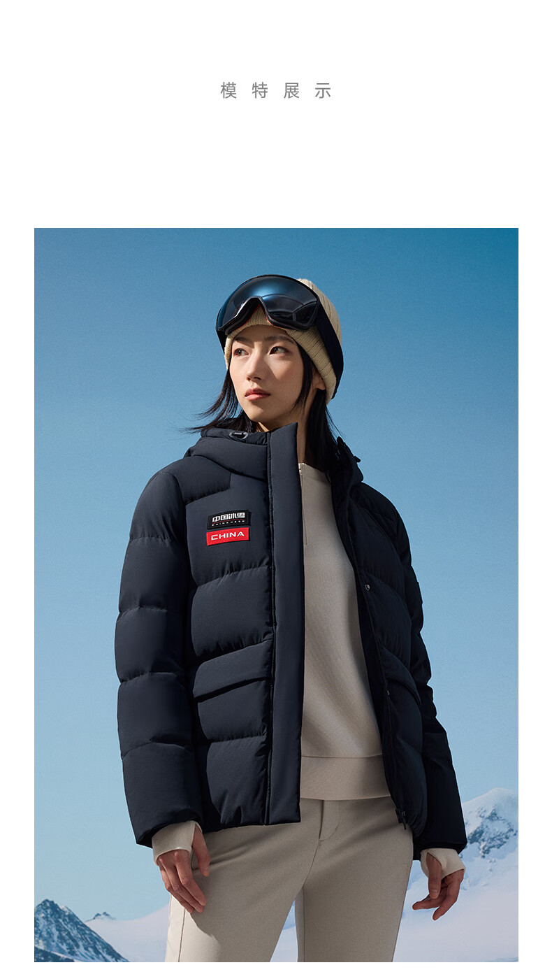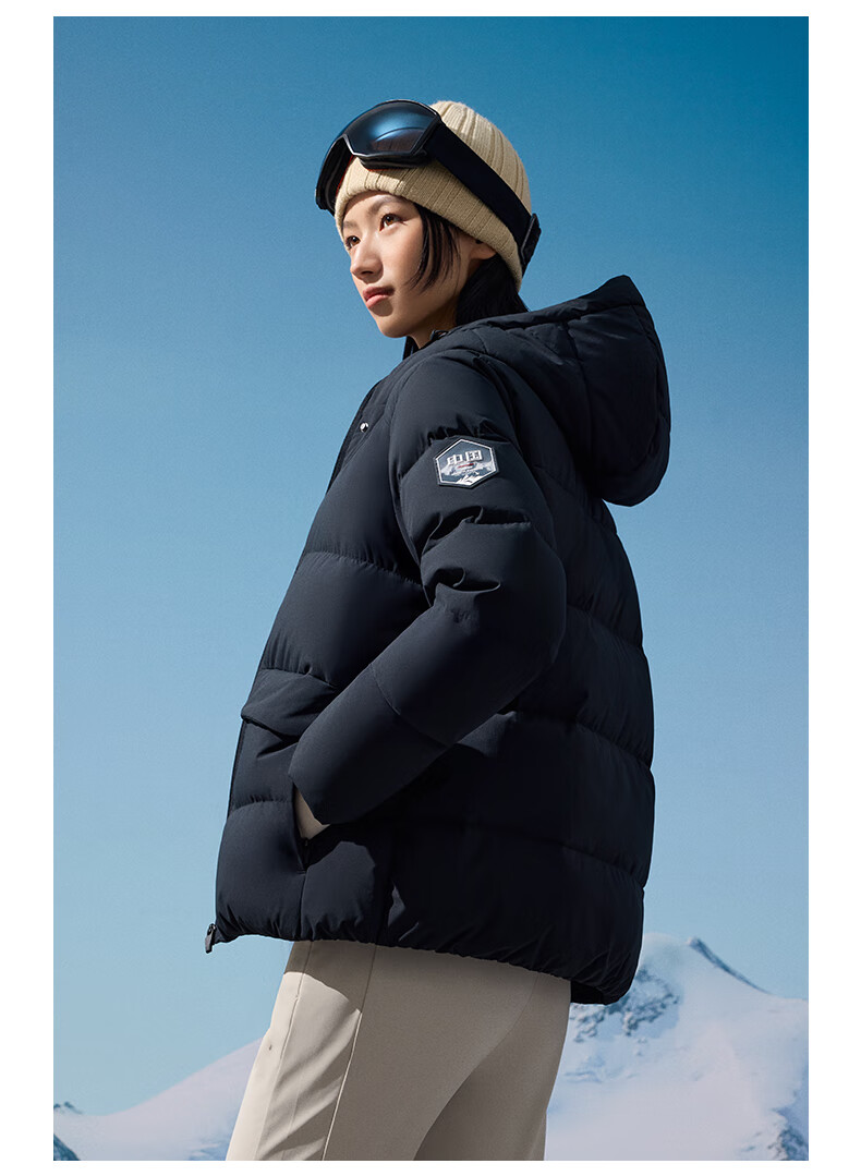 安踏冰甲羽绒丨短款防泼水羽绒服女士冬季棉服夹克162447904 基础黑-4