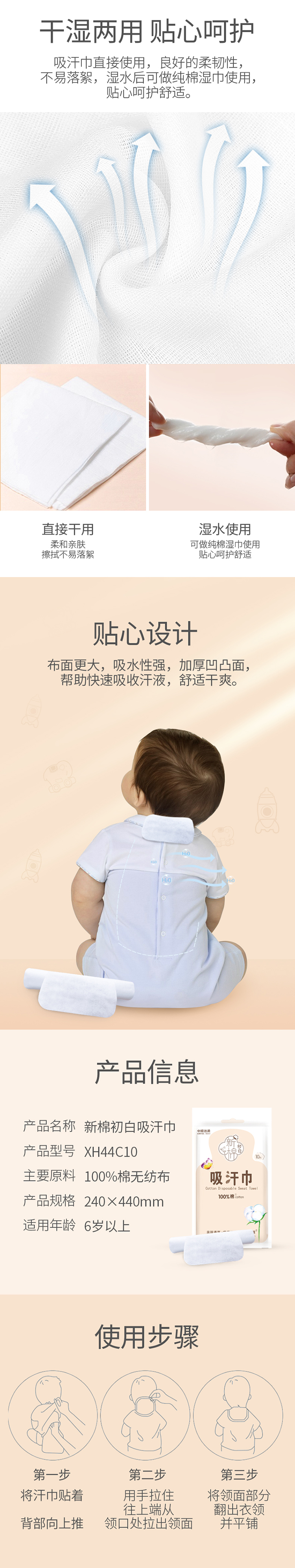 洁柔新棉初白纯棉吸汗巾10片装(大童款)