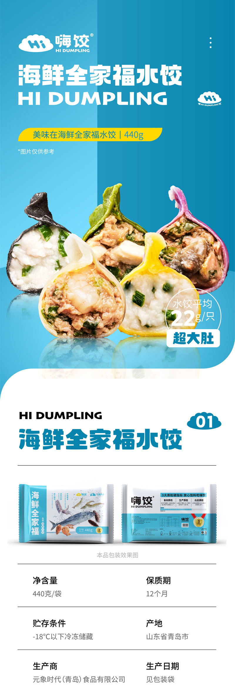 自营(月亮湾)-海鲜手工水饺 鲅鱼/海参/墨鱼/全家福/小龙虾速冻饺子