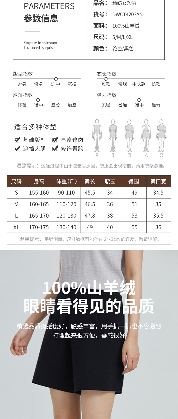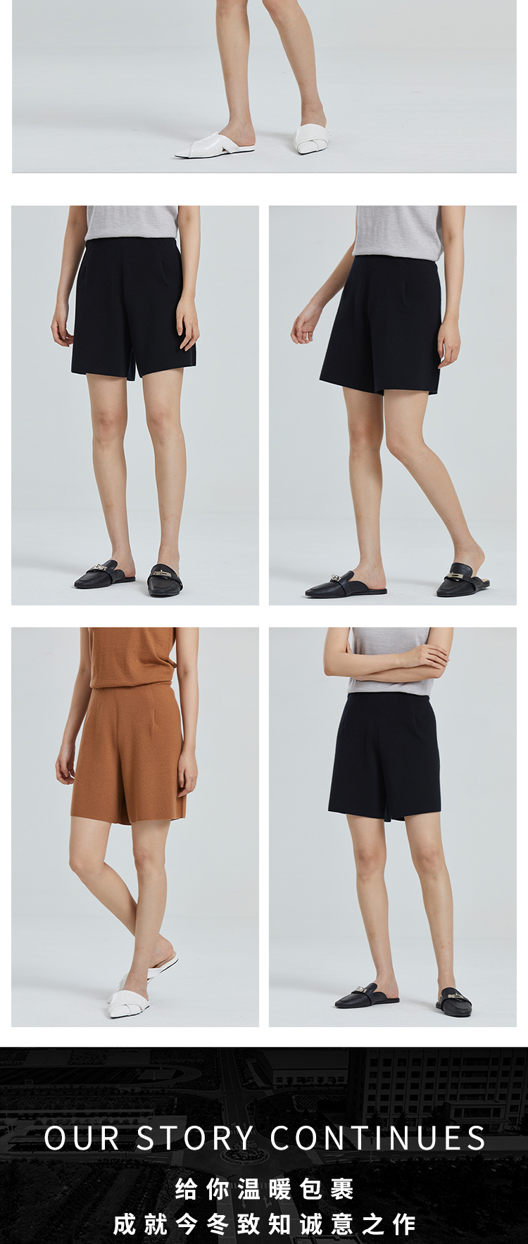 东黎 • 山羊绒 女士春秋季精纺时尚百搭宽松休闲羊绒短裤 4203