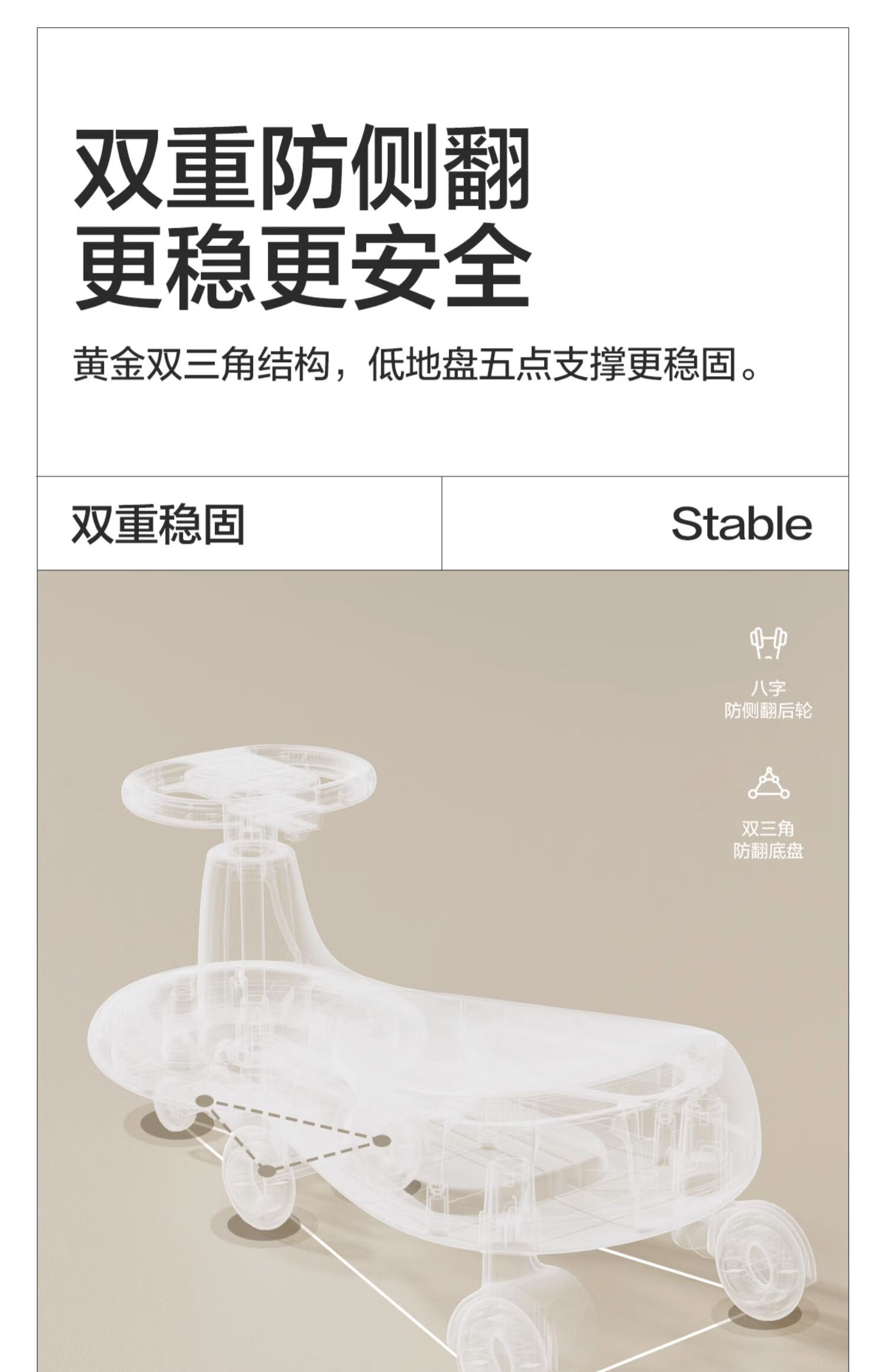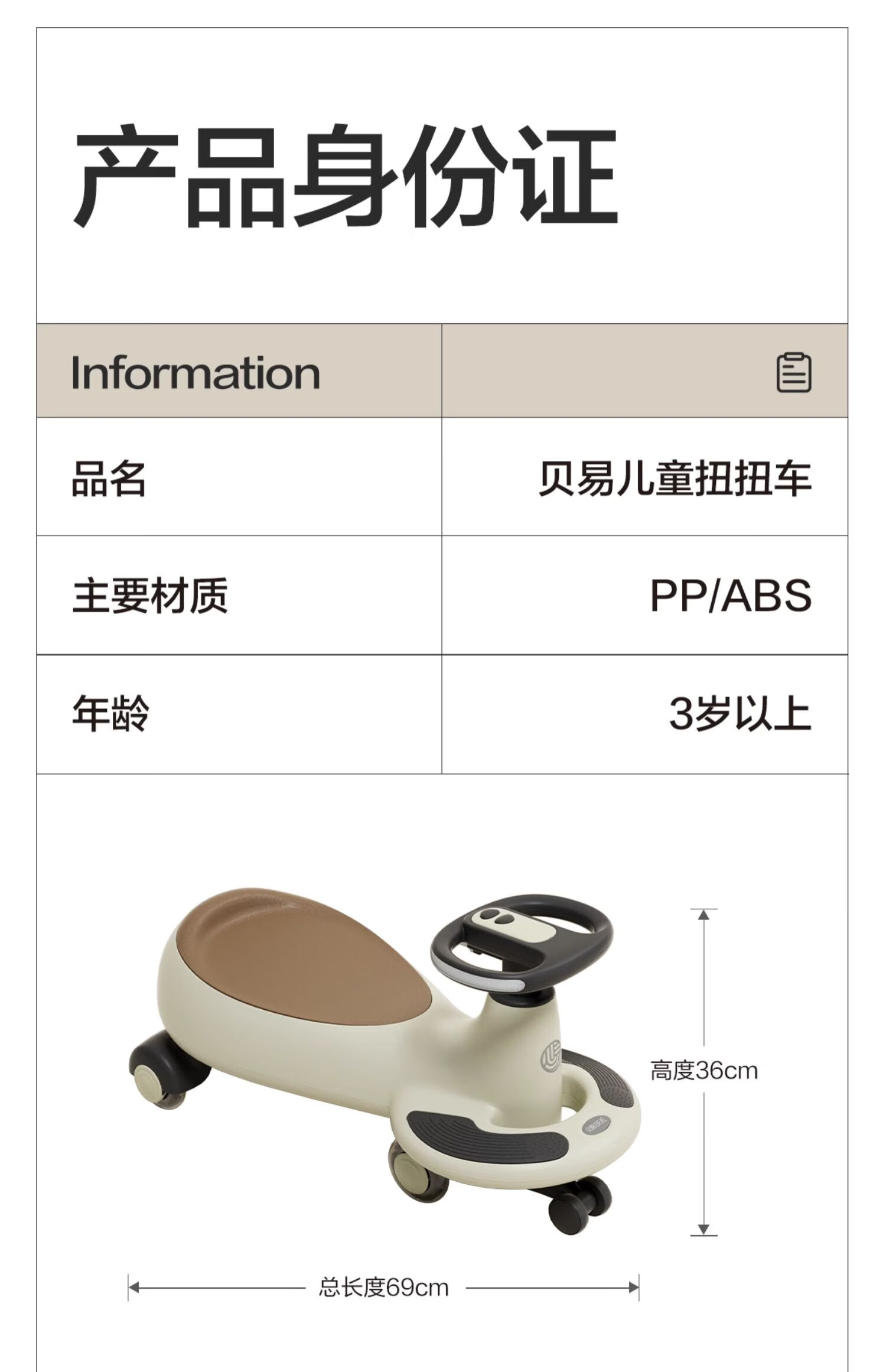 贝易(BeiE)扭扭车儿童溜男女宝宝玩具1-3岁万向轮防侧翻妞妞车(齐)