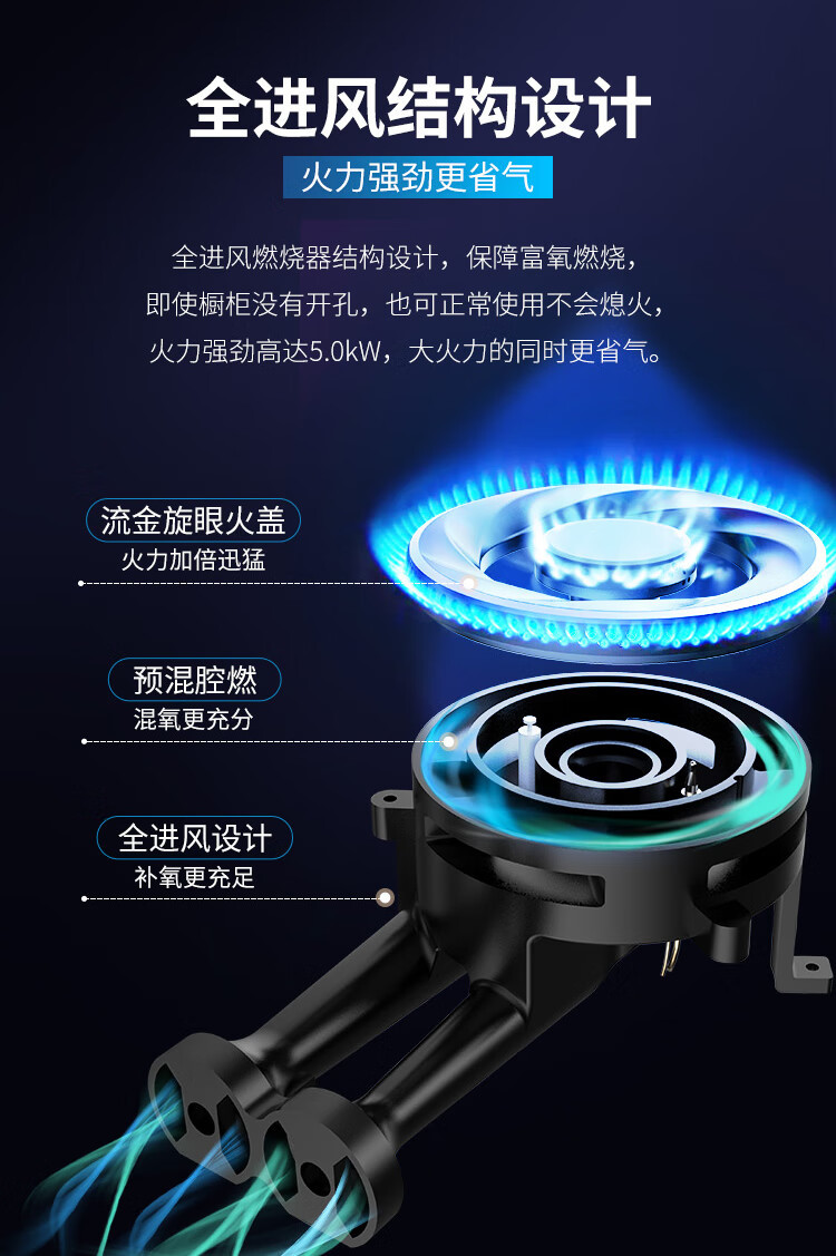 万家乐家用嵌入式双眼燃气灶 JZT/Y-V2(B) 玻璃面板 全进风5.0kW大火力