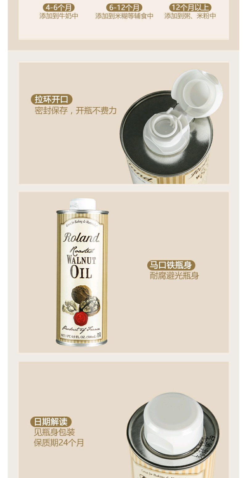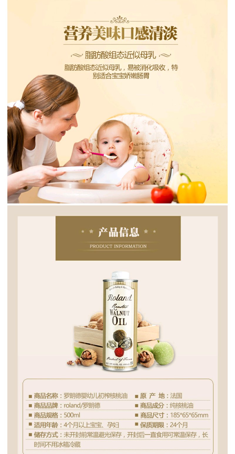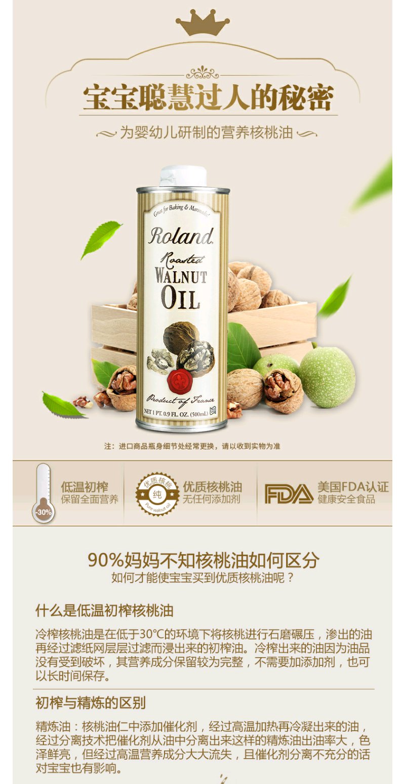 法国原装进口Roland罗朗德初榨核桃油婴幼儿DHA营养食用油500ml