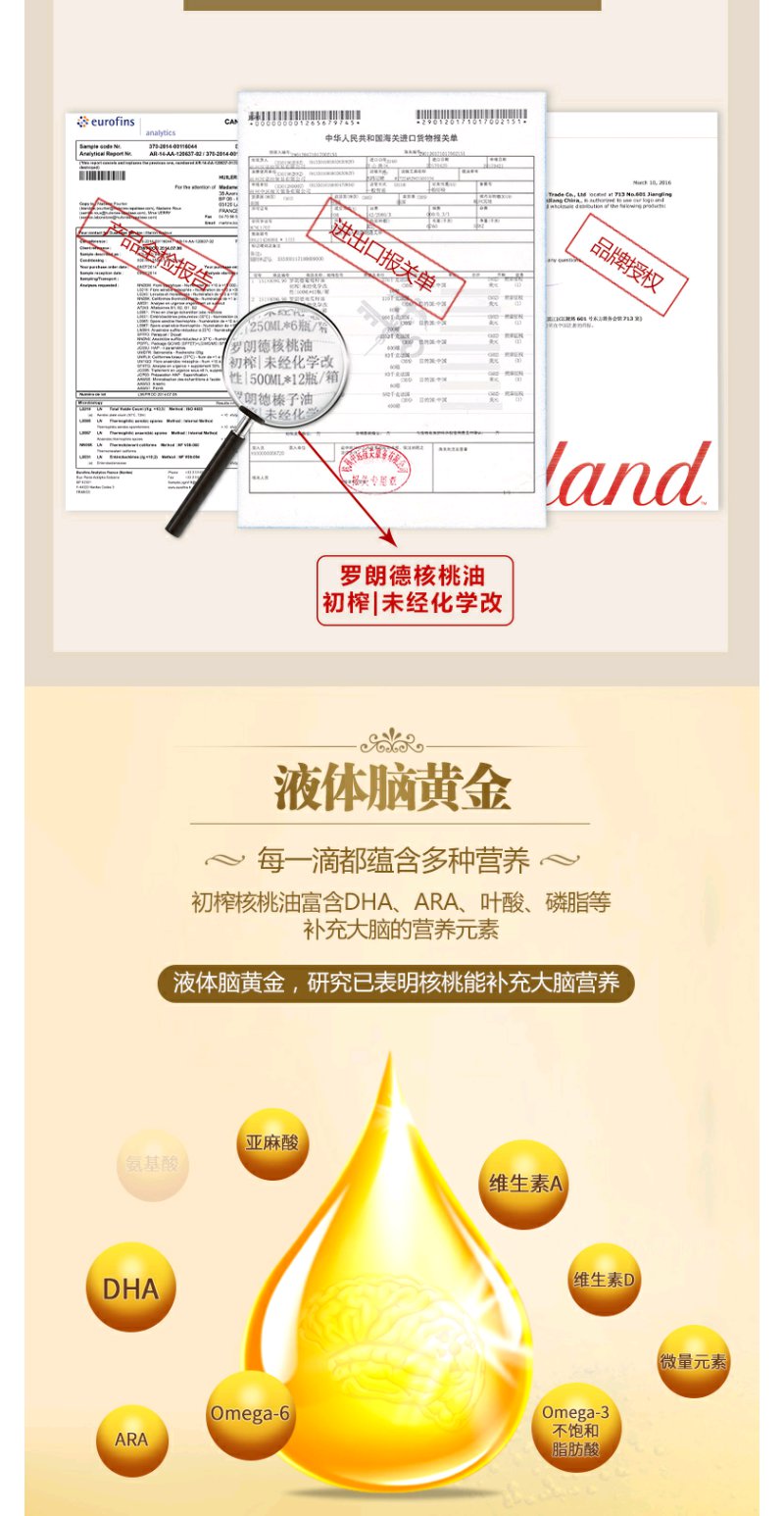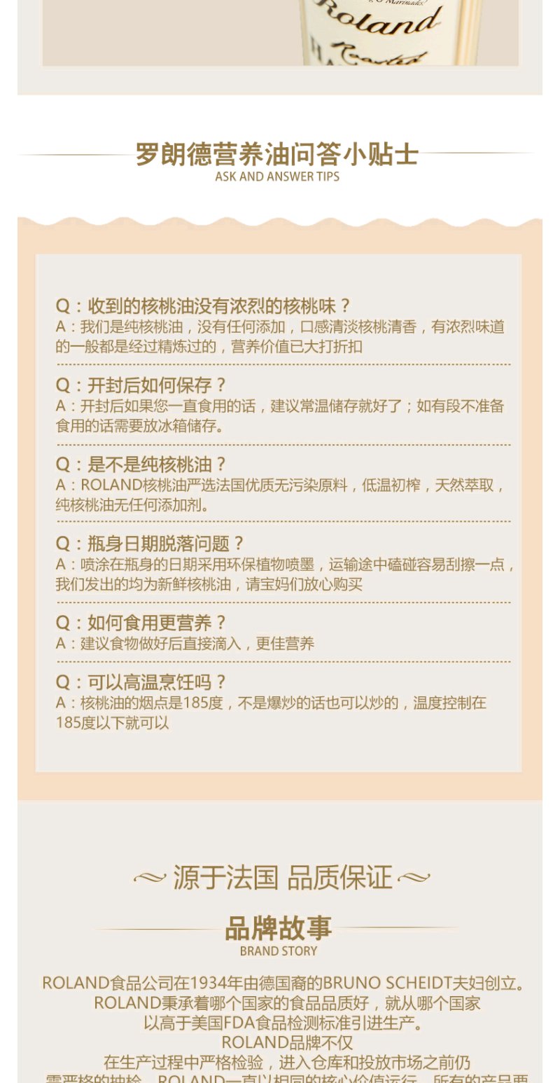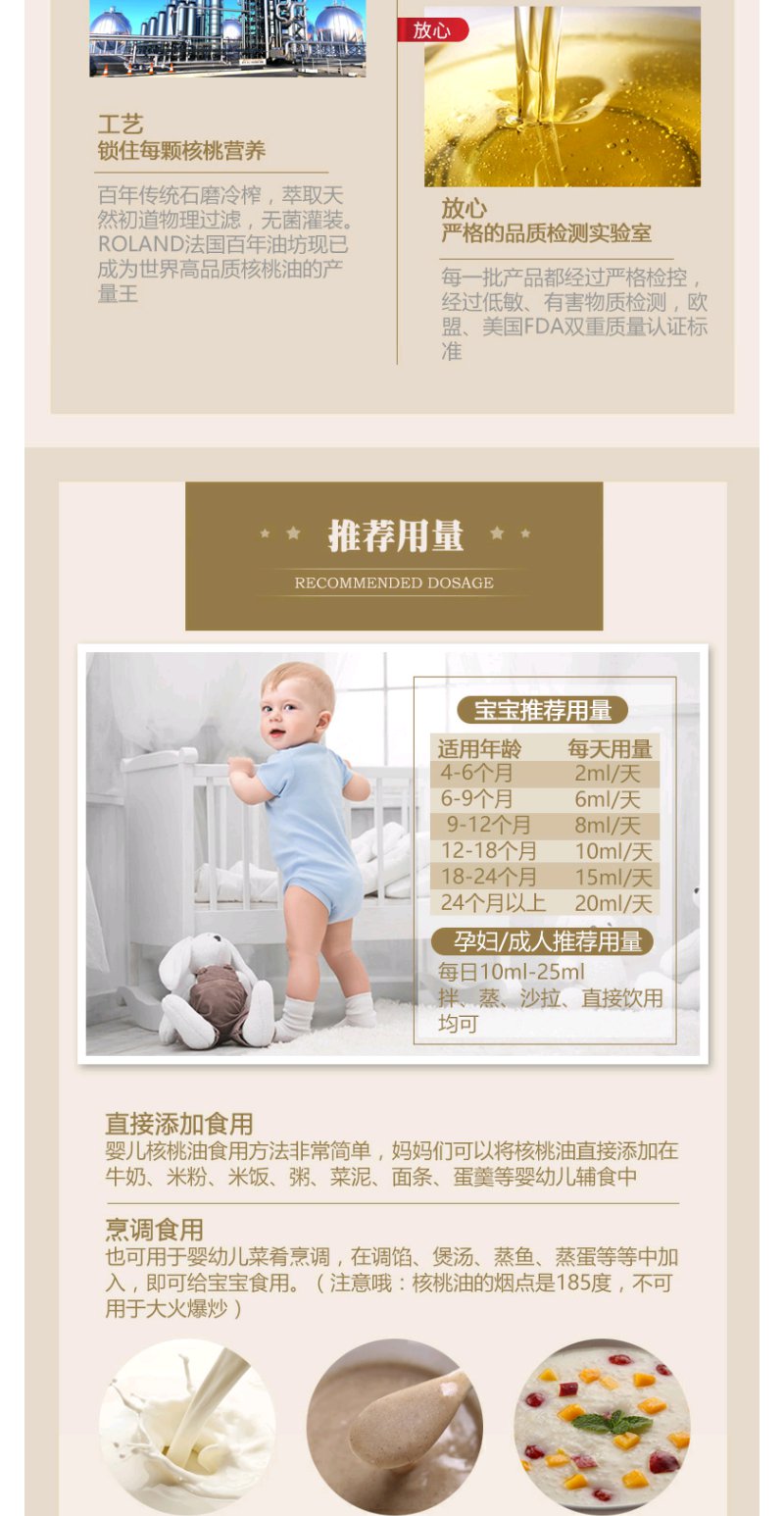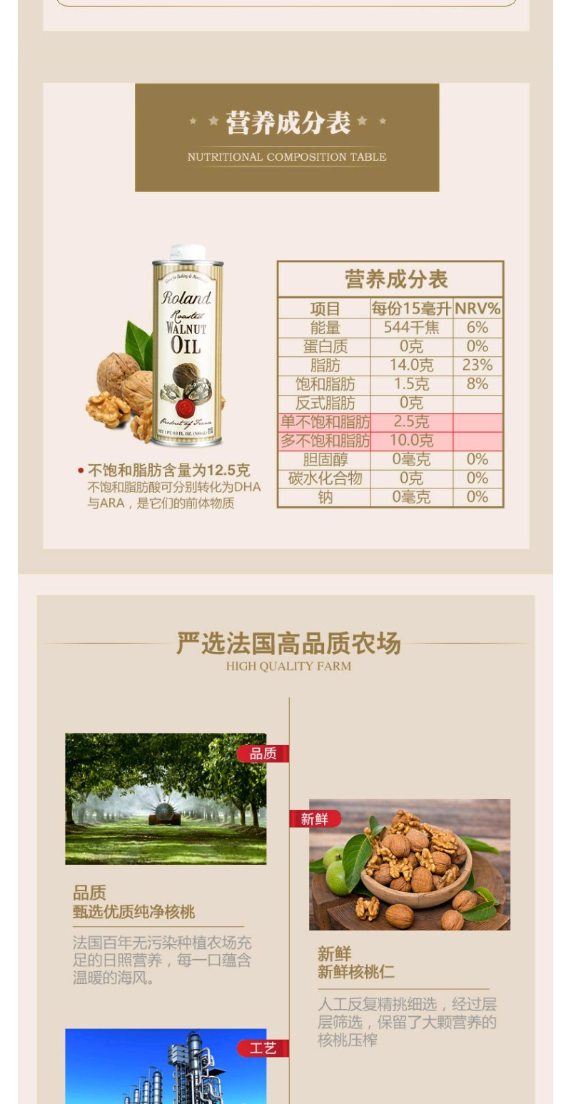 法国原装进口Roland罗朗德初榨核桃油婴幼儿DHA营养食用油500ml