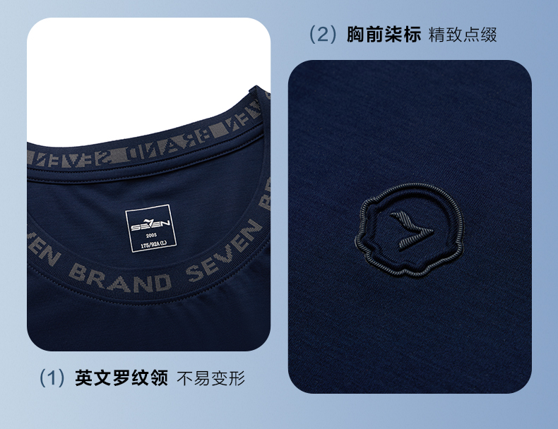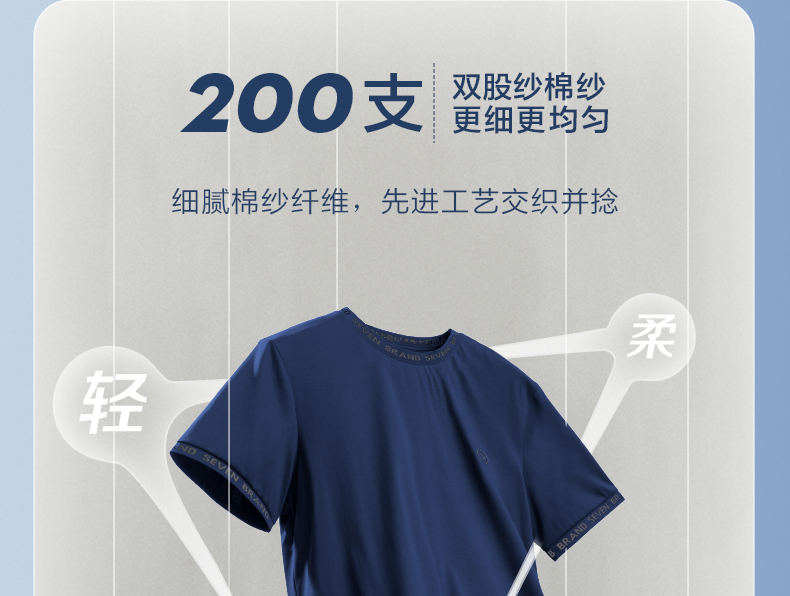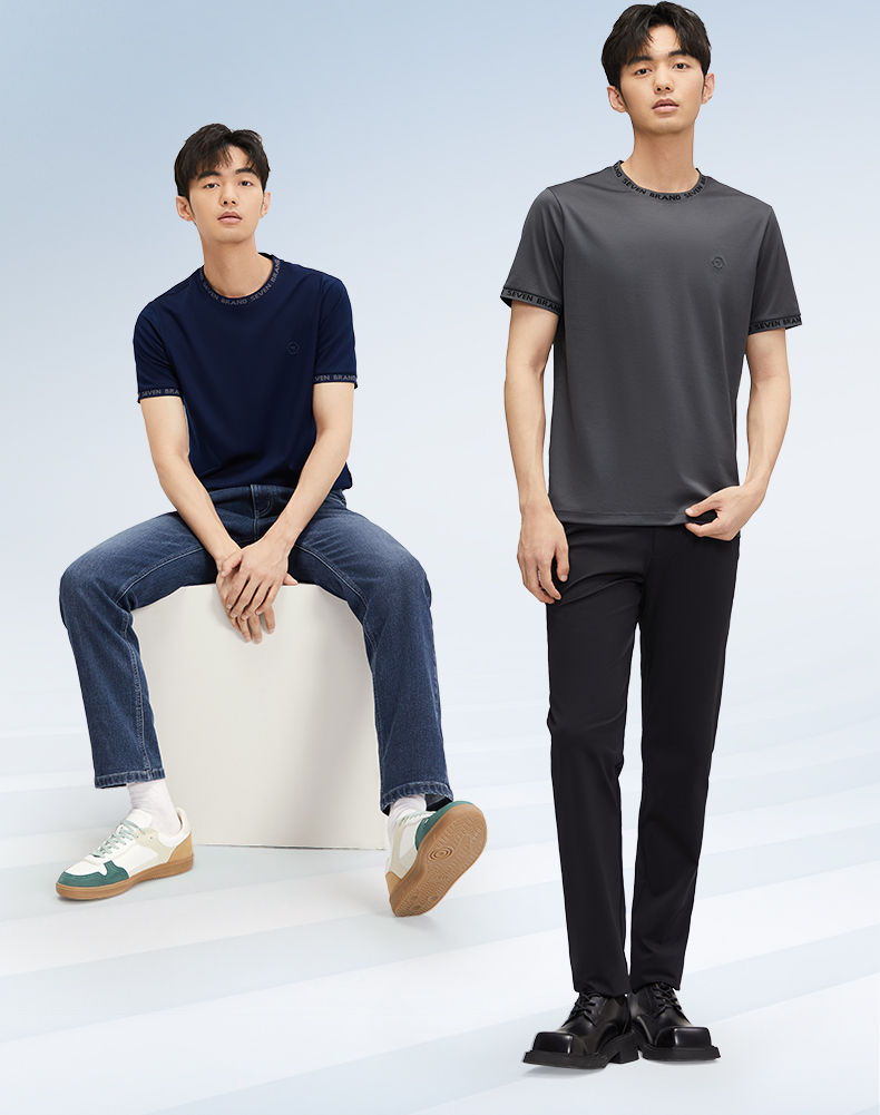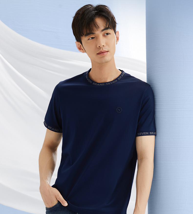 【持久如新】柒牌200支短袖T恤男士夏季新款时尚字母提花圆领上衣 126T73570