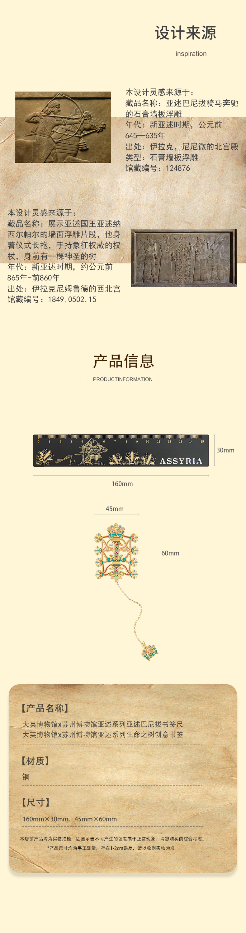大英博物馆x苏州博物馆亚述系列亚述巴尼拔书签尺 生命之树创意书签