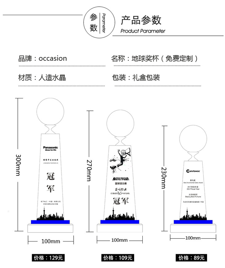 创意水晶奖杯定制优秀员工荣誉高档奖杯定做冠军奖杯公司颁奖刻字
