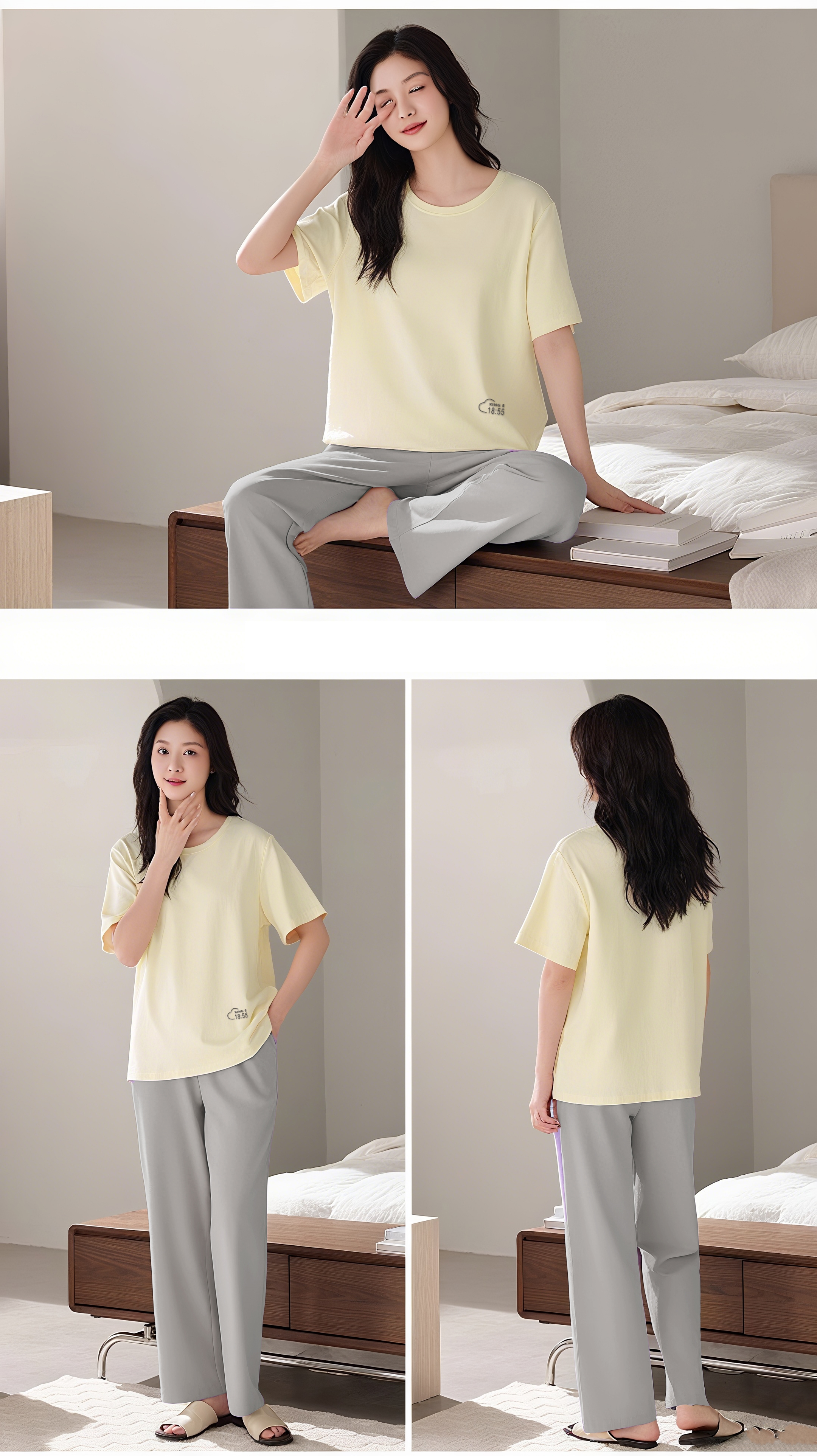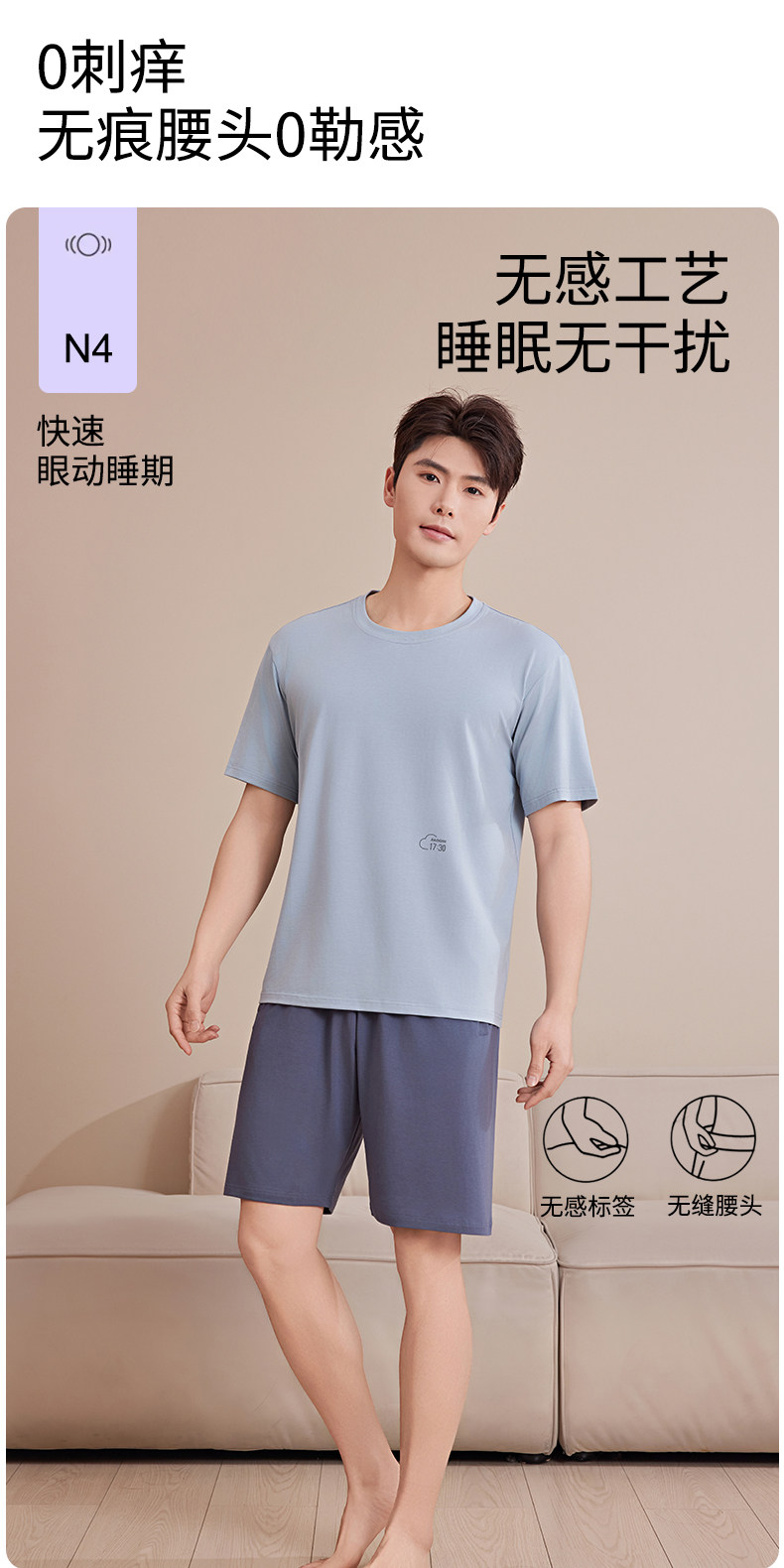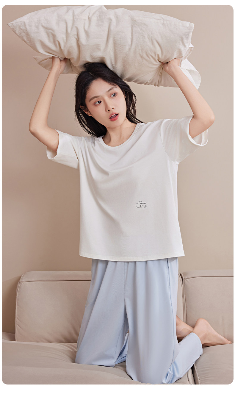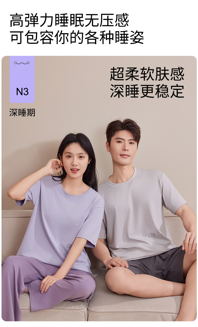 极简主义 凉感透气【梦惠妮 莫代尔情侣家居服套装】莫代尔+棉+氨纶 黄金比例 柔软触感 舒适满满 无痕裁剪 吸湿透气不闷汗 呵护睡眠 #M663