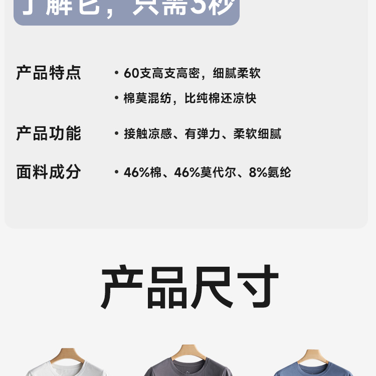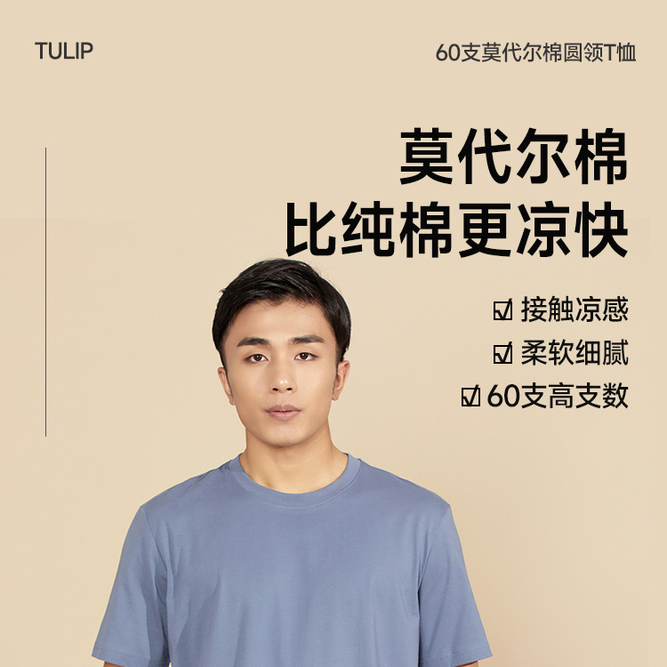 【直降35】男士60支双面莫代尔棉圆领T恤