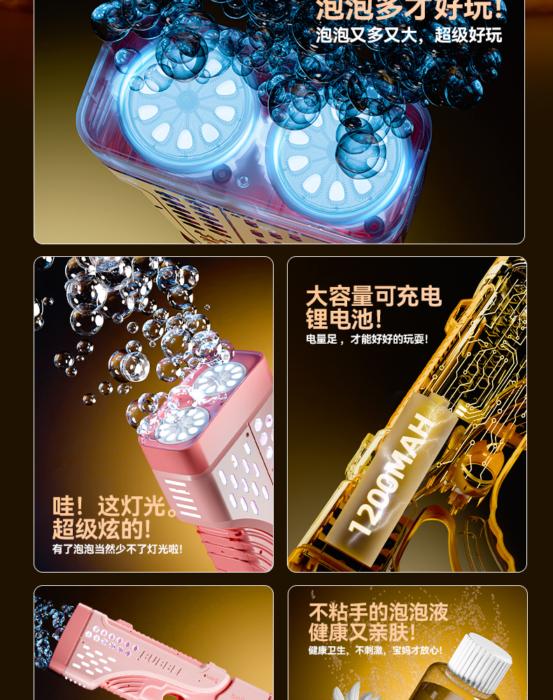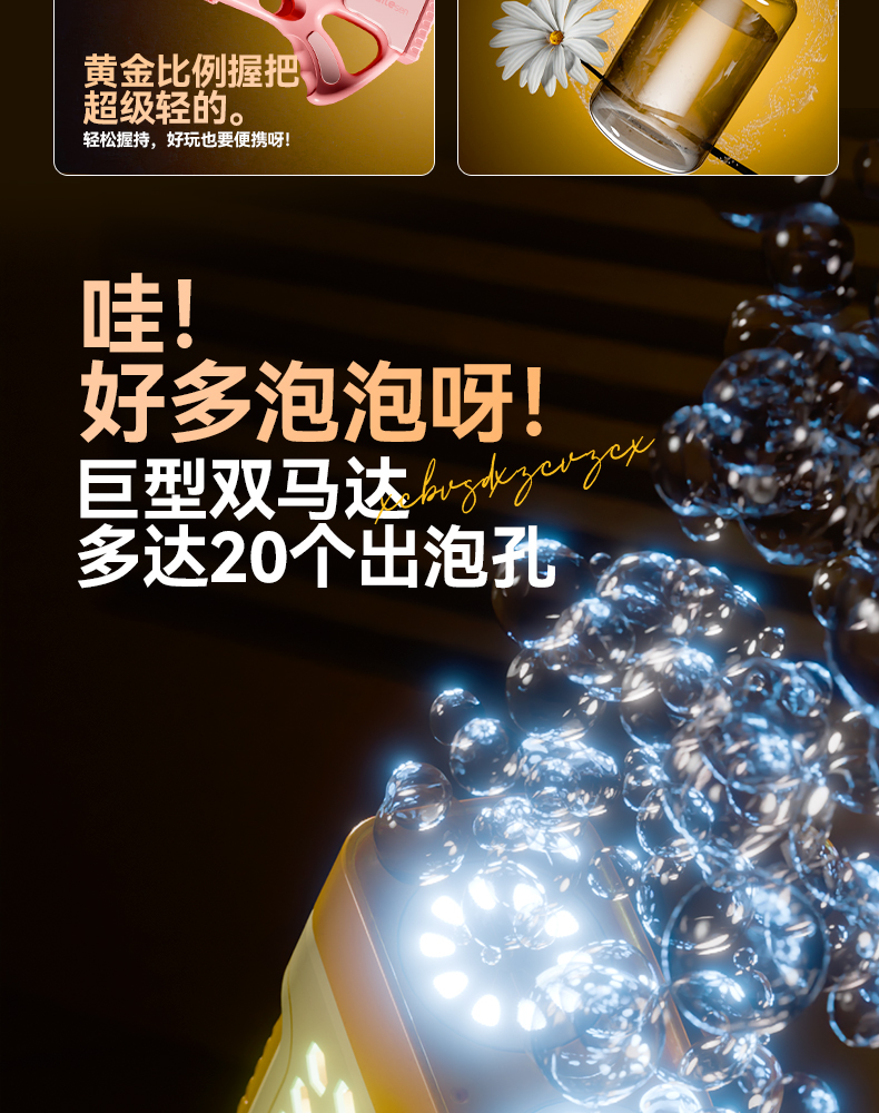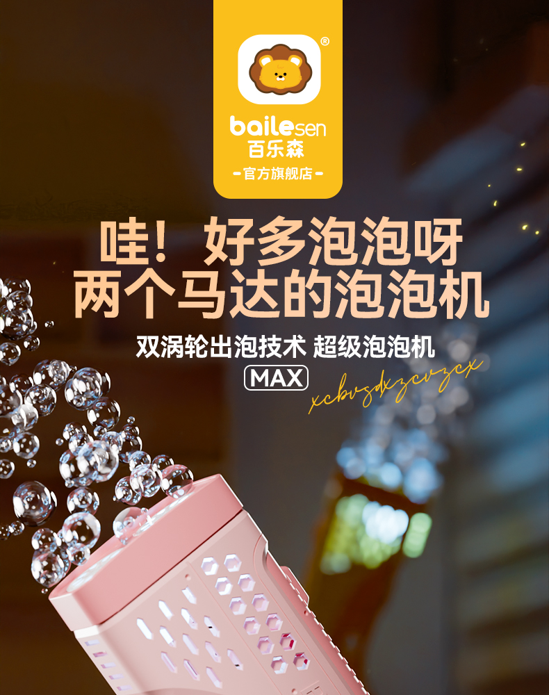 【赠10包泡泡液】百乐森双缸大号新款泡泡机20孔炫酷出泡 2色可选 赠充电线 满电可玩90分钟!