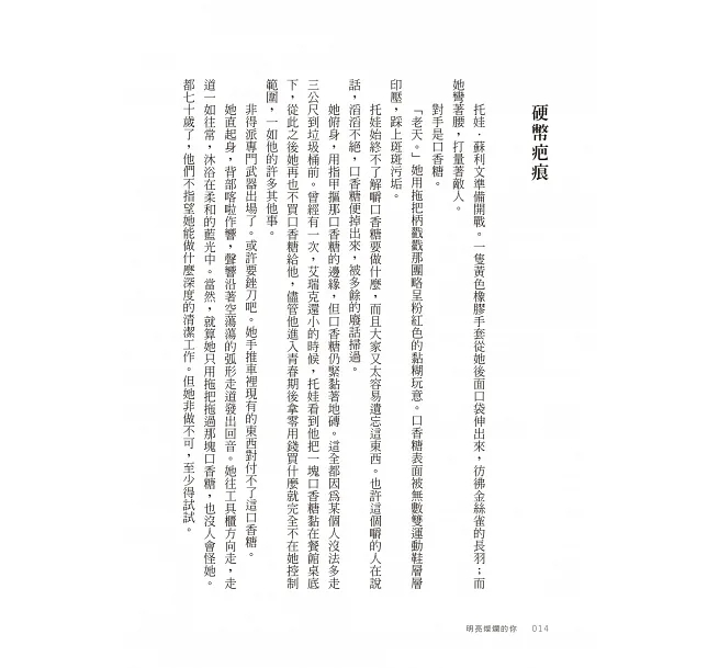 《明亮燦爛的你》是她的第一本長篇小說,甫出版就占據紐約時報暢銷榜一連二十八週,出版超過一年仍是亞馬遜書店排行榜常客,並成為二十多家媒體的年度選書,迄今全球銷量已破百萬冊。