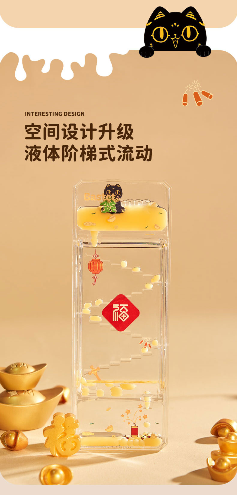 大英博物馆 盖亚·巴斯特系列 发财喵流油沙漏摆件