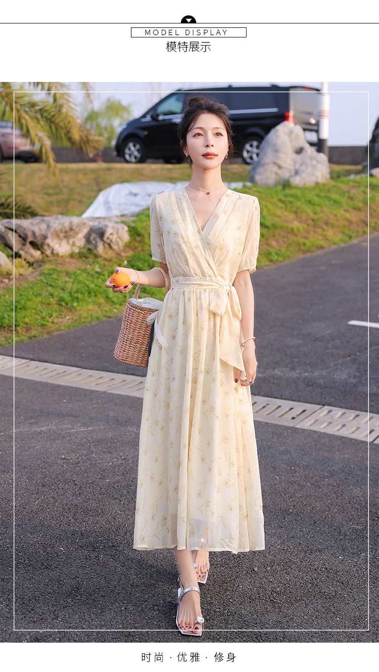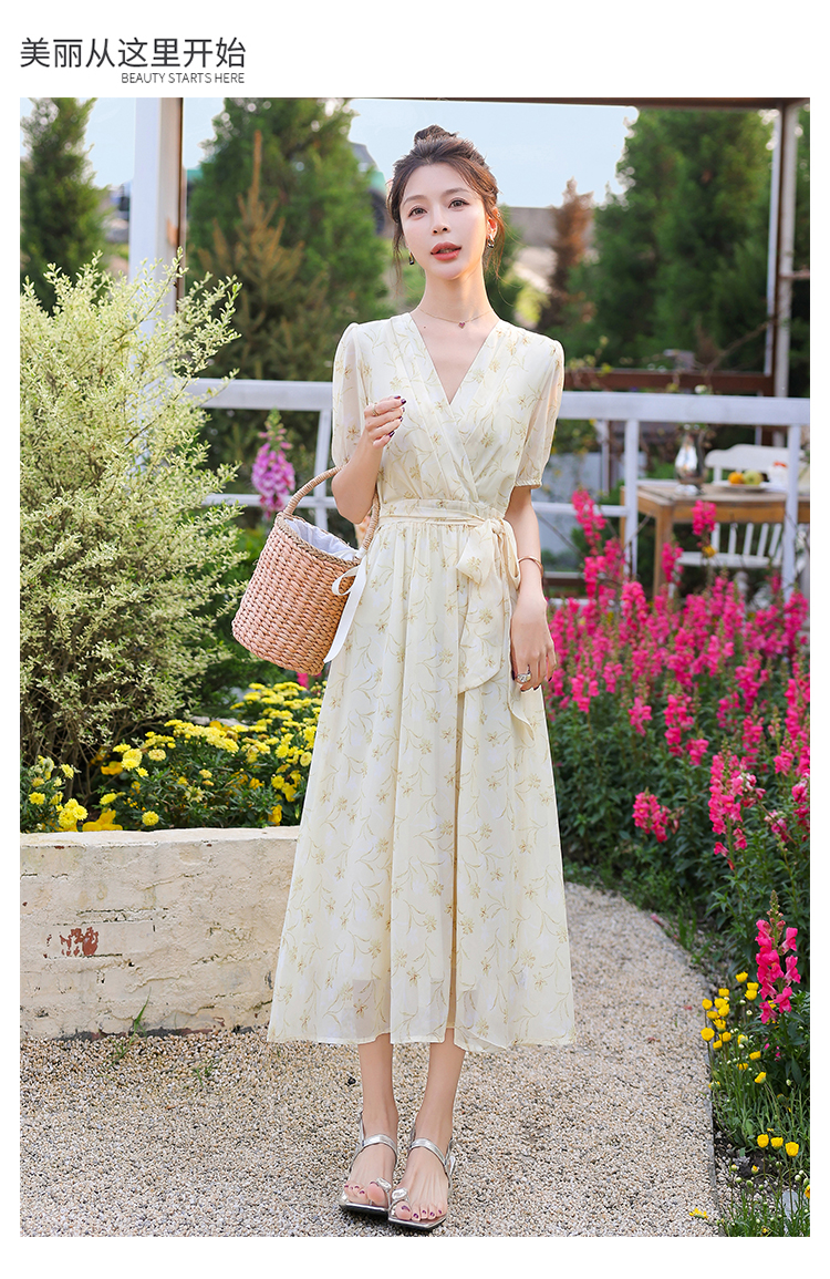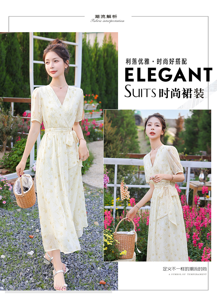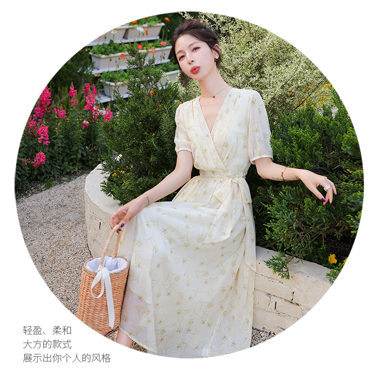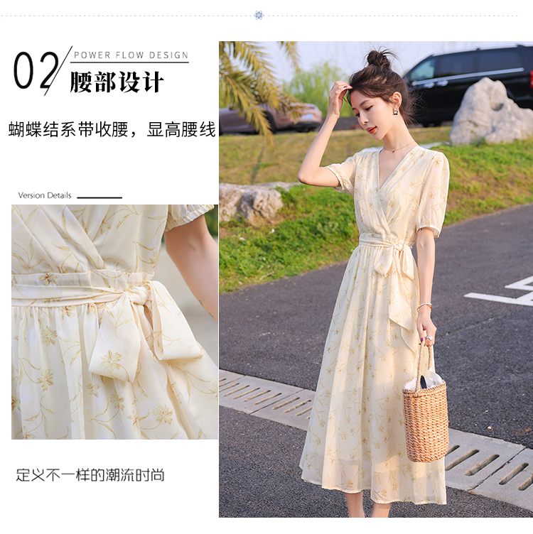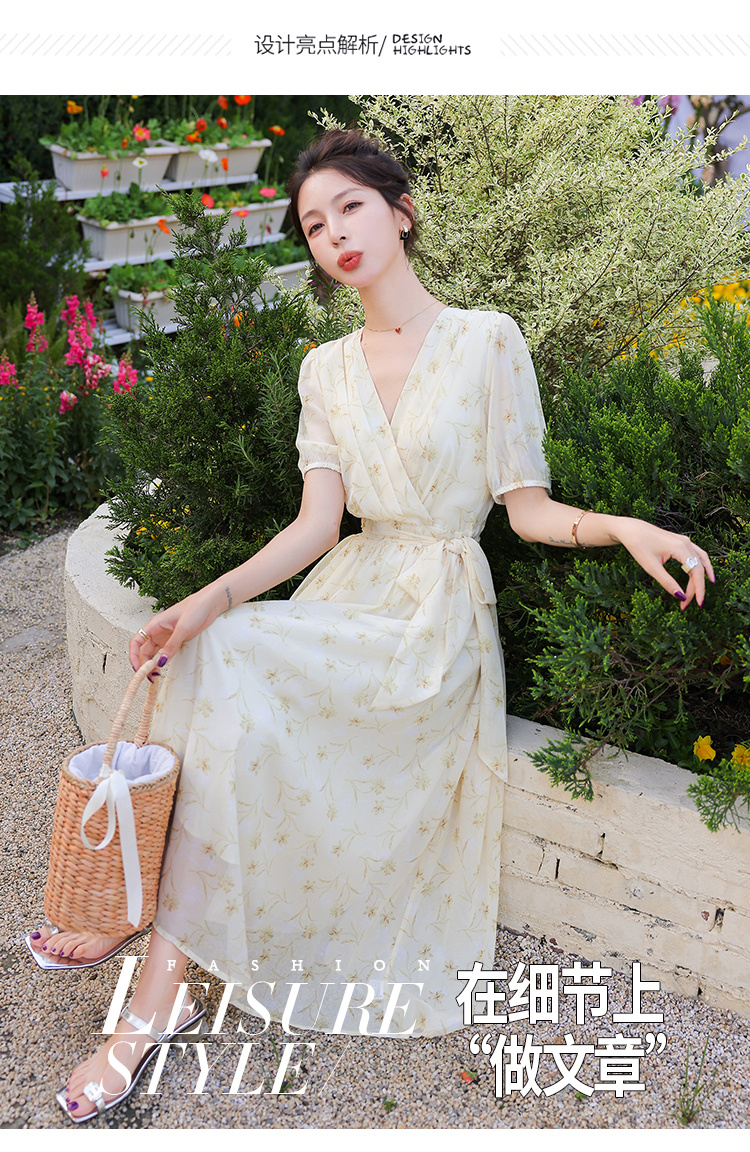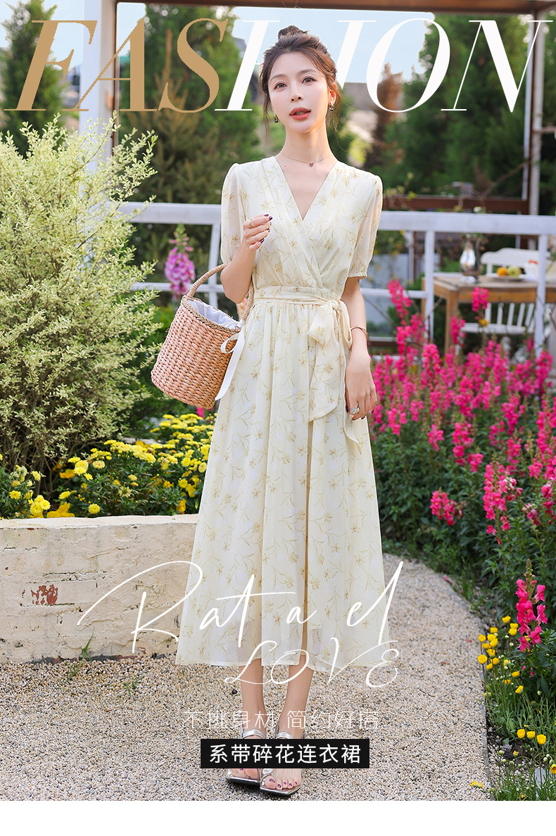 夏新款气质感茶歇法式v领碎花连衣裙收腰显瘦长裙HR-MYL2318