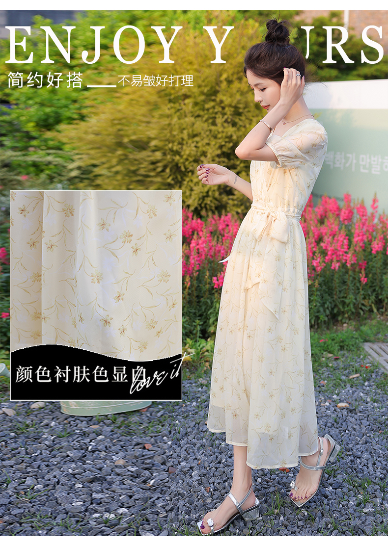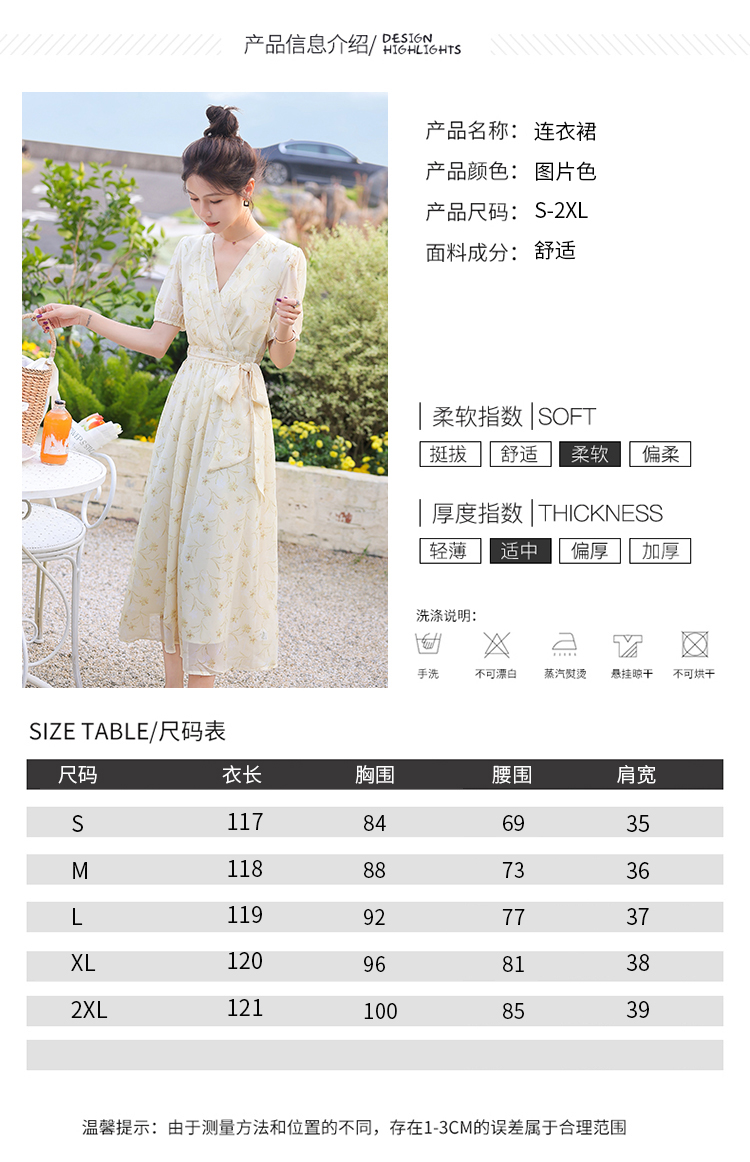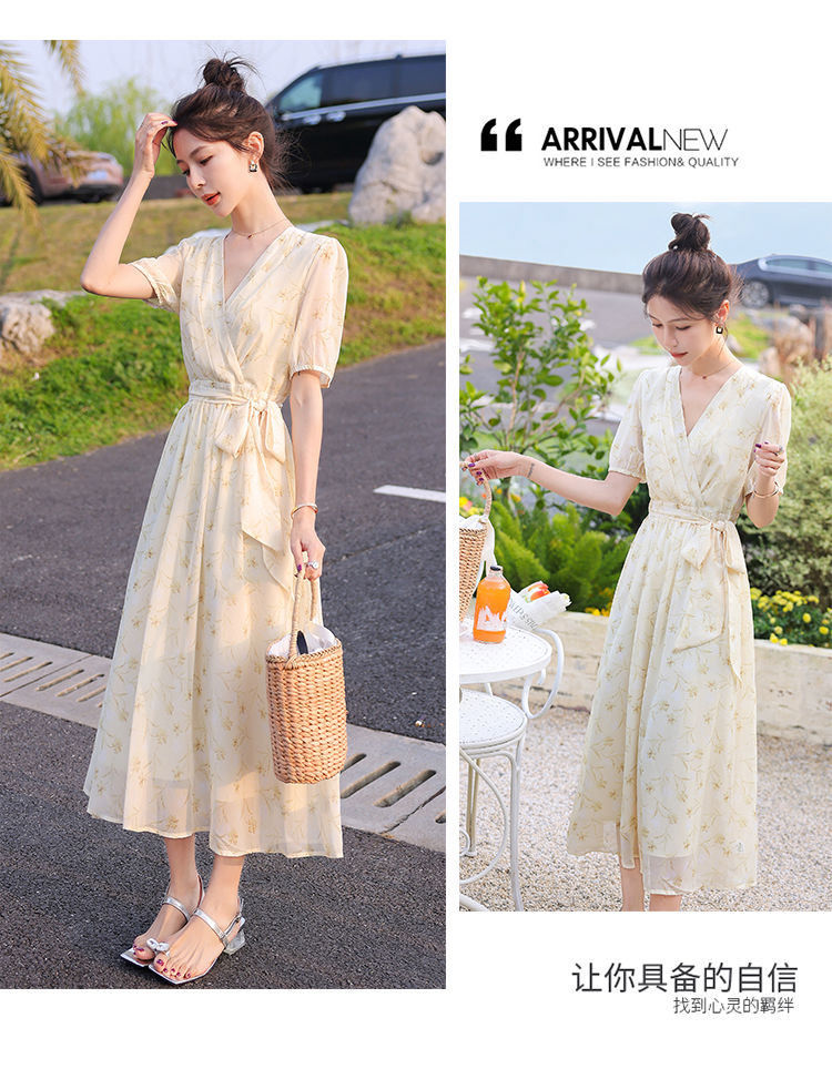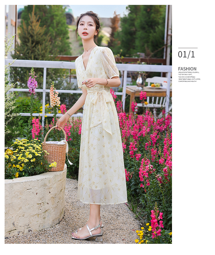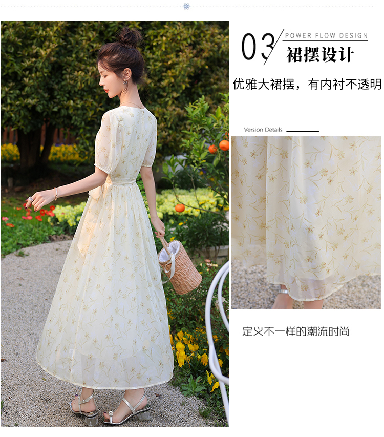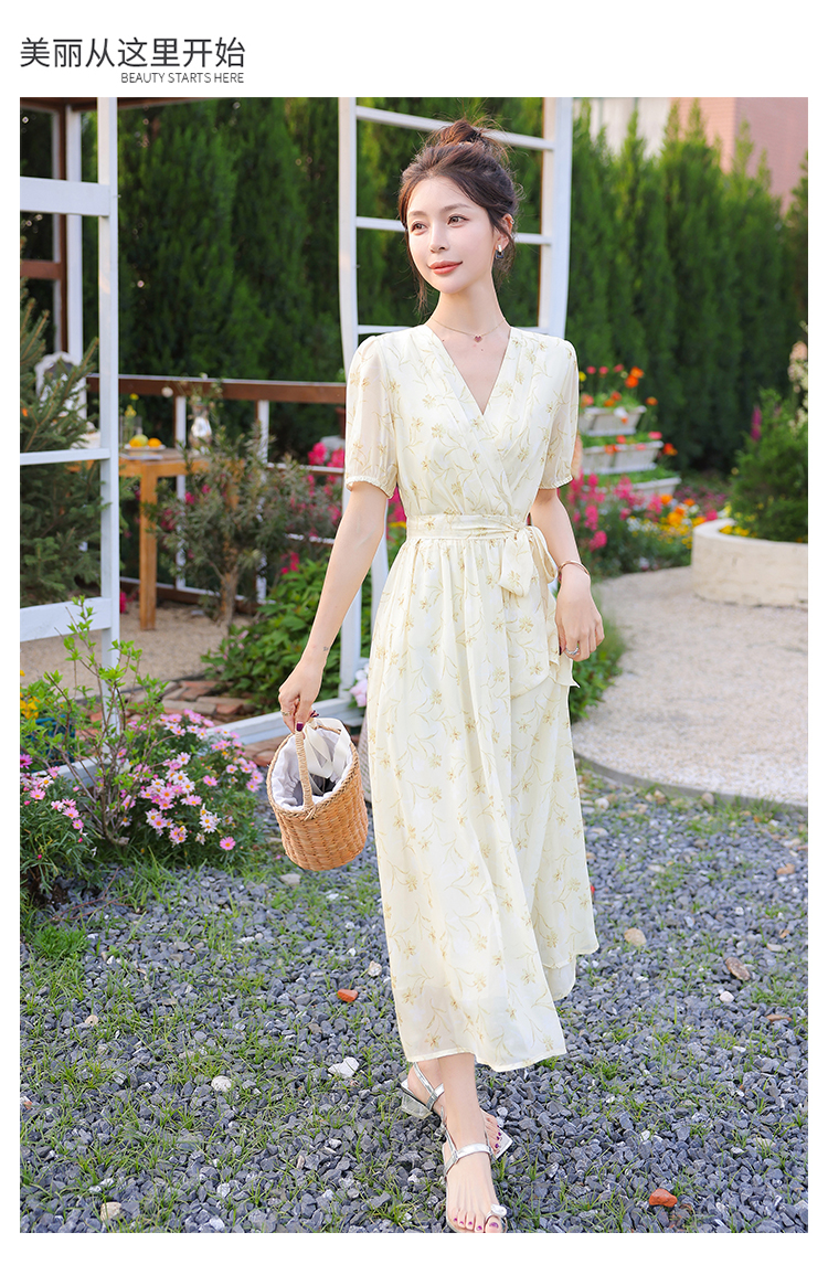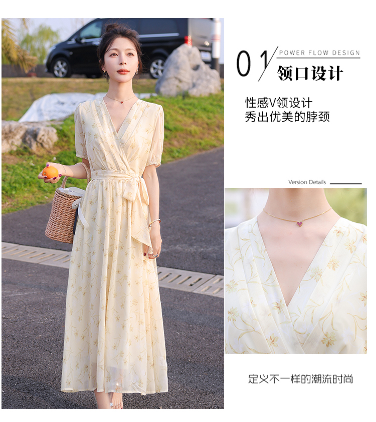 夏新款气质感茶歇法式v领碎花连衣裙收腰显瘦长裙HR-MYL2318