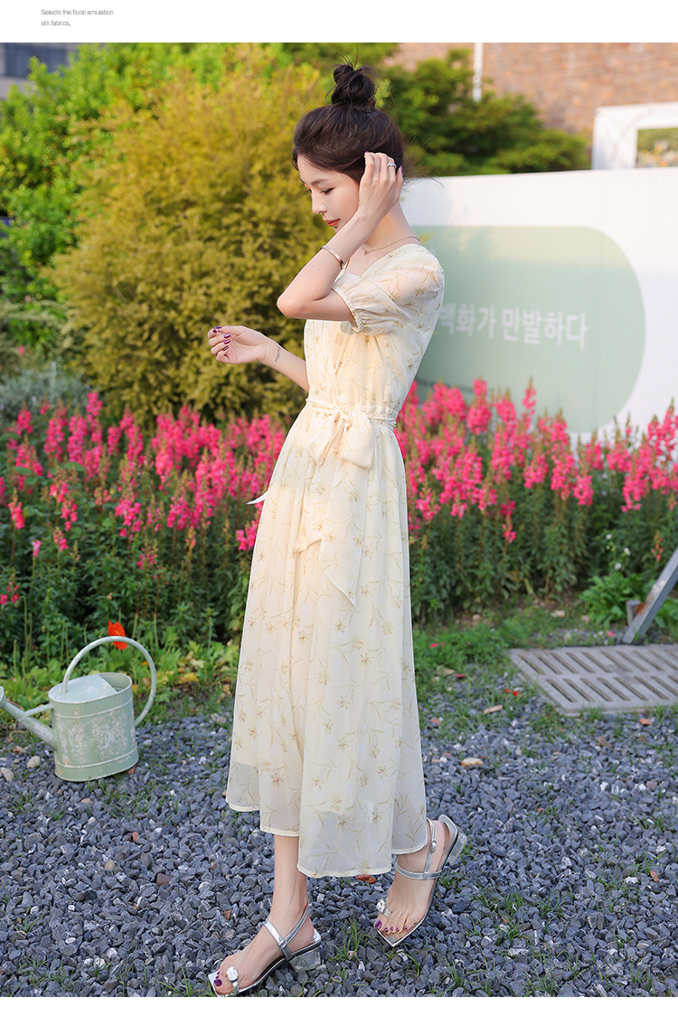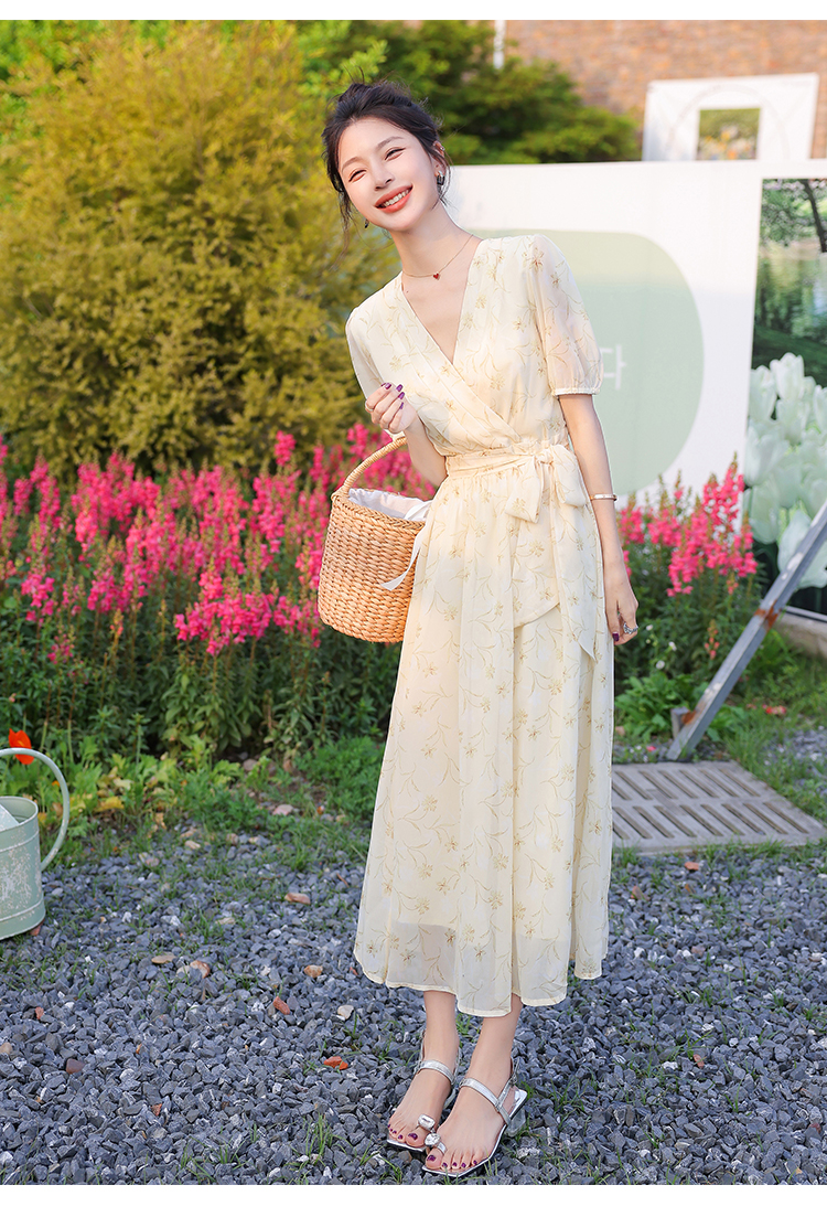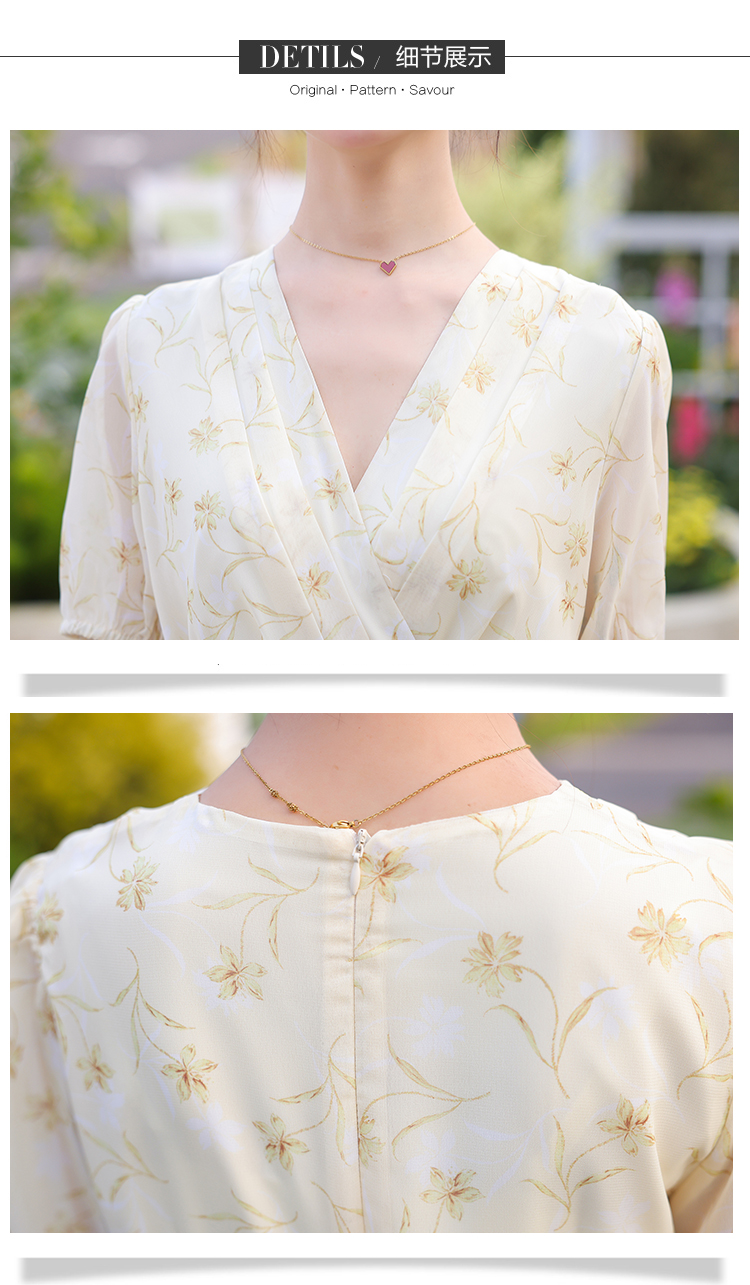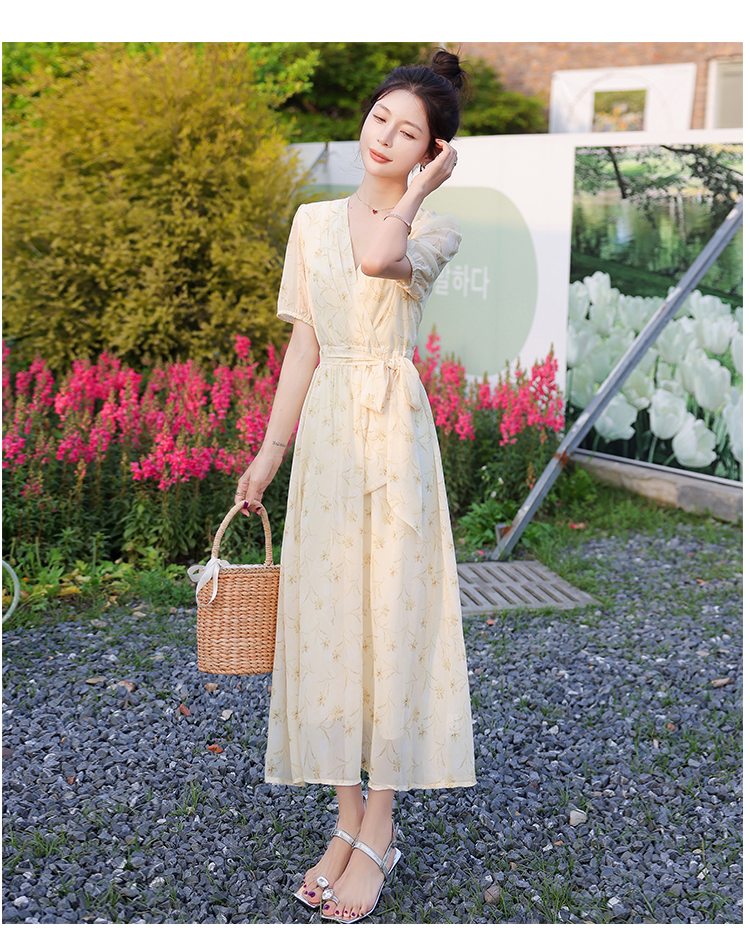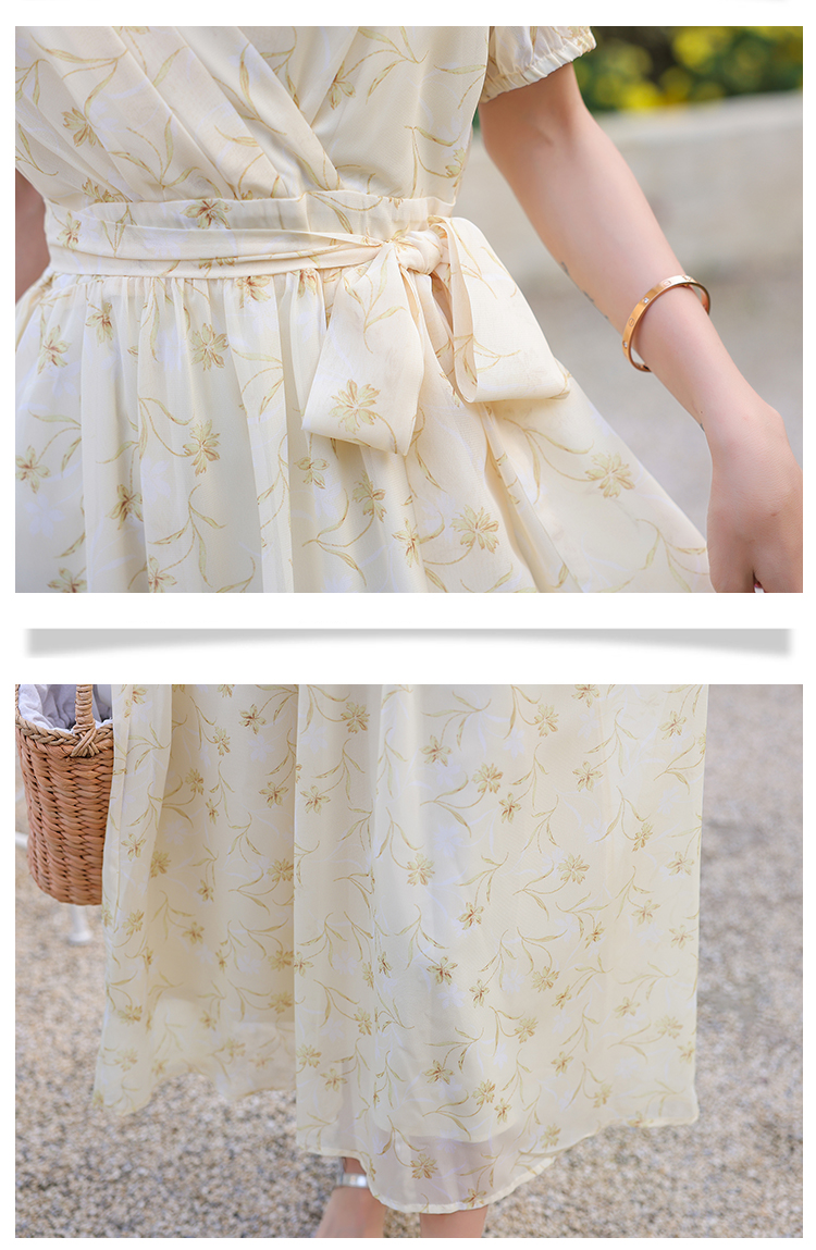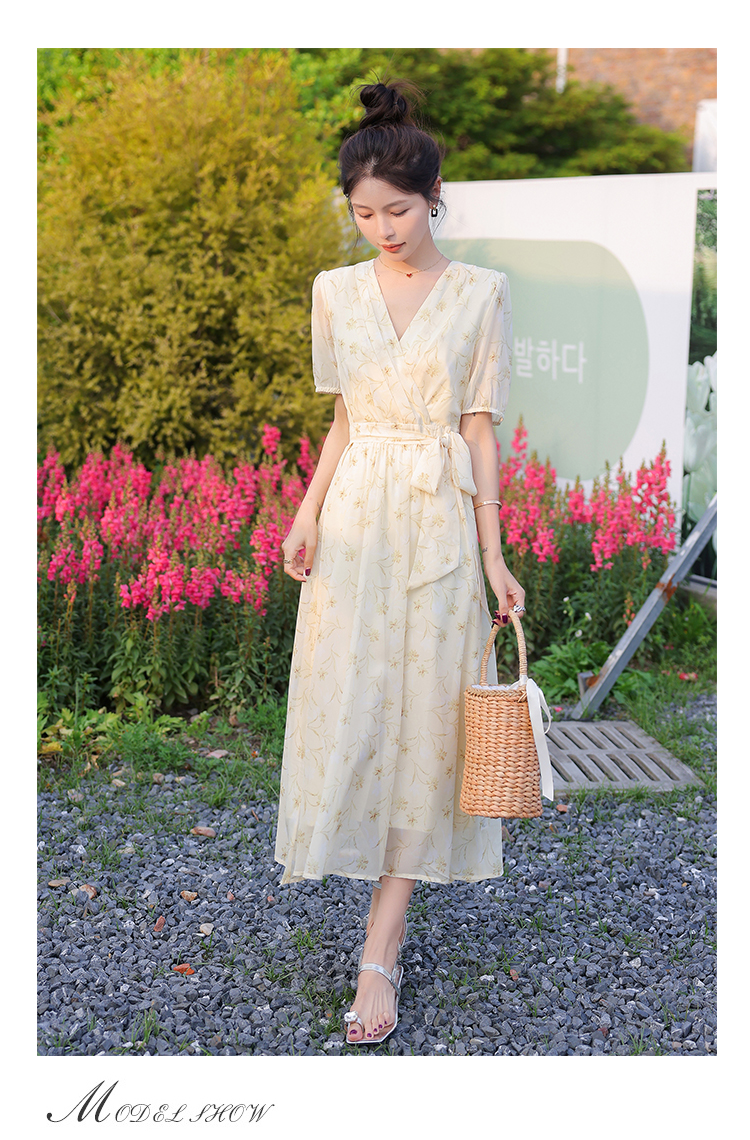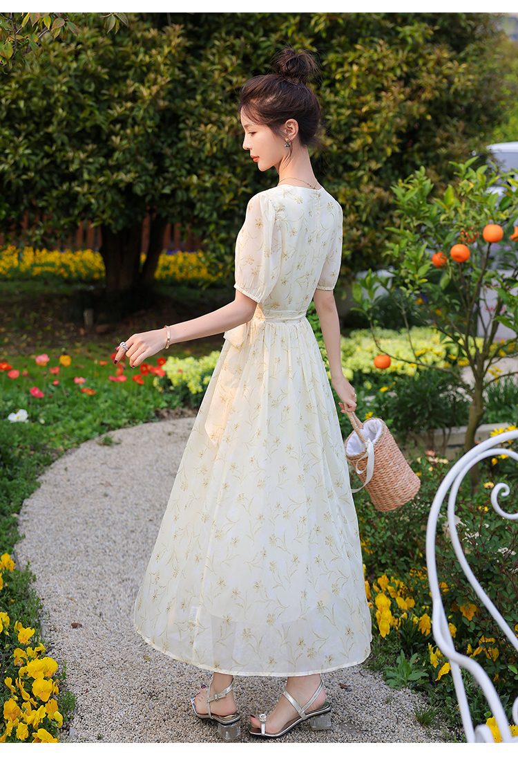 夏新款气质感茶歇法式v领碎花连衣裙收腰显瘦长裙HR-MYL2318