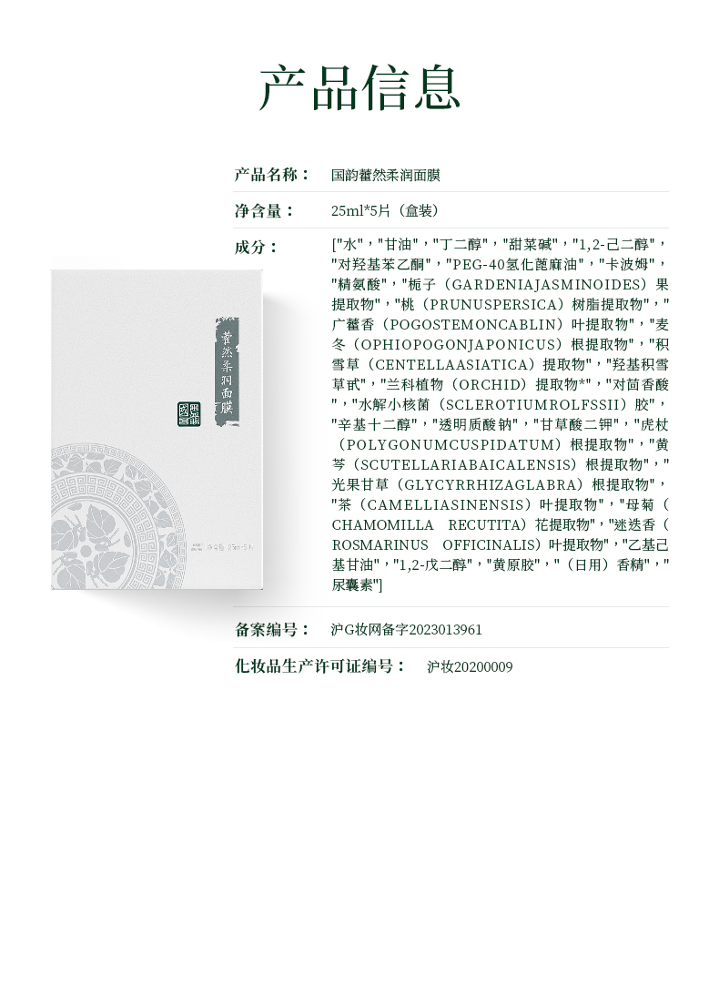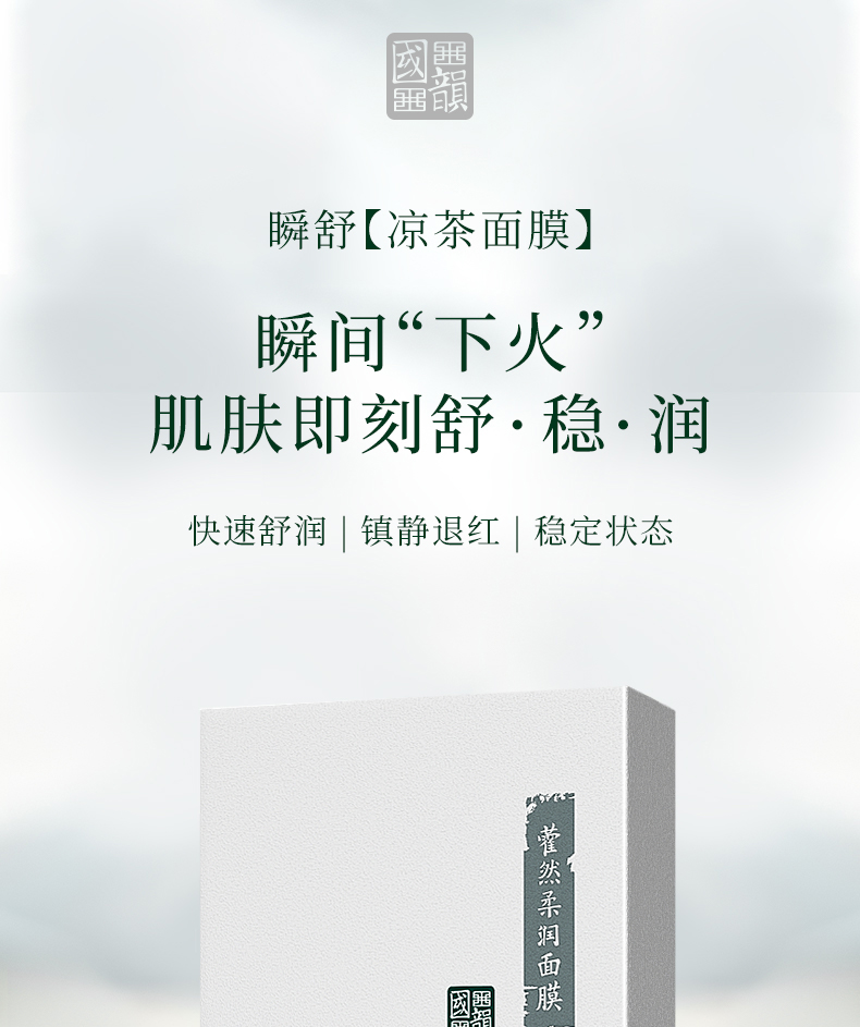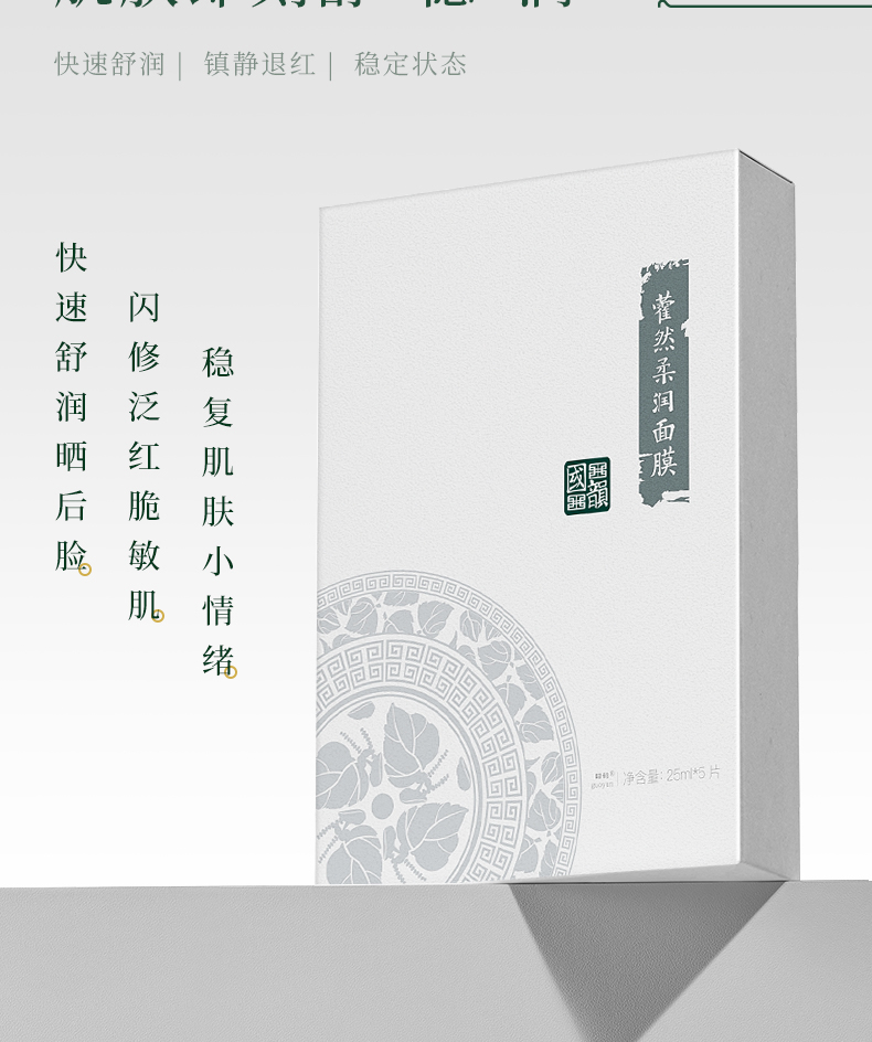 国韵藿然柔润面膜1盒(25ml*5片),镇静退红,快速舒润,买即赠斛春面膜体验*1