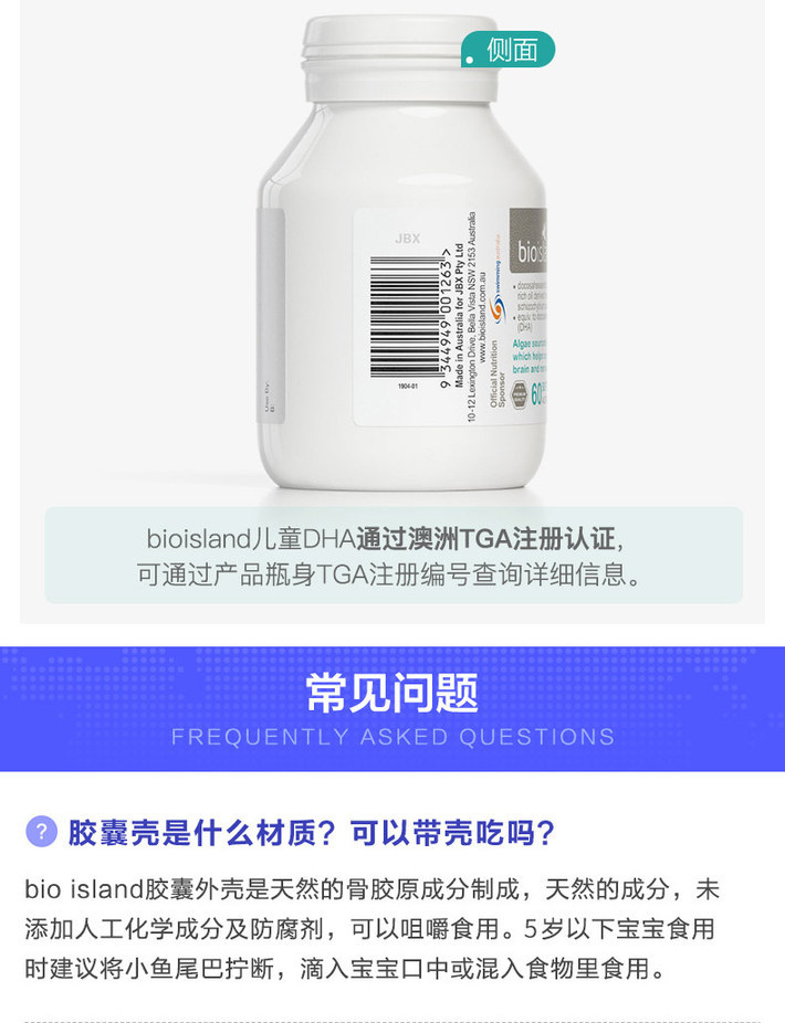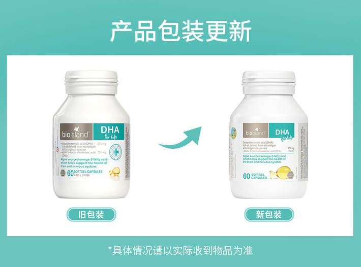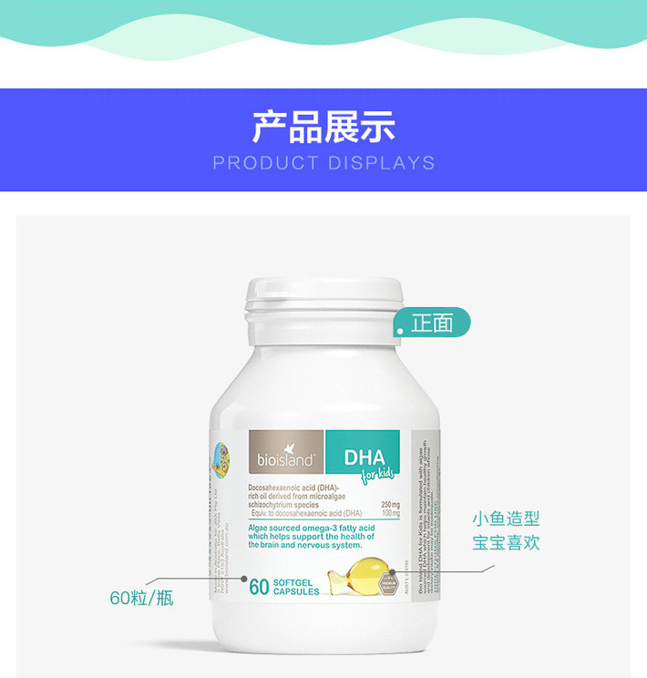 【跨境】bio island佰澳朗德婴儿海藻油儿童DHA软胶囊60粒